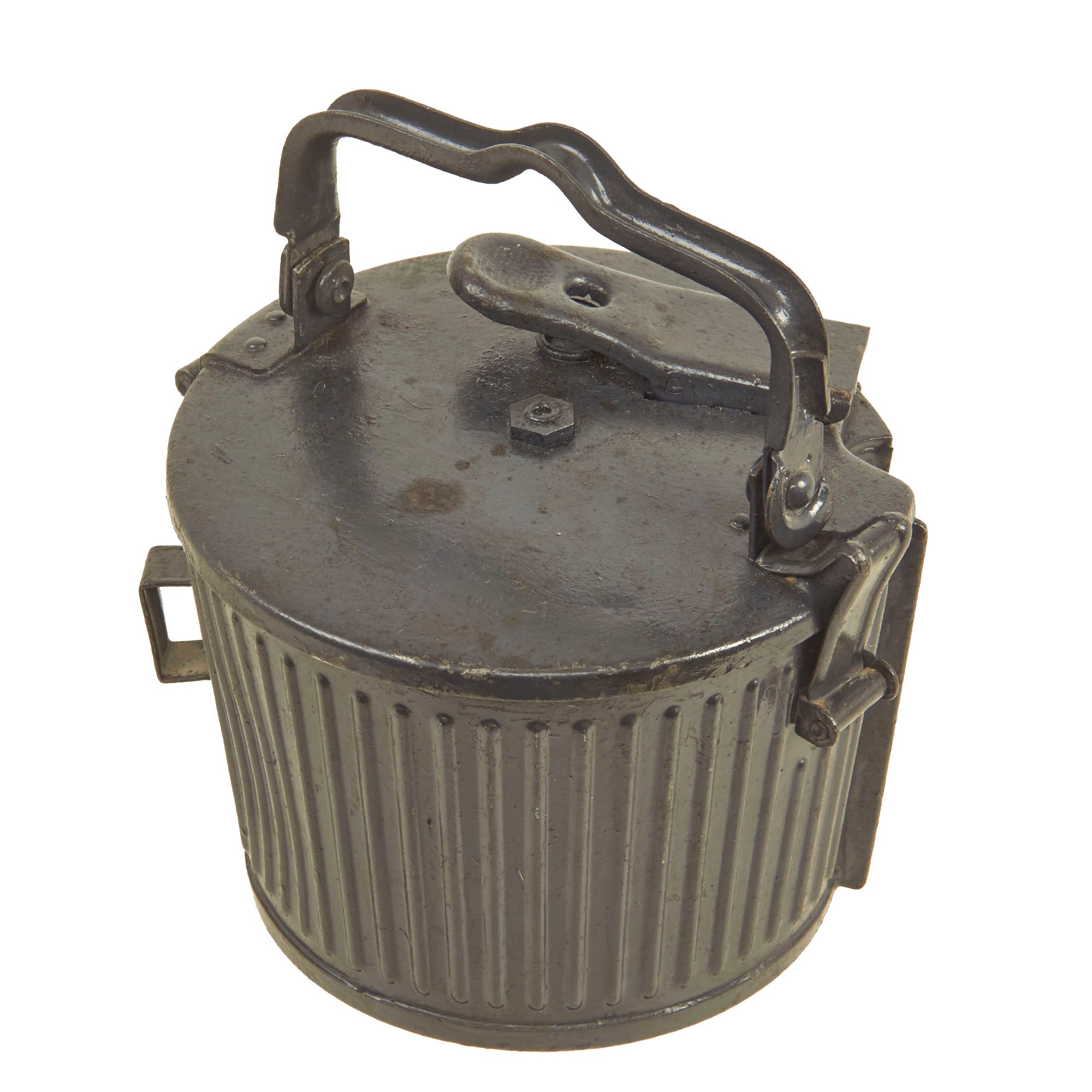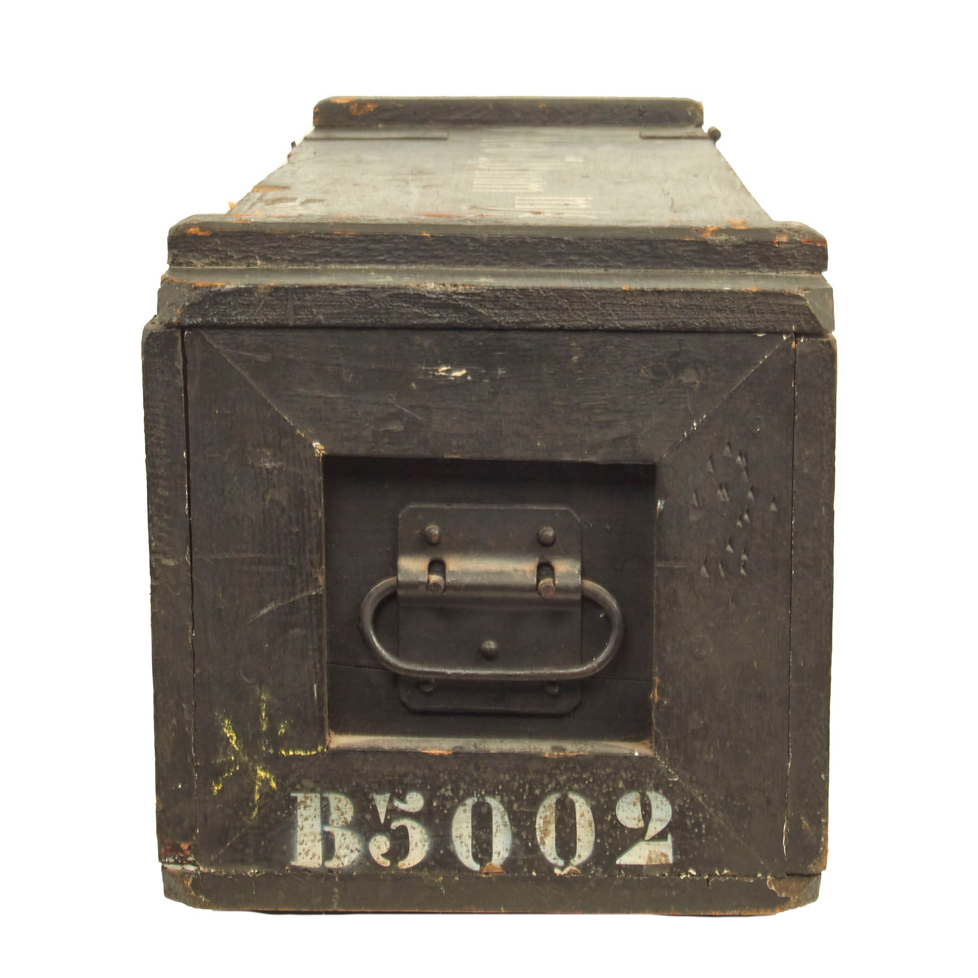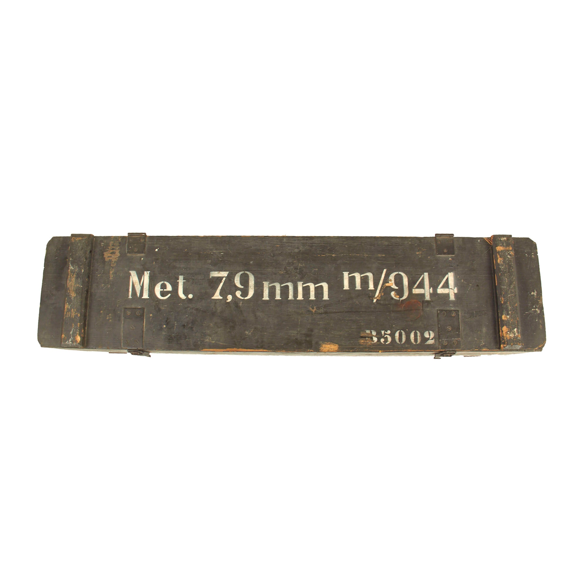 The display gun features a rare and desirable bakelite butt stock, and comes in its original fully marked transit chest, marked Met. 7.9mm m/944 B5002 on the front side. The chest measures approximately 48"L x 11 1/2" x 11 1/2", and still contains most of the original dividers, though many of the retaining slats are now missing. Inside the chest is a serial number matched MG 34 barrel carrier with the matching replacement barrel inside, as well as an original WWII production basket belt carrier in the correct wartime gray blue color. It is marked wc 41, for 1941 production at the Meuselwitz, Thuringia plant of HASAG-Eisen- & Metallwerke GmbH, previously known as Hugo Schneider AG, Abteilung Lampenfabrik. This is truly a great offering, and we do not expect to have another like this anytime in the year future!