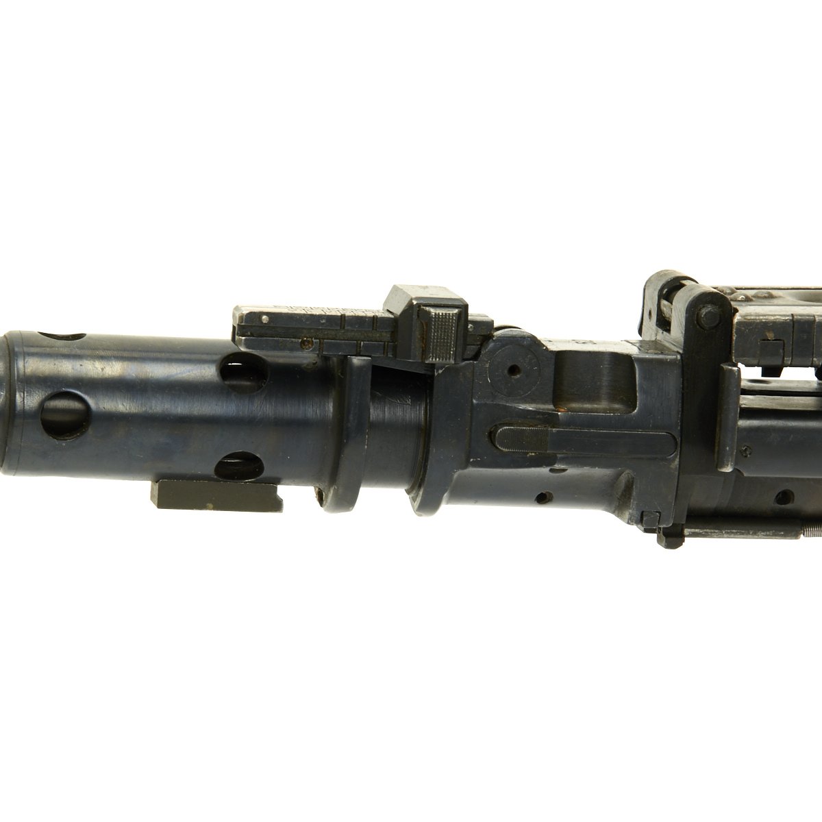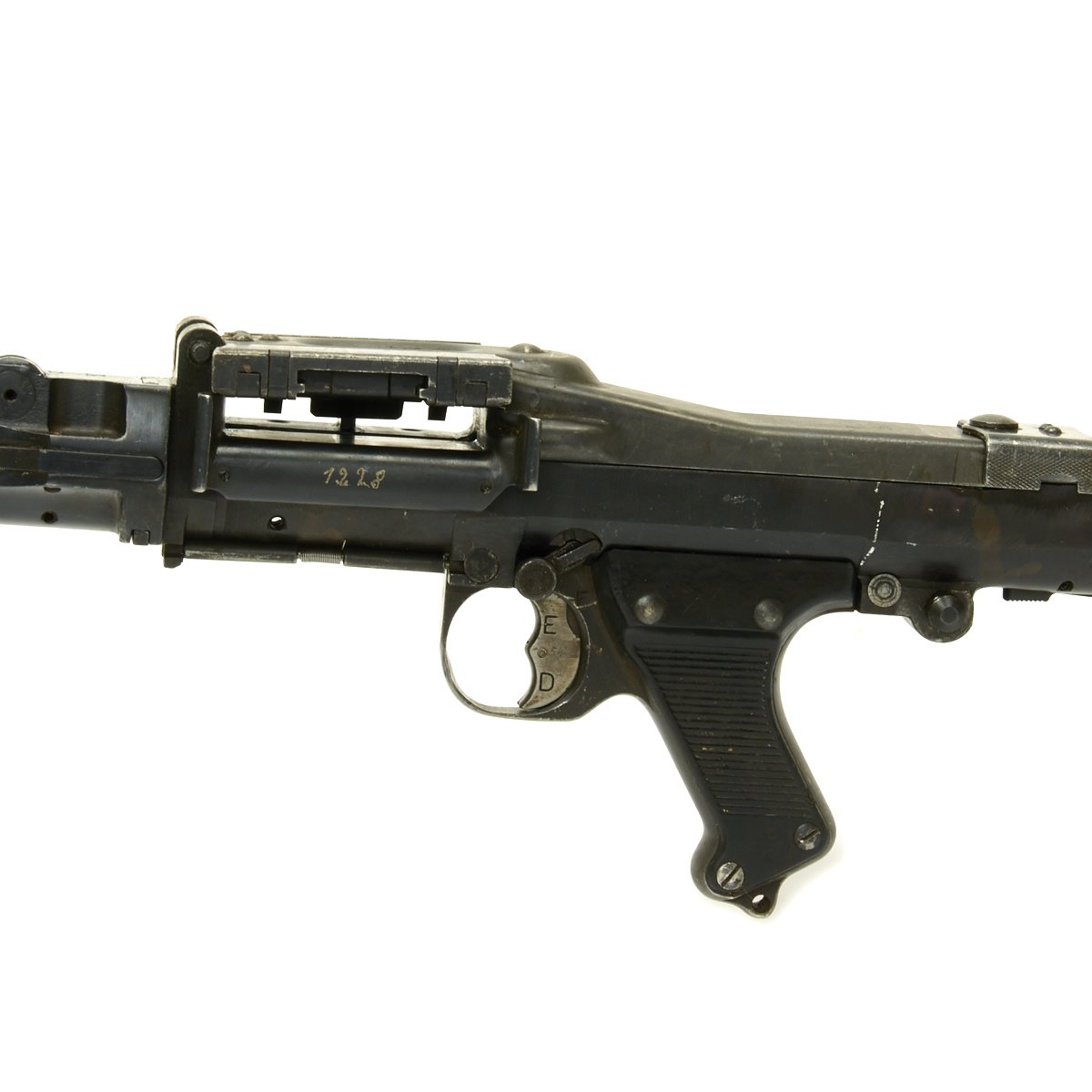 Comprised of nearly entirely original WWII parts, this display gun was reconstructed using a BATF approved solid receiver making this an inert non-firing display gun.
