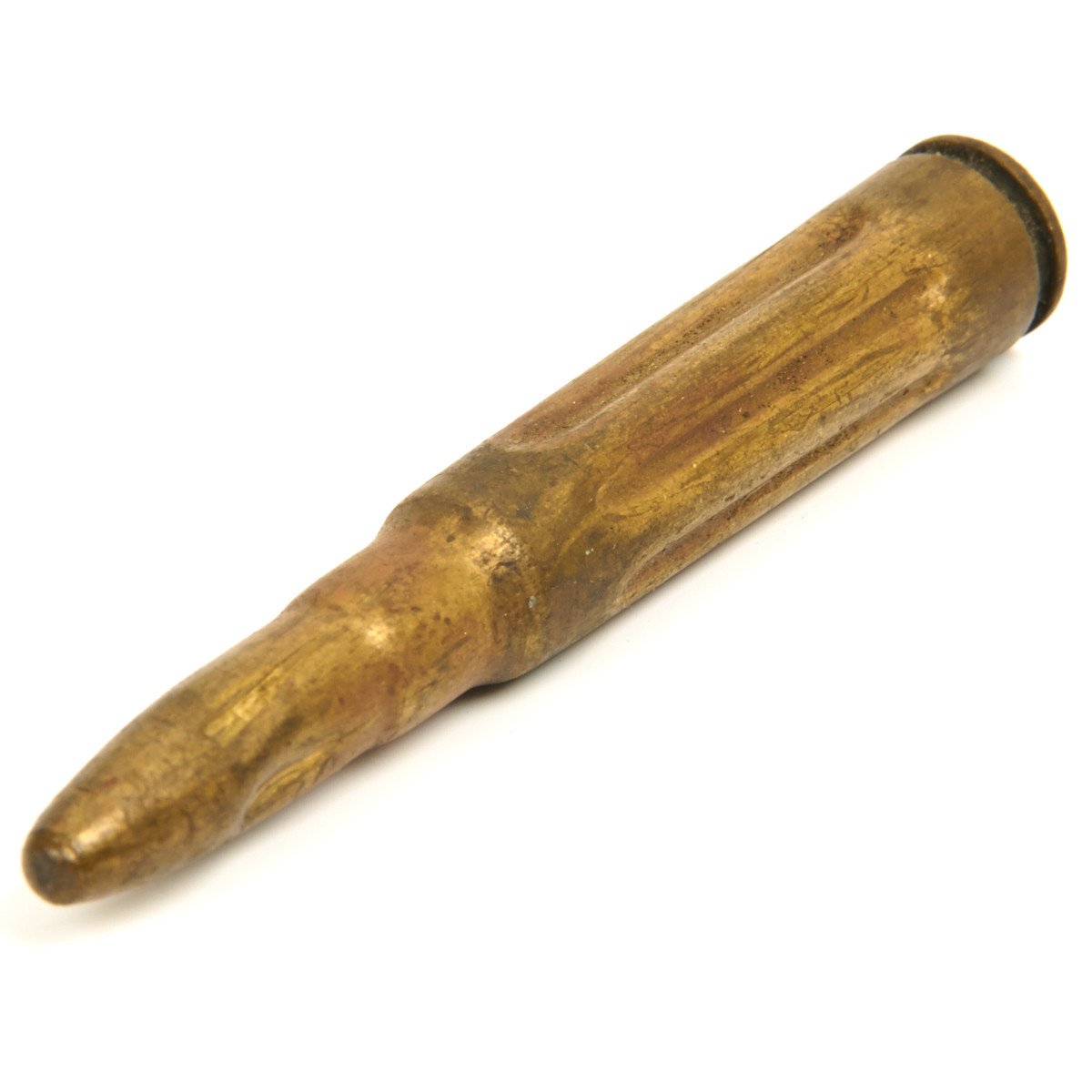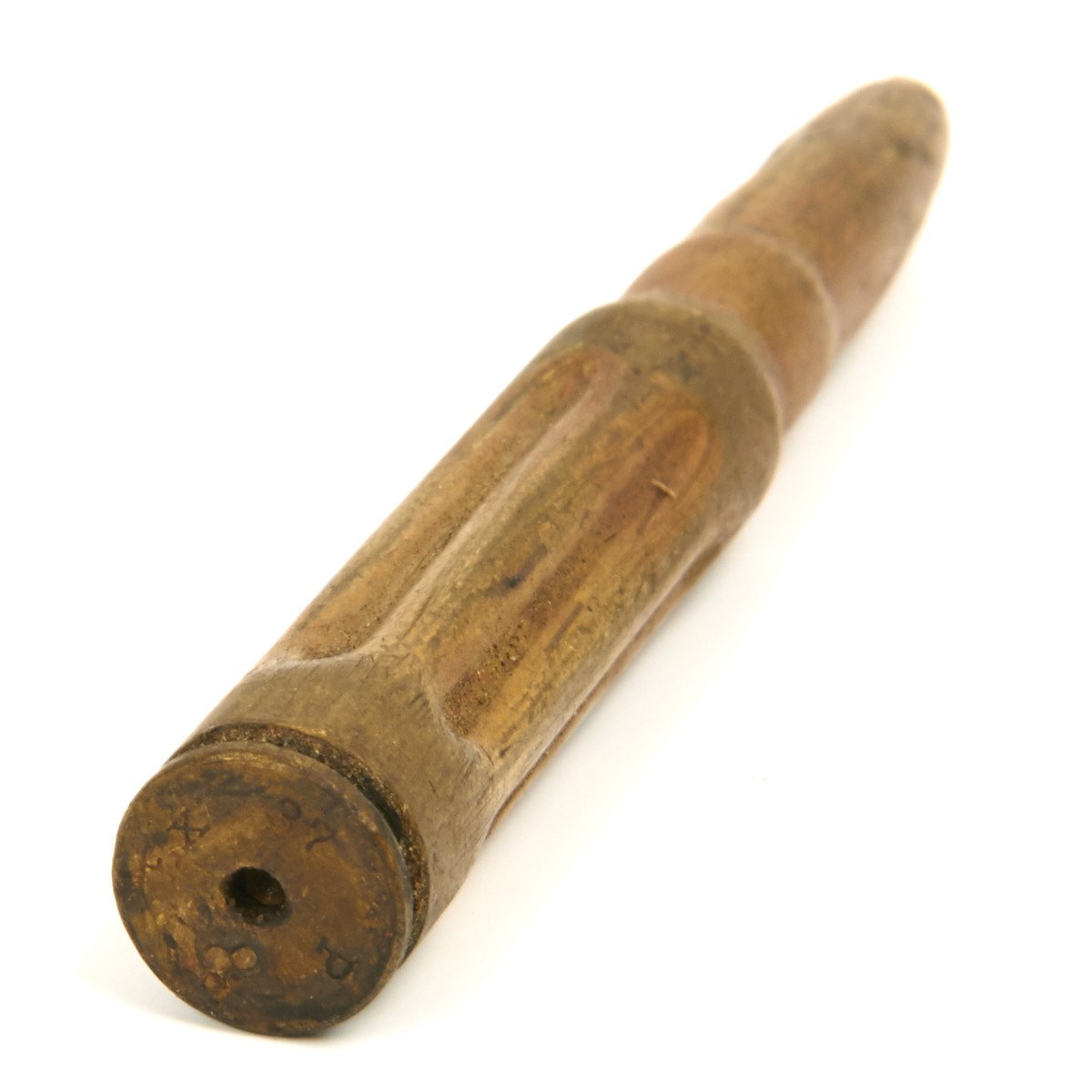 Original Item: I.M.A. has found a small number of WW2 inert training cartridges in its old MG 34 parts stores. These are dummy cartridges issued to training troops in the operation of the MG 34. They are constructed of brass in one piece with an integrated bullet.