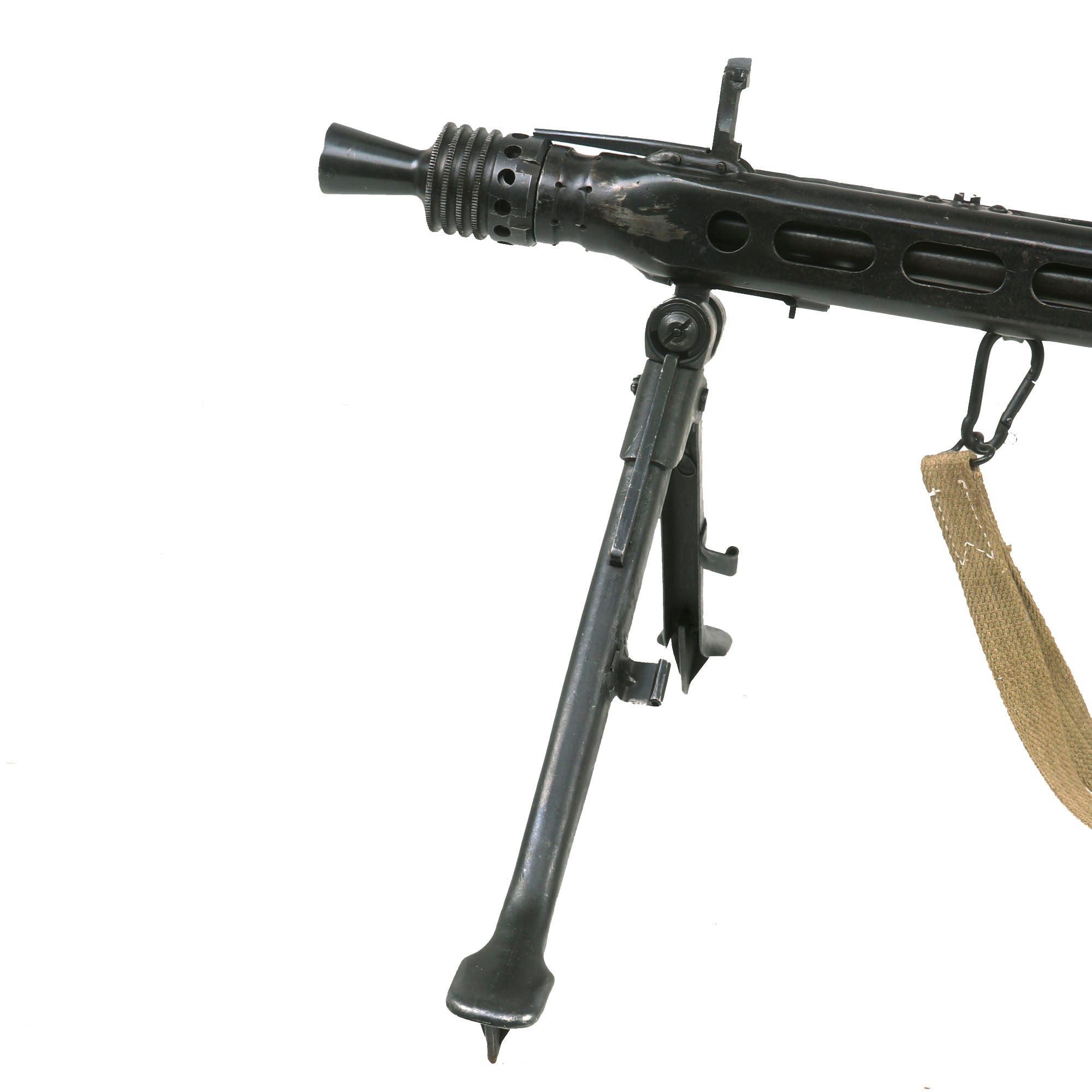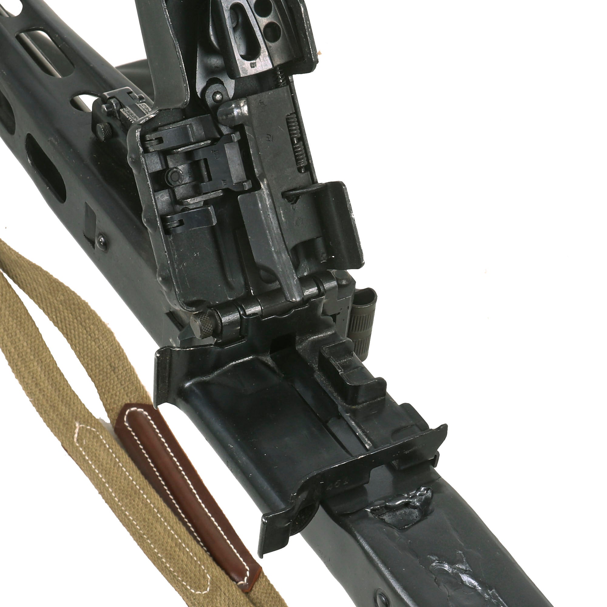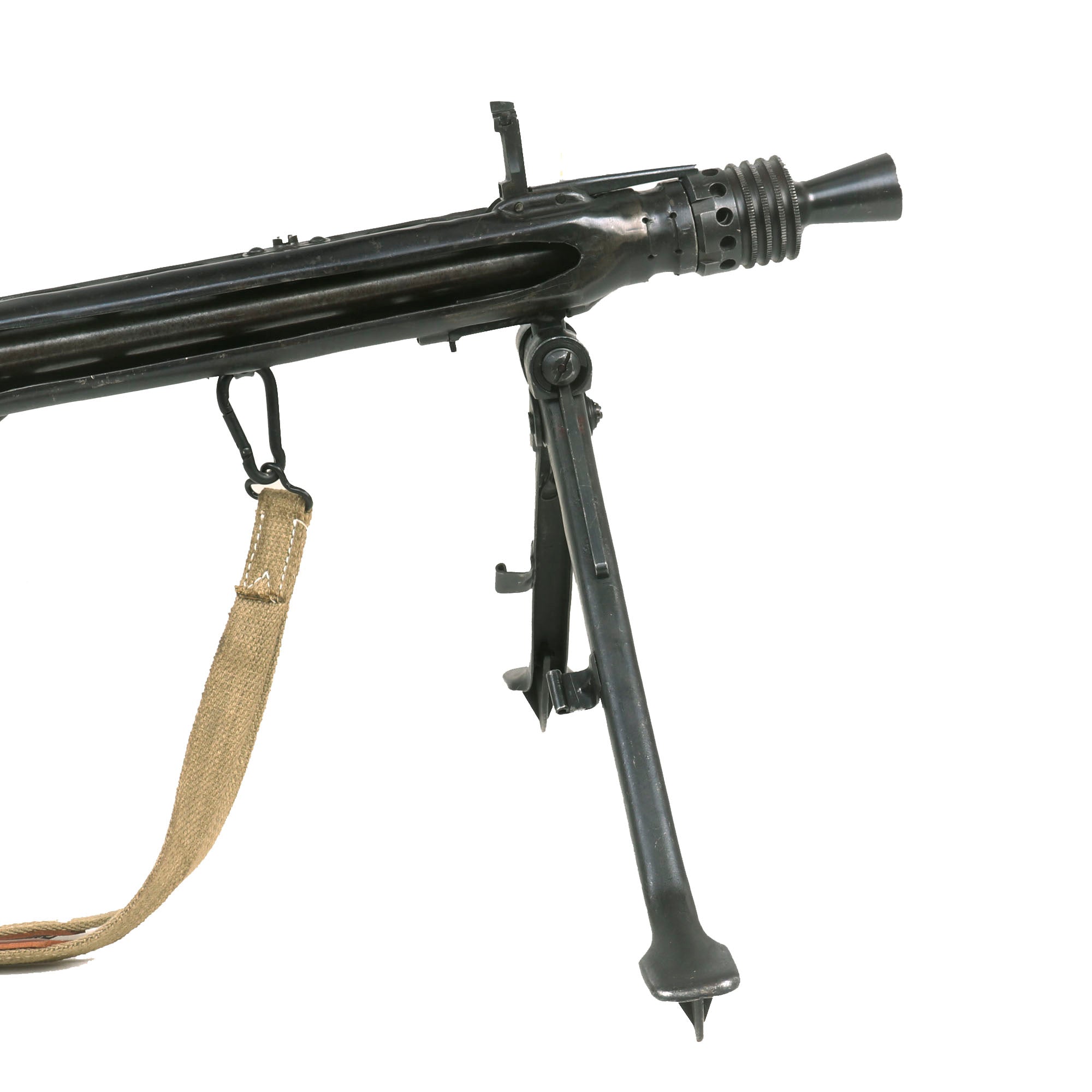 Condition-wise, it is one of the best we have seen in years, and doesn't have lots of crossed out markings as so many do. The metal finish and overall condition is excellent, and it will make a fantastic addition to any WWII Collection. It comes complete with German WWII issue parts including a rubberized wooden butt-stock and bipod. This example even has a fully functioning barrel change assembly! Please note that the barrel must be in the forward position for it to open. We have also fitted it with a replica DAK canvas sling to complete the look.