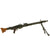 Comprised almost all original WWII parts, this display gun was reconstructed using a BATF approved re-welded receiver with a section completely replaced with solid steel bar stock, making this an inert non-firing display gun. It was then repainted with our lovely "gunmetal gray" acrylic spray paint. Comes complete with German WWII issue parts including a correct dated adjustable bipod and wooden butt stock. It also comes with a belt drum repainted with our correct color spray paint, which really helps complete the look. This example even has a fully functioning barrel change assembly!