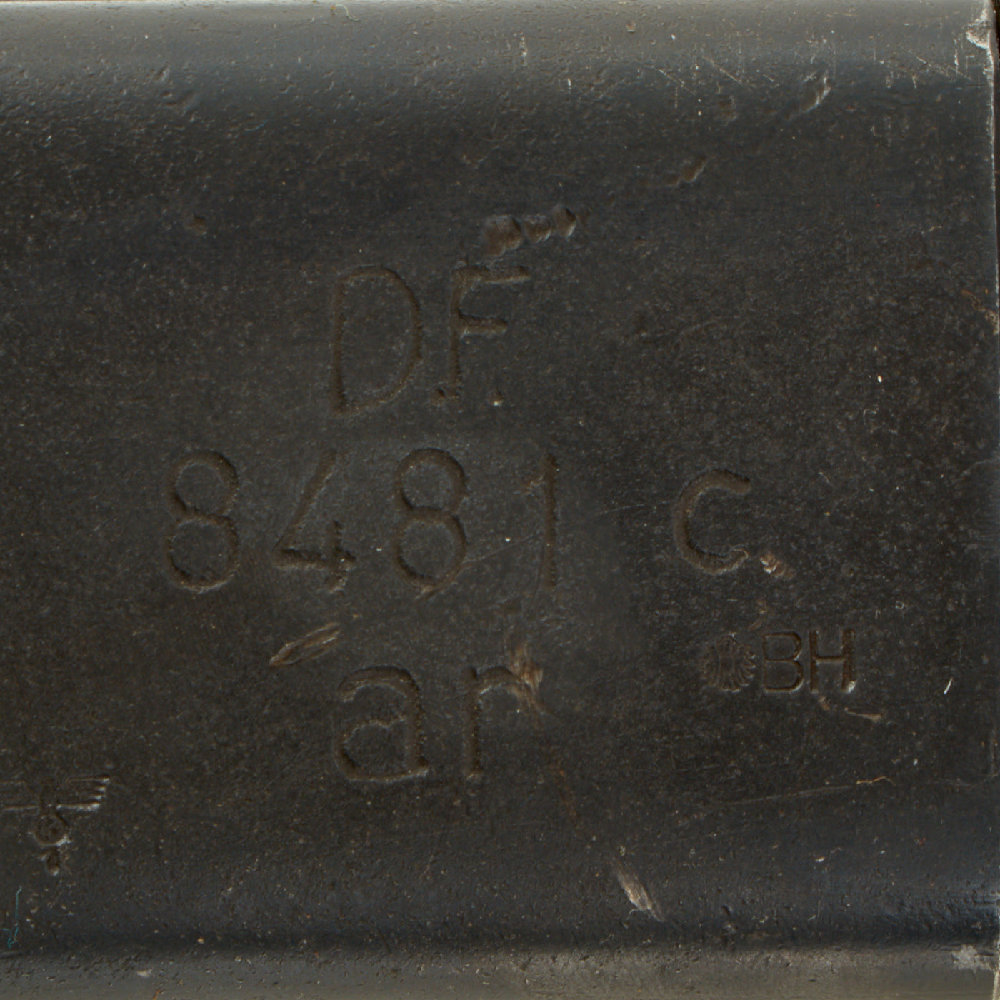 The date code D.F. with this maker mark indicates 1944 production, in the middle of MG 42 production. It is marked with the correct Waffenamt eagle next to arz, the correct marking for the inspectors stationed at the Mauser factory. There is also the correct Waffenamt eagle over 26 on the top of the rear receiver, the correct marking for other inspectors stationed at the Mauser factory. Next to the markings is an EAGLE BH marking, indicating post war service with the Austrian Bundes Heer.