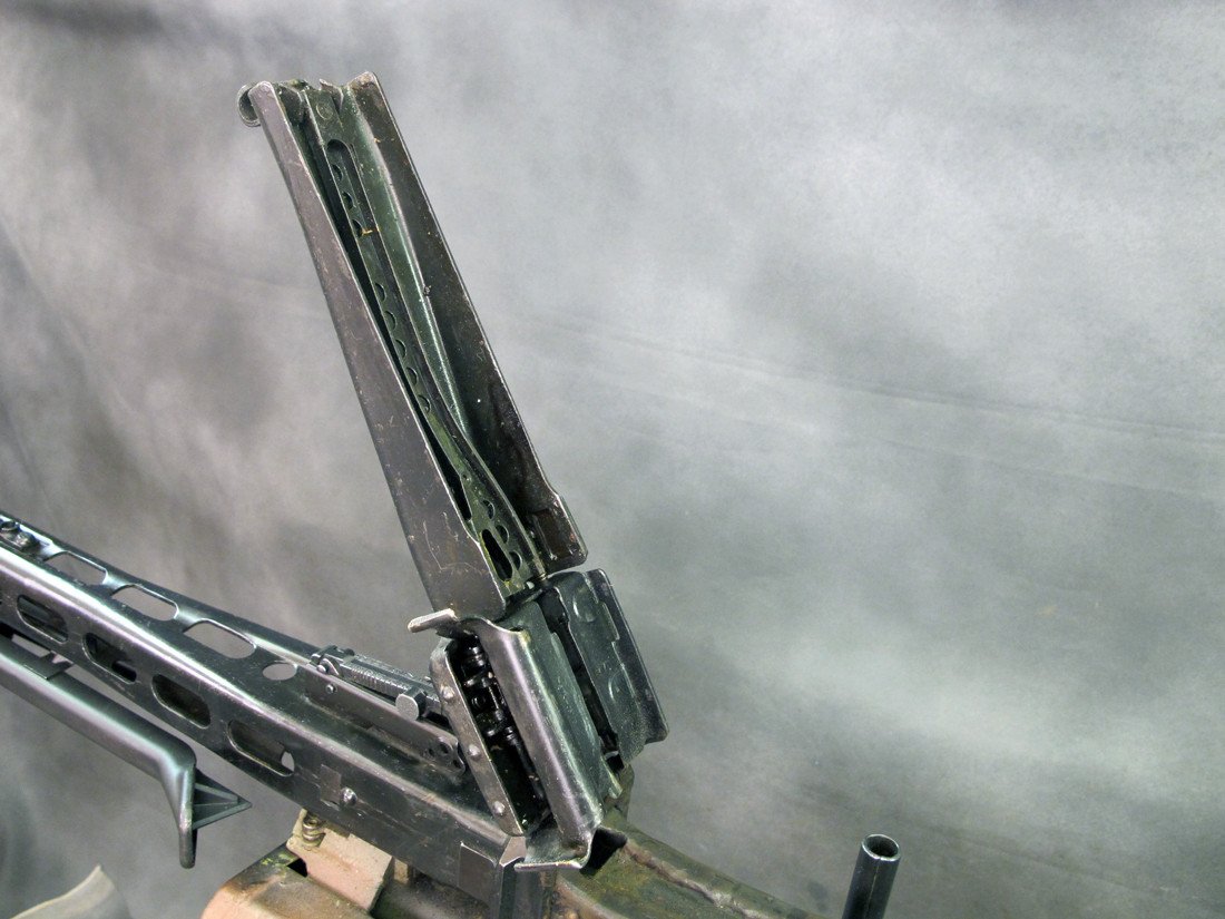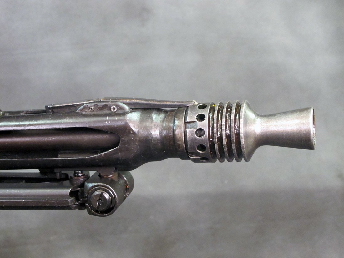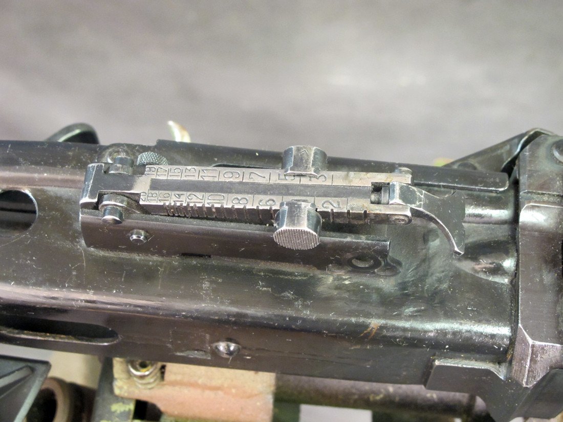 This stunning example comes complete with all German WWII issue parts including a wood butt-stock, a bipod, WWII marked belt drum and even an AA Spider Sight mounted on the barrel jacket.