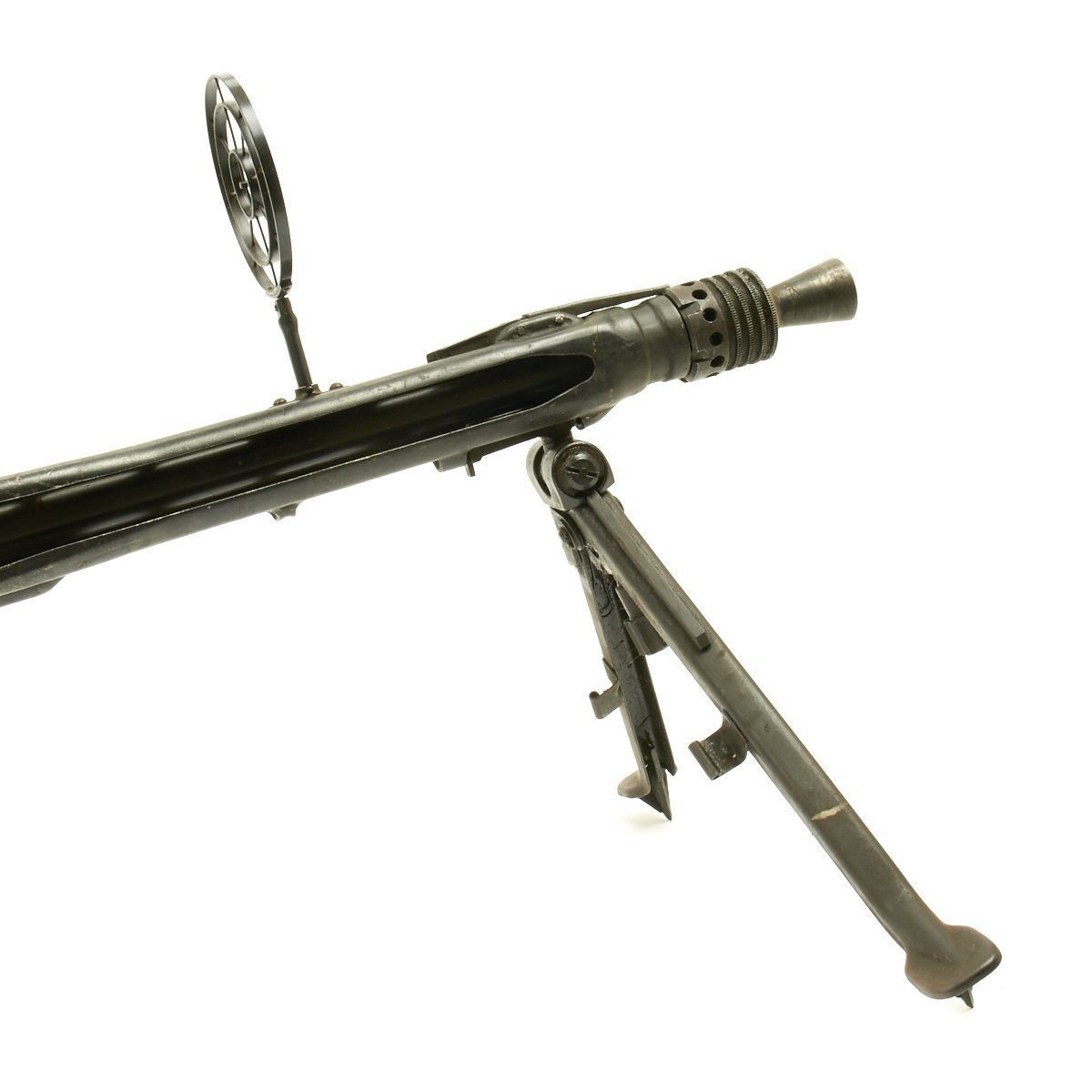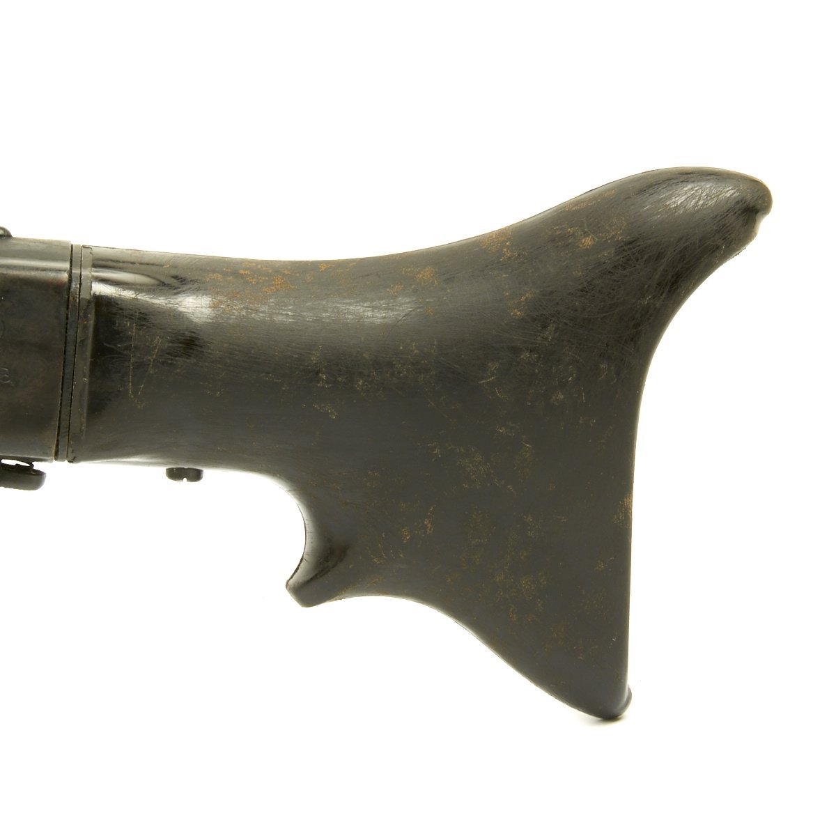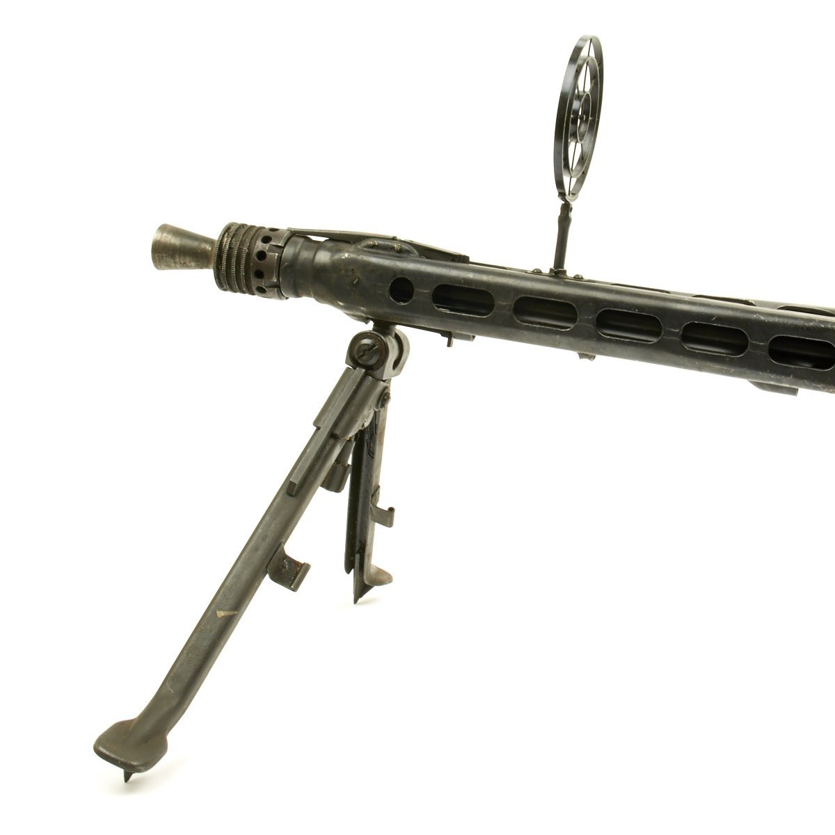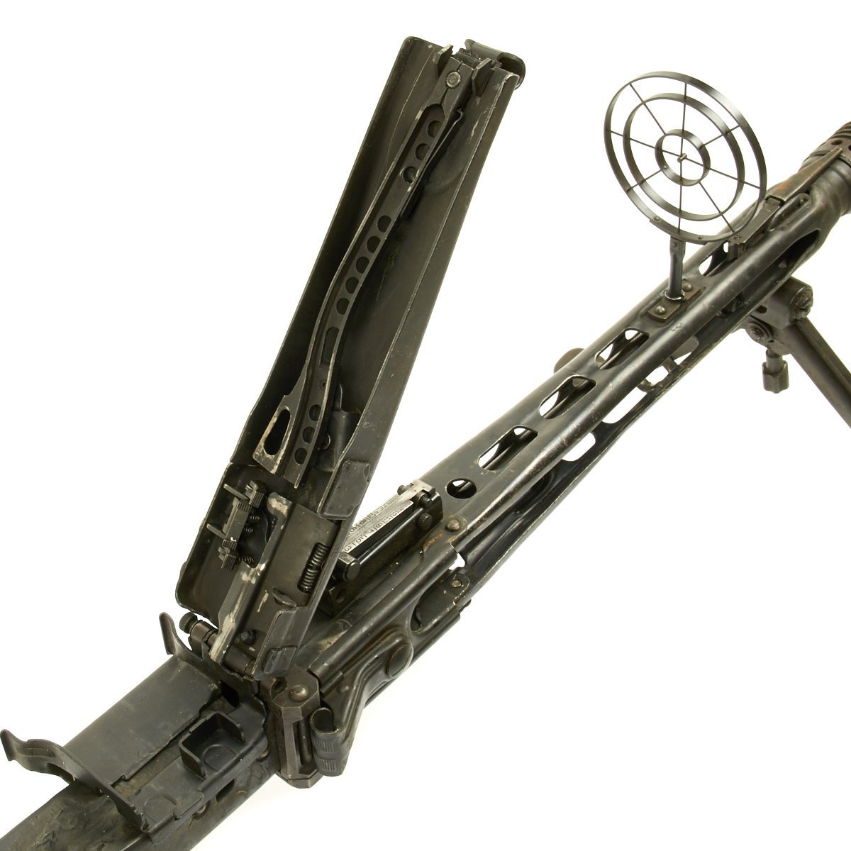 This nice example comes complete with all German WWII issue parts including a very rare bakelite butt-stock, front anti-aircraft sight, and WWII Issue bipod.
