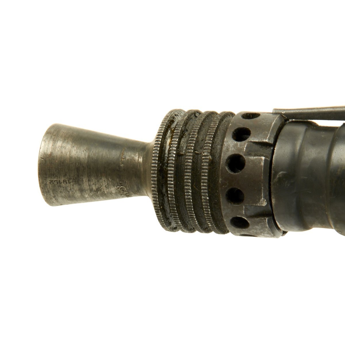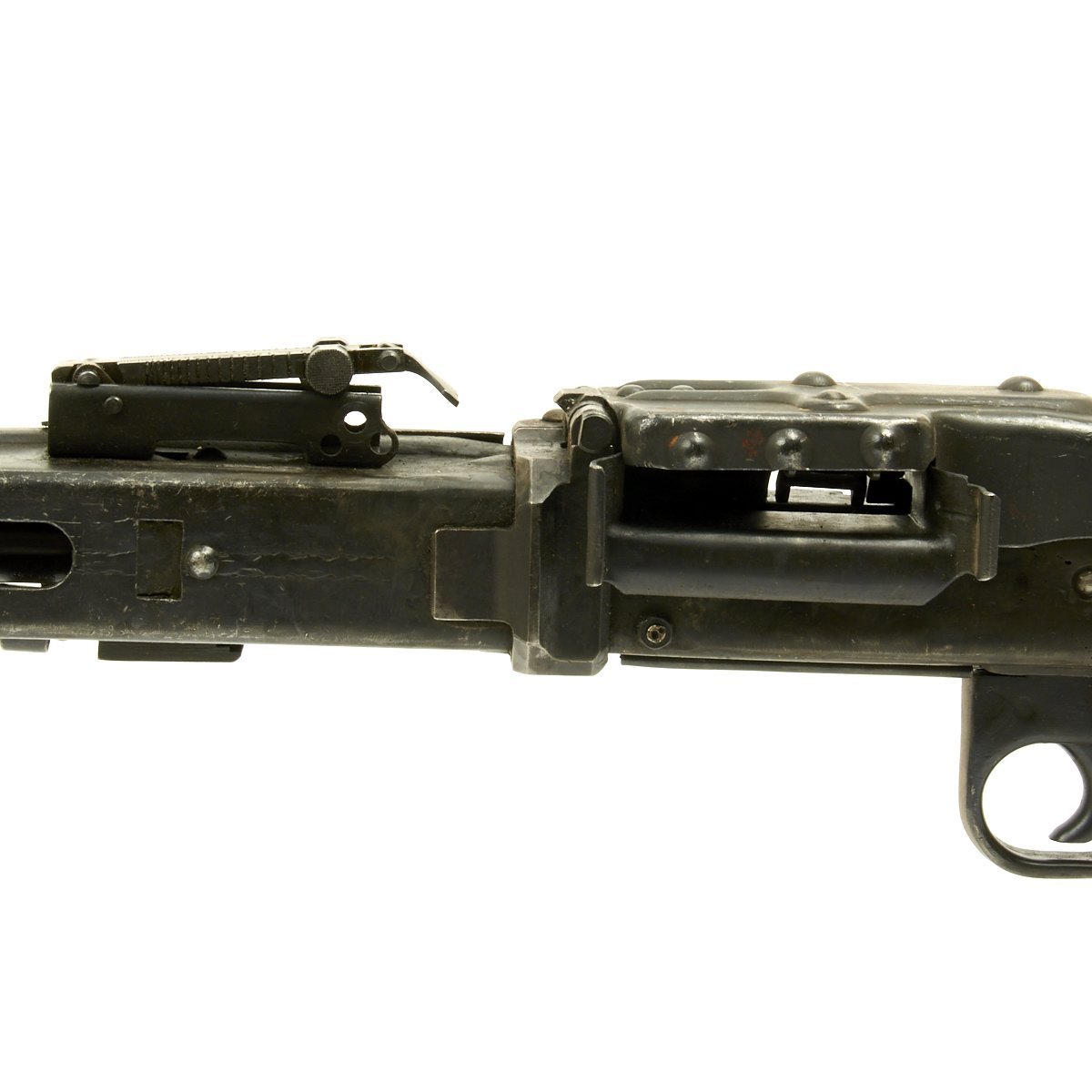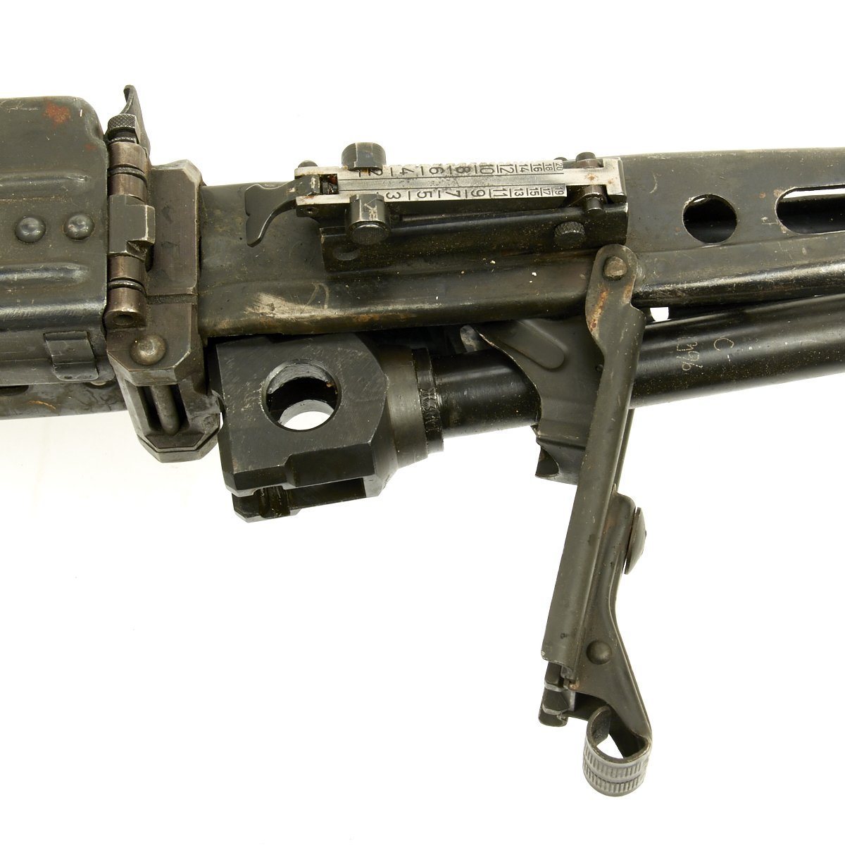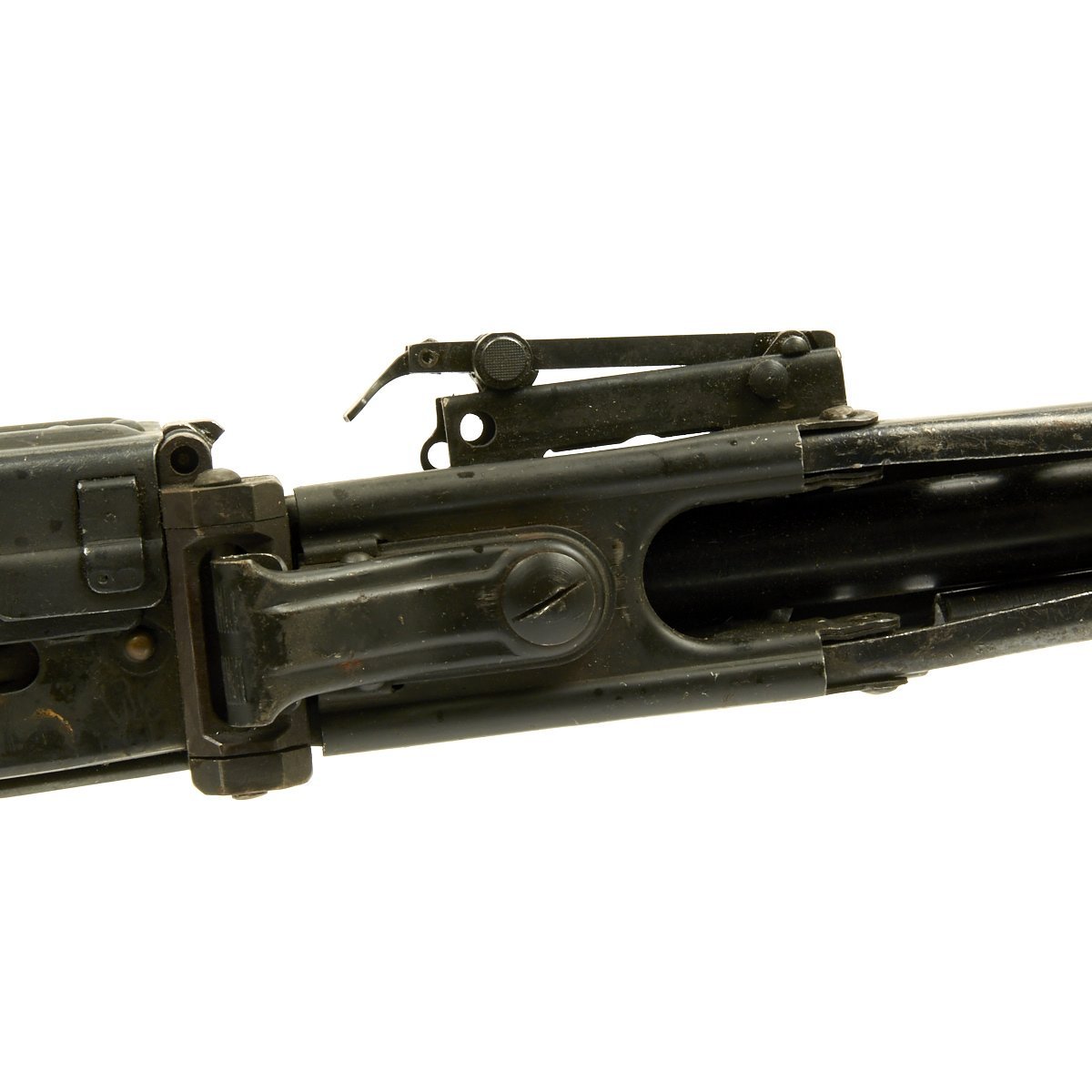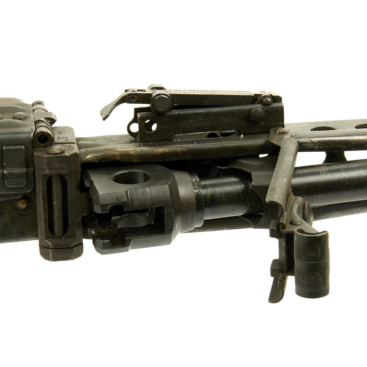 This nice example comes complete with all German WWII issue parts including a very rare bakelite butt-stock, front anti-aircraft sight, and WWII Issue bipod.