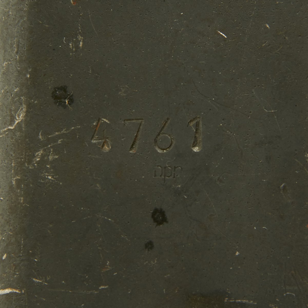 The bakelite butt stock is in very good condition, with no cracks or dents. The top cover is marked with bpr, the maker code for Johannes Grossfuss, Dölbeln in Sachsen. This display gun bears waffenampt proofs on various components.