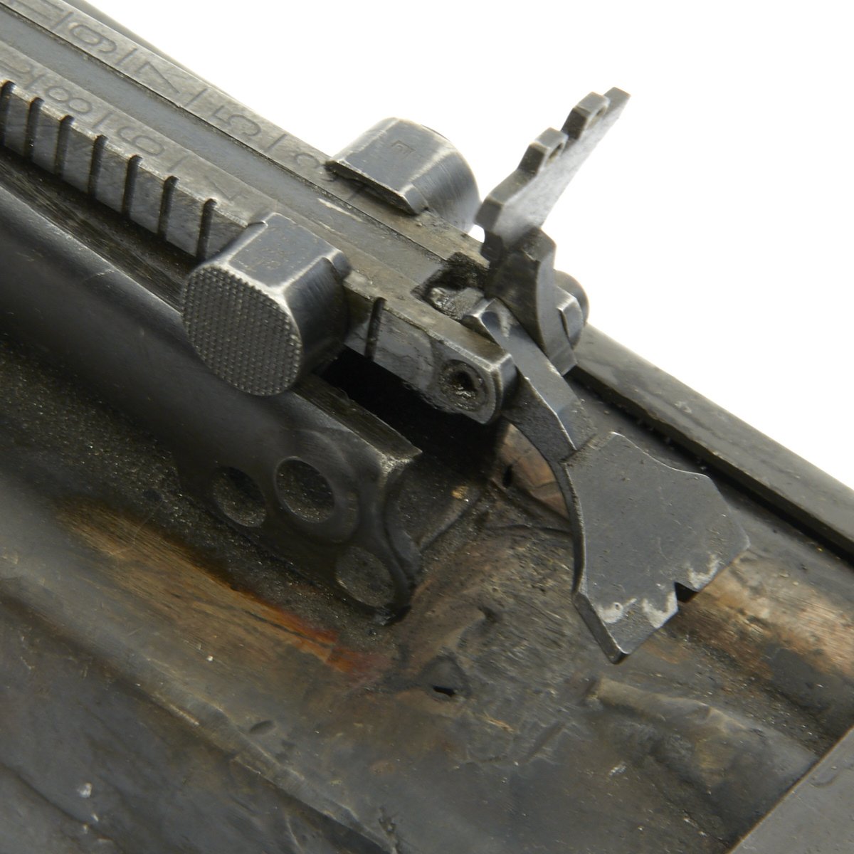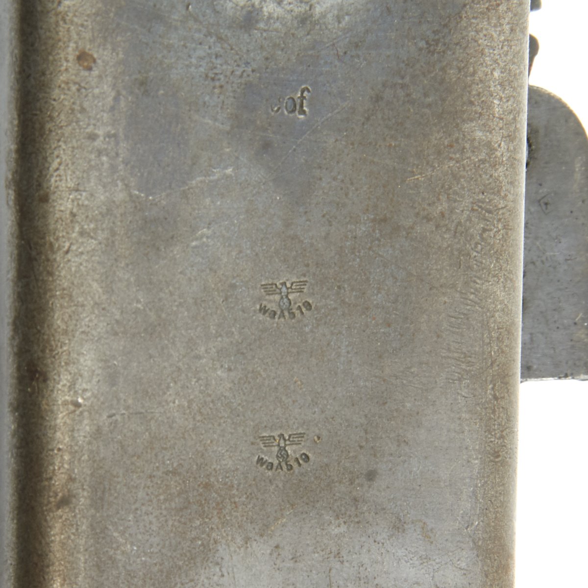 The bakelite butt stock is in very good condition, with no cracks or dents. The top cover is marked with cof for Carl Eickhorn, Solingen, a prolific manufacturer of edged weapons. This display gun bears Waffenamt proofs on various components.