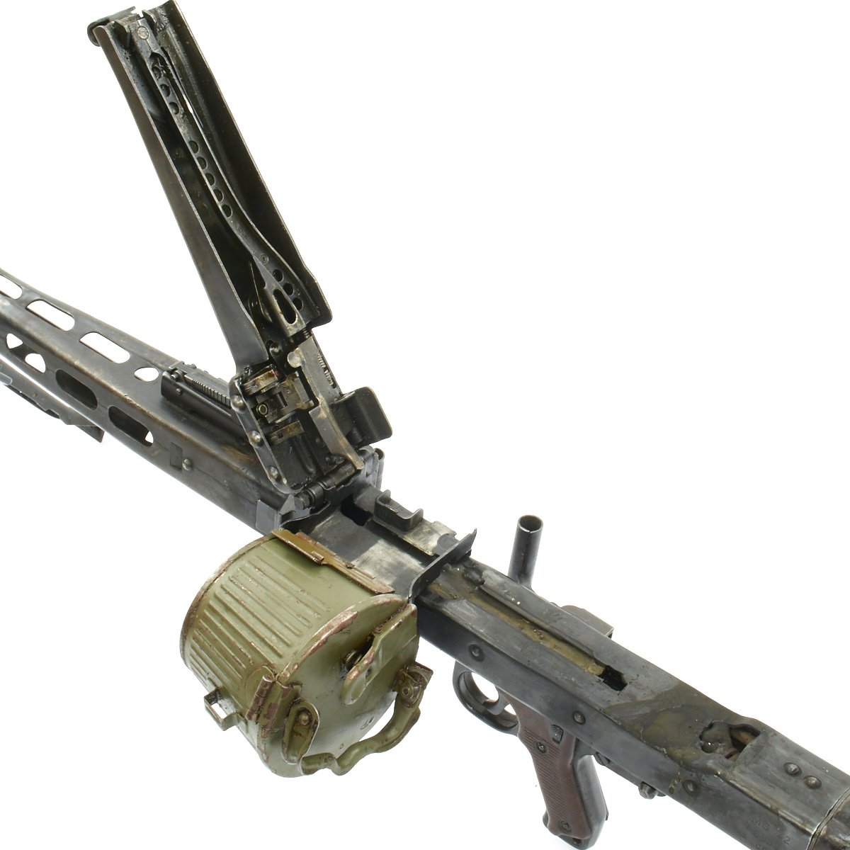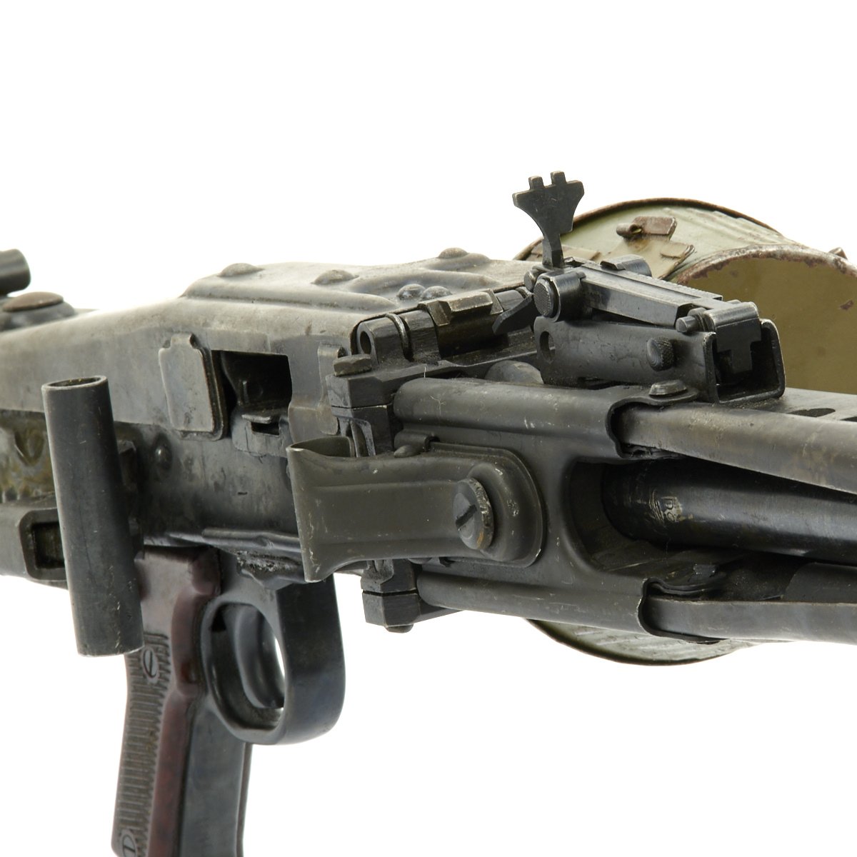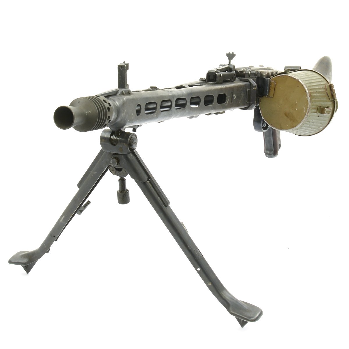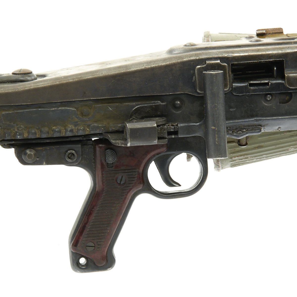 Original Item: Only One Available. Constructed years ago from a legally demilitarized (de-milled) parts set; this is an all German WW2 MG42 Display Gun. This wonderful example comes complete with all German WWII issue parts including a very rare bakelite butt-stock, front anti-aircraft sight, and WWII Issue bipod. Also included is an original basket belt drum carrier.