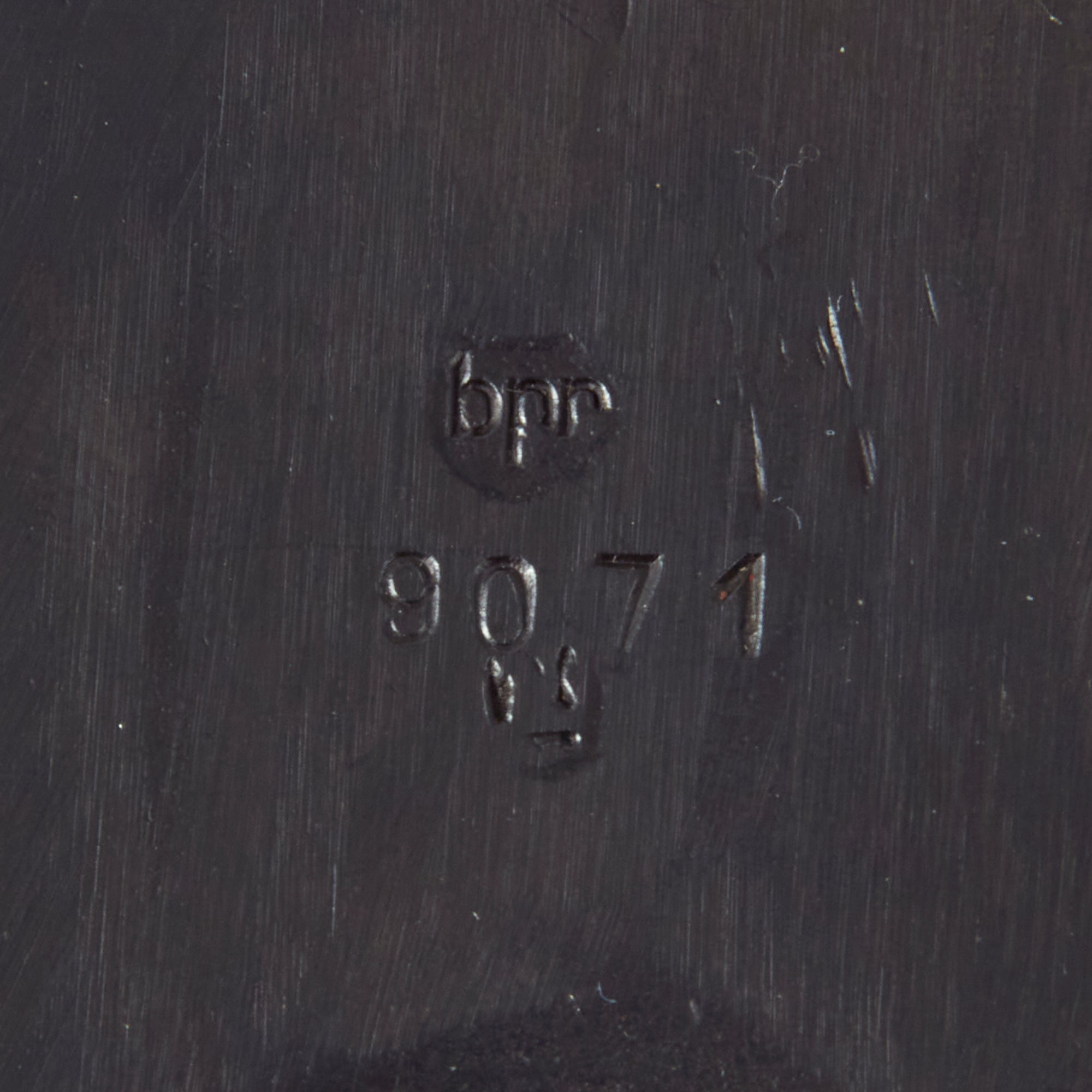 The rebuilt inert non-firing BATF approved receiver with a solid steel new made sections unfortunately has no marking on the left rear, as they were often removed during the post war use, which this example definitely looks to have seen. The top cover on the other hand has some great markings, bearing three letter code bpr, for Johannes Grossfuss of Dölbeln in Sachsen, a known maker of feed trays and top covers for both the MG 34 and 42. Under this is serial number 9071, and the feed tray has the same maker marking on it.