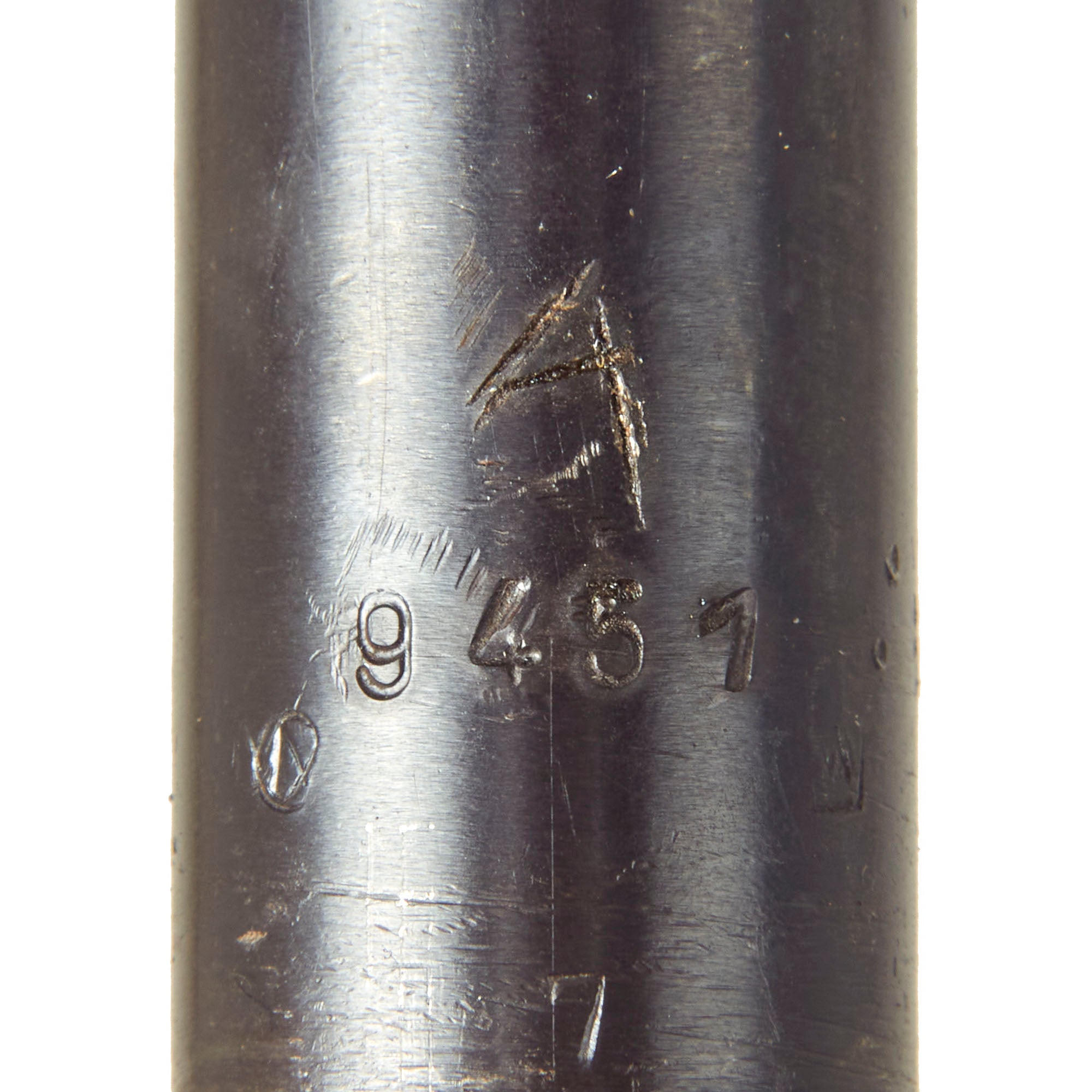 The bipod is the correct type and is in great shape, however the original markings look to have been removed, and some larger numbers stamped in their place. This display gun bears additional markings on various components.