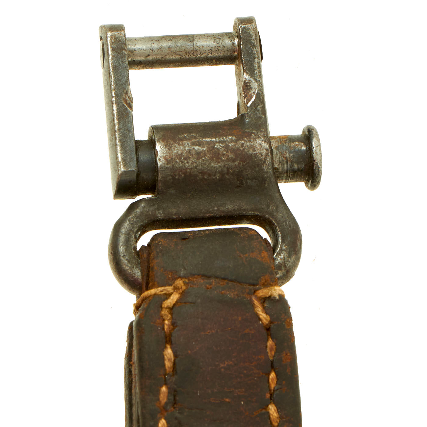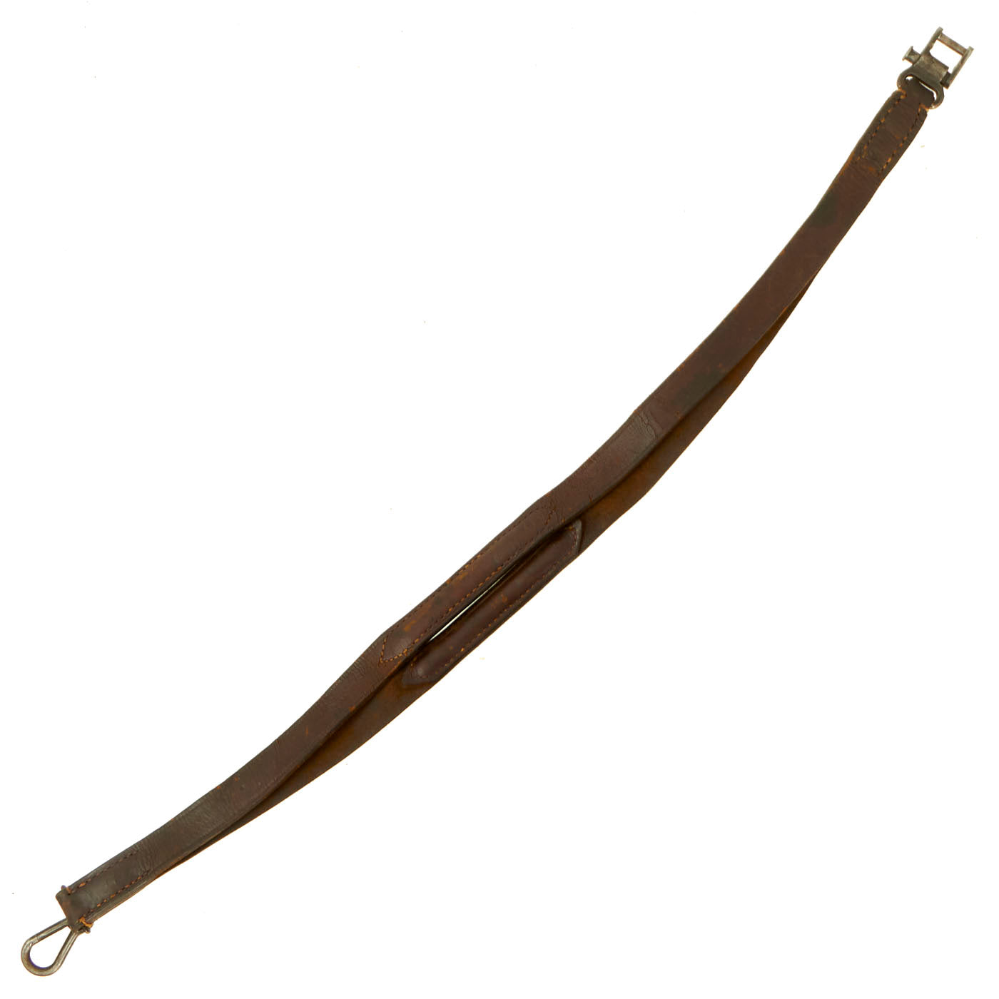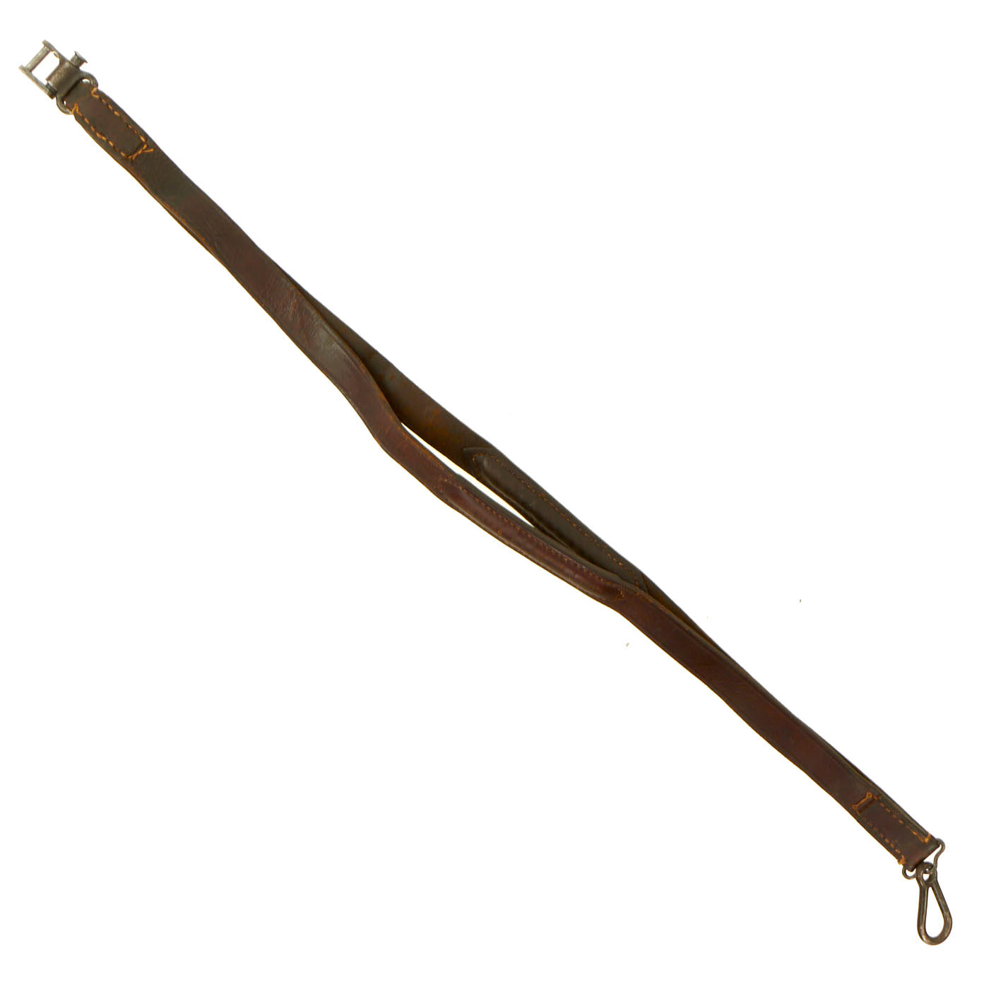 Original Item: Only One Available. The leather sling that was issued with the MG42 was constructed from two straps with a padded middle section, sewn together at each end. The sling served several purposes. It could be used to carry the machine gun in the traditional way, suspended over the shoulder, it could act as a carrying handle when split on each side of the gun and joined together at the top and it could also be used as a support when firing the MG from the hip during advancement.