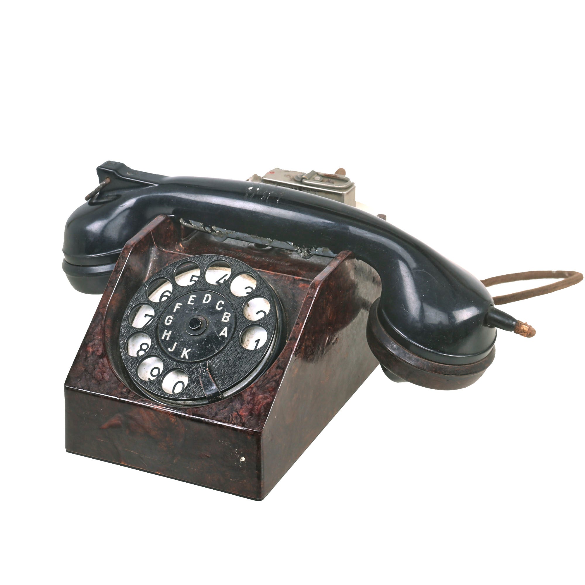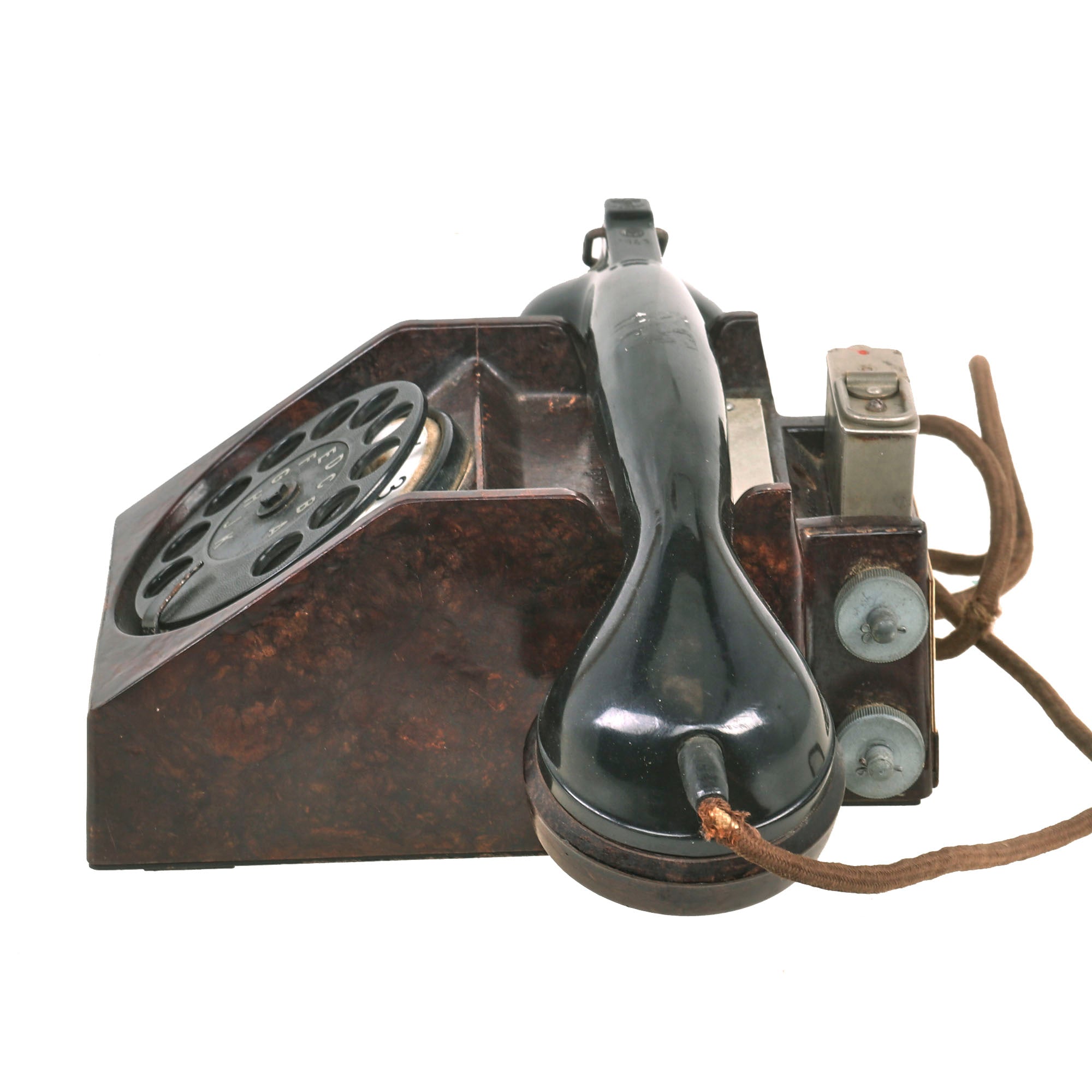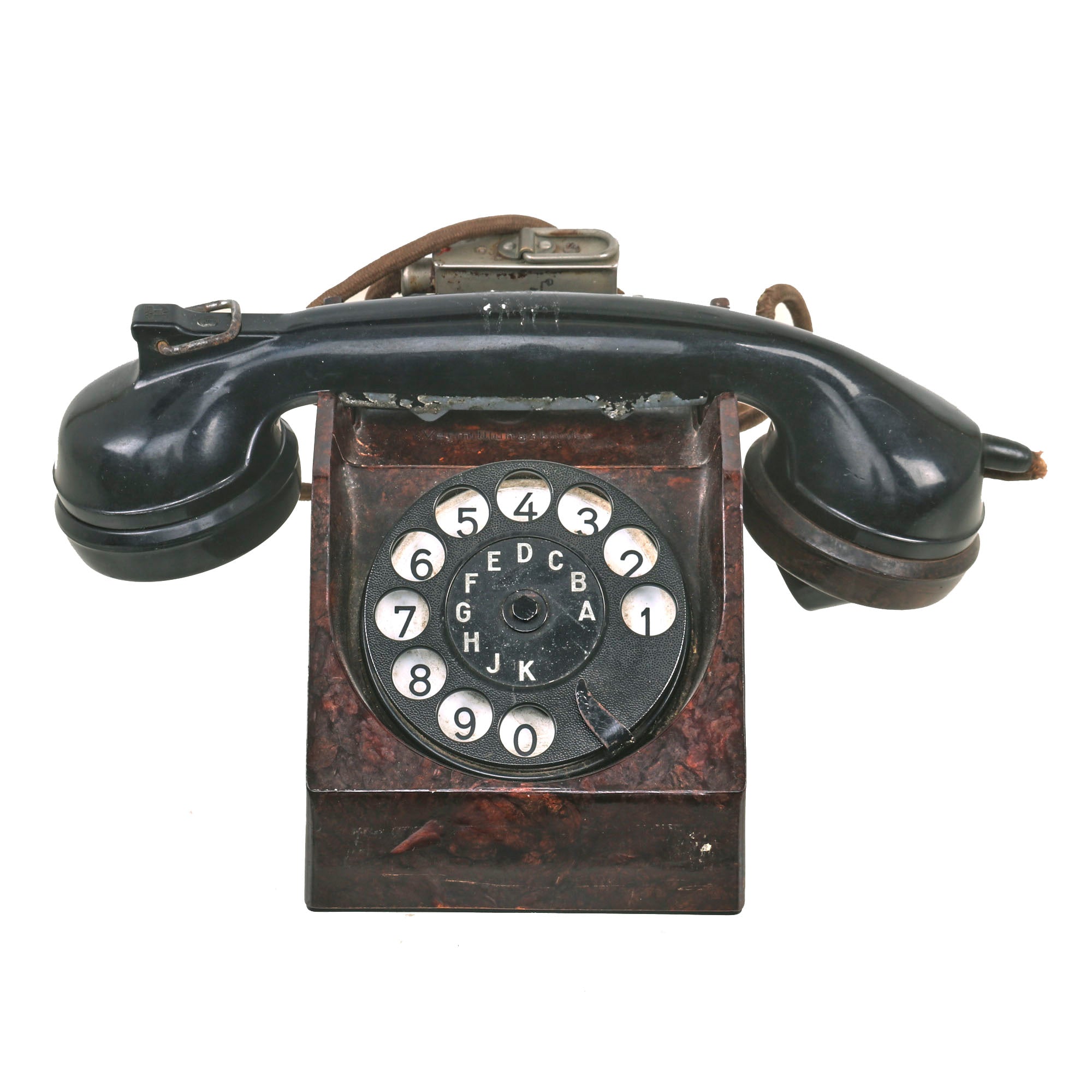 Original Item: Only One Available. This is a stellar example of a very hard to find piece of field gear! An absolutely original bakelite rotary telephone marked ddu indicating manufacture by R.B.& Co., serial number 29230, dated 1942 on the bottom of the unit together with an illustrated circuit board.