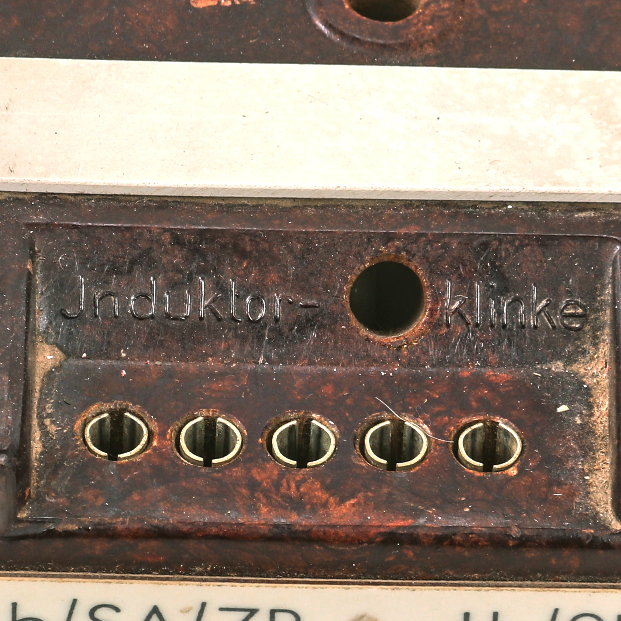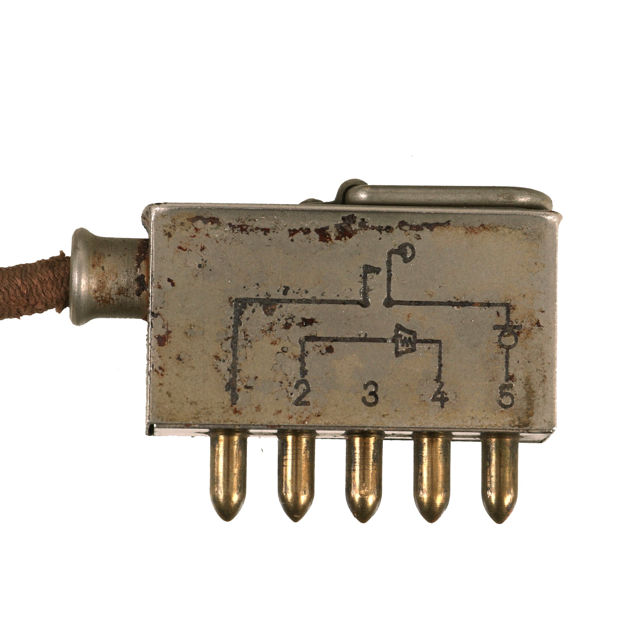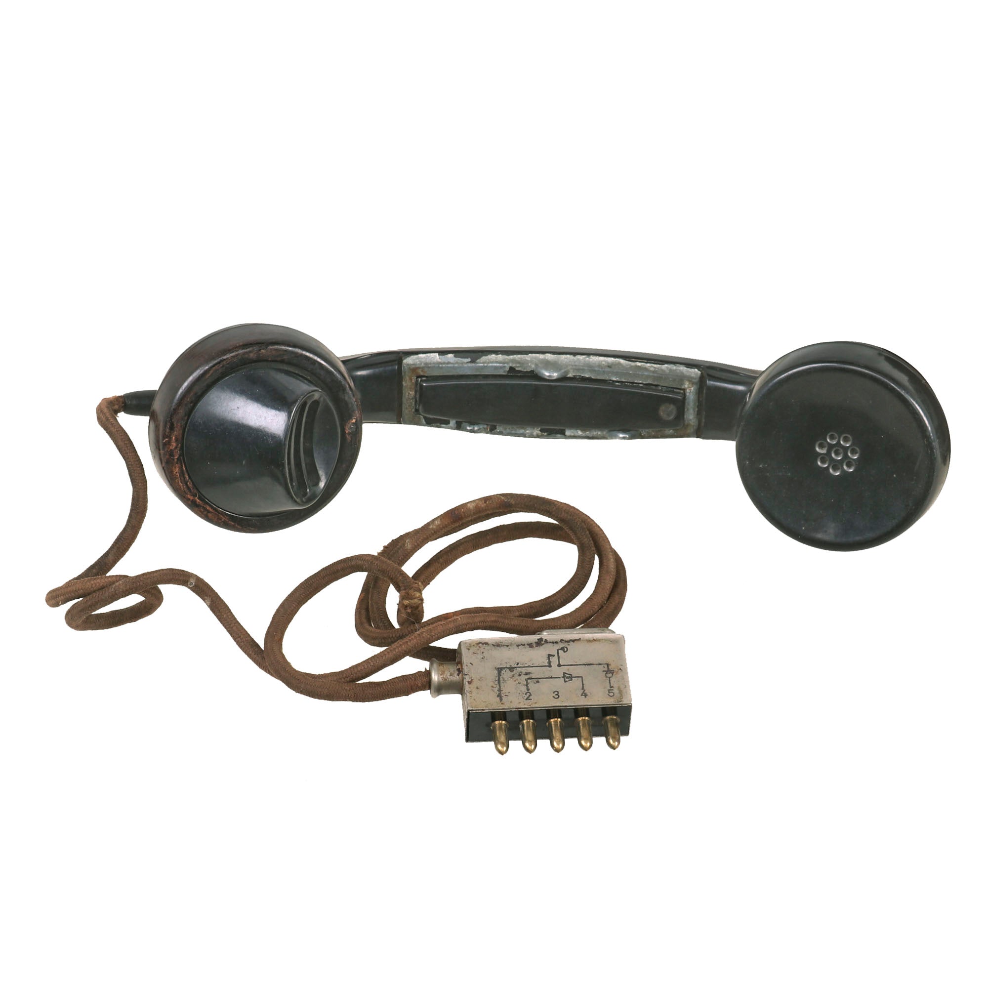 The handset is clearly dated 1943 with a Waffenamt stamp numbered 900, cast into the bakelite, and the connection cord terminates into a five pointed plug. This connection will also plug into the F33 field telephone. A very nice example, manufactured by Richard Bosse & Co Berlin, Südost 36.