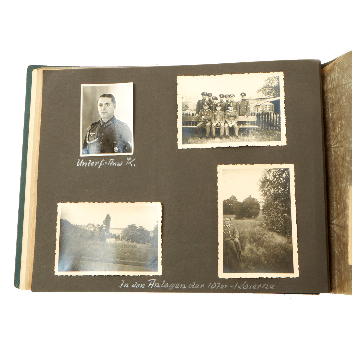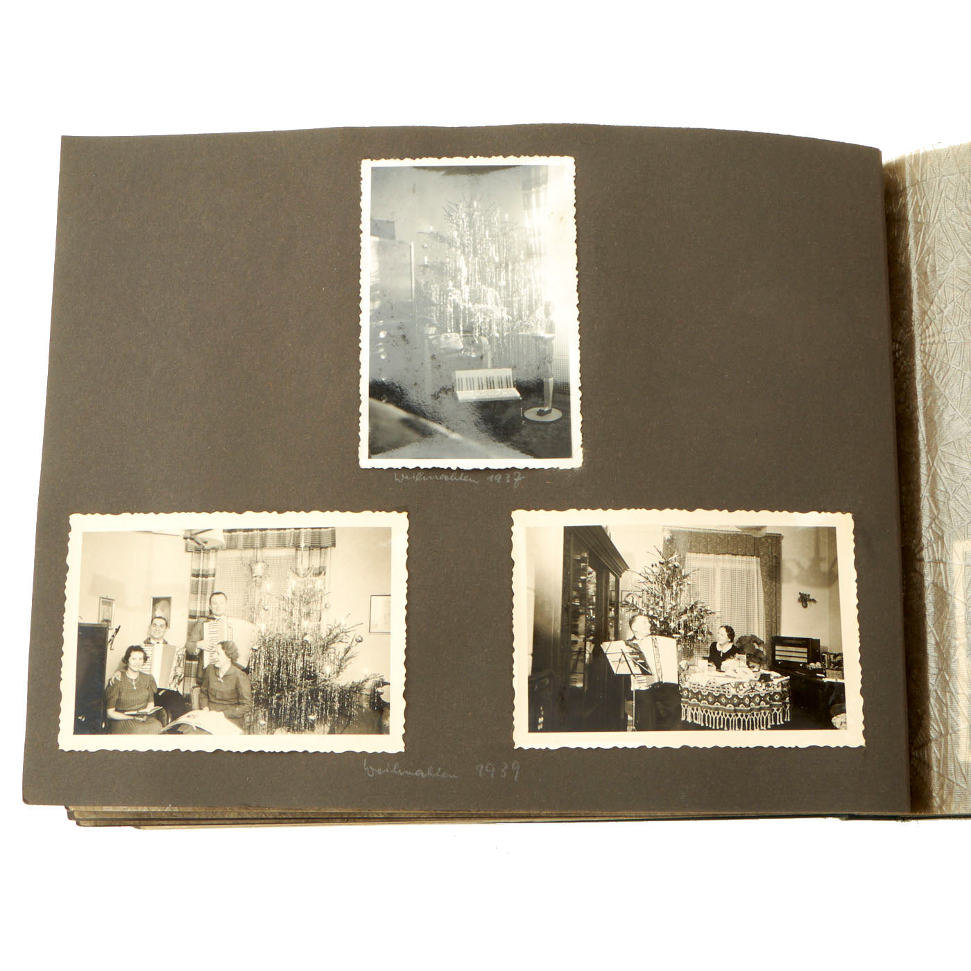 Original Item: One-Of-A-Kind. This is a lovely example of a personal photo album belonging to a young officer in the Leipzig District Command before and during WWII. A wonderful personal photo album, marked on the front with the Reichsadler Eagle, over district designation Wehrbezieks-Kommando / Leipzig 1 (Military District Command / Leipzig 1). Inside the front cover is the standard title page and this one is for Weihnachten 1937 (Christmas 1937). The back still has a visible maker mark, and the album overall measures approximately 10.5" x 7.5".