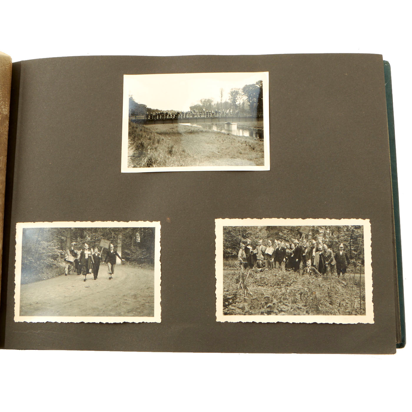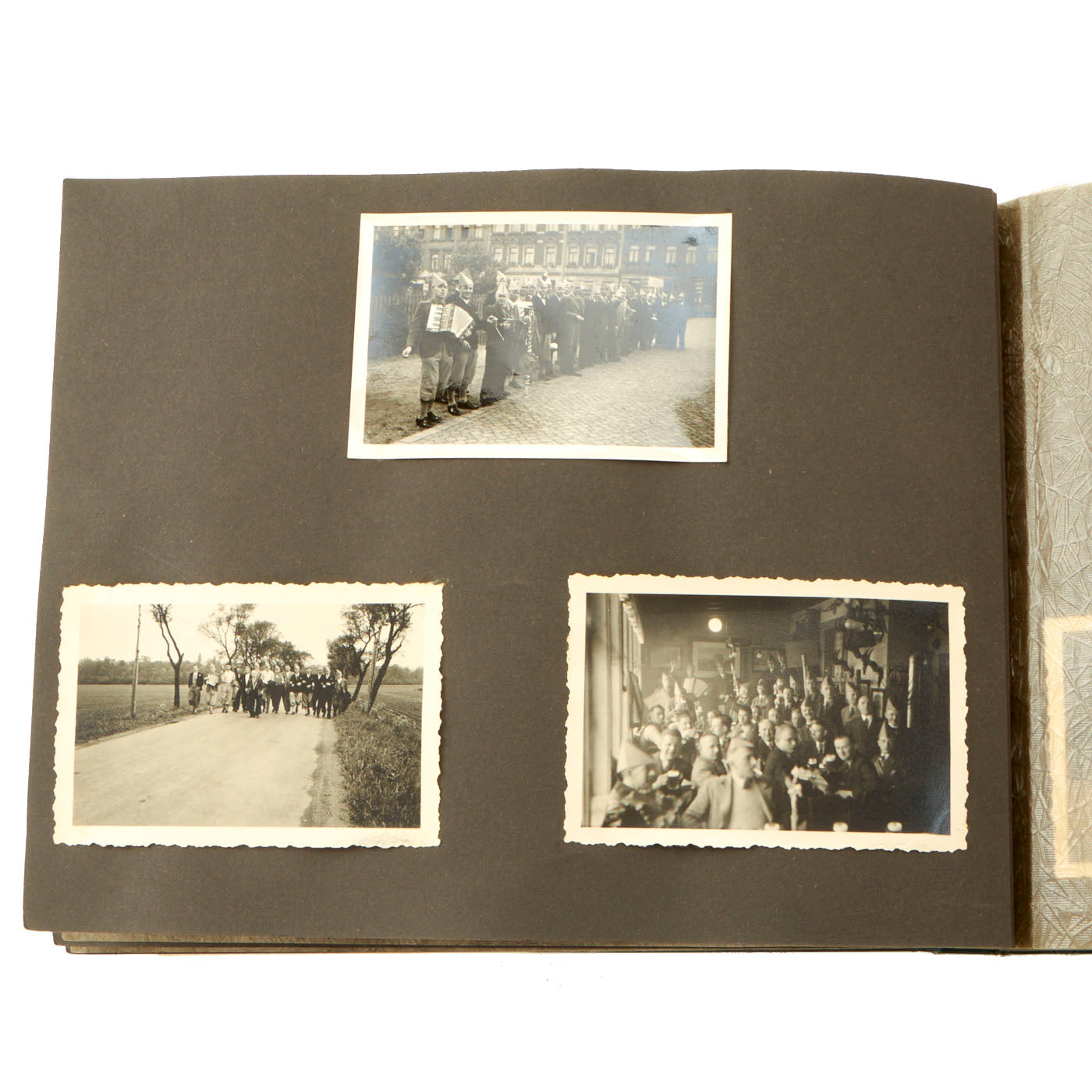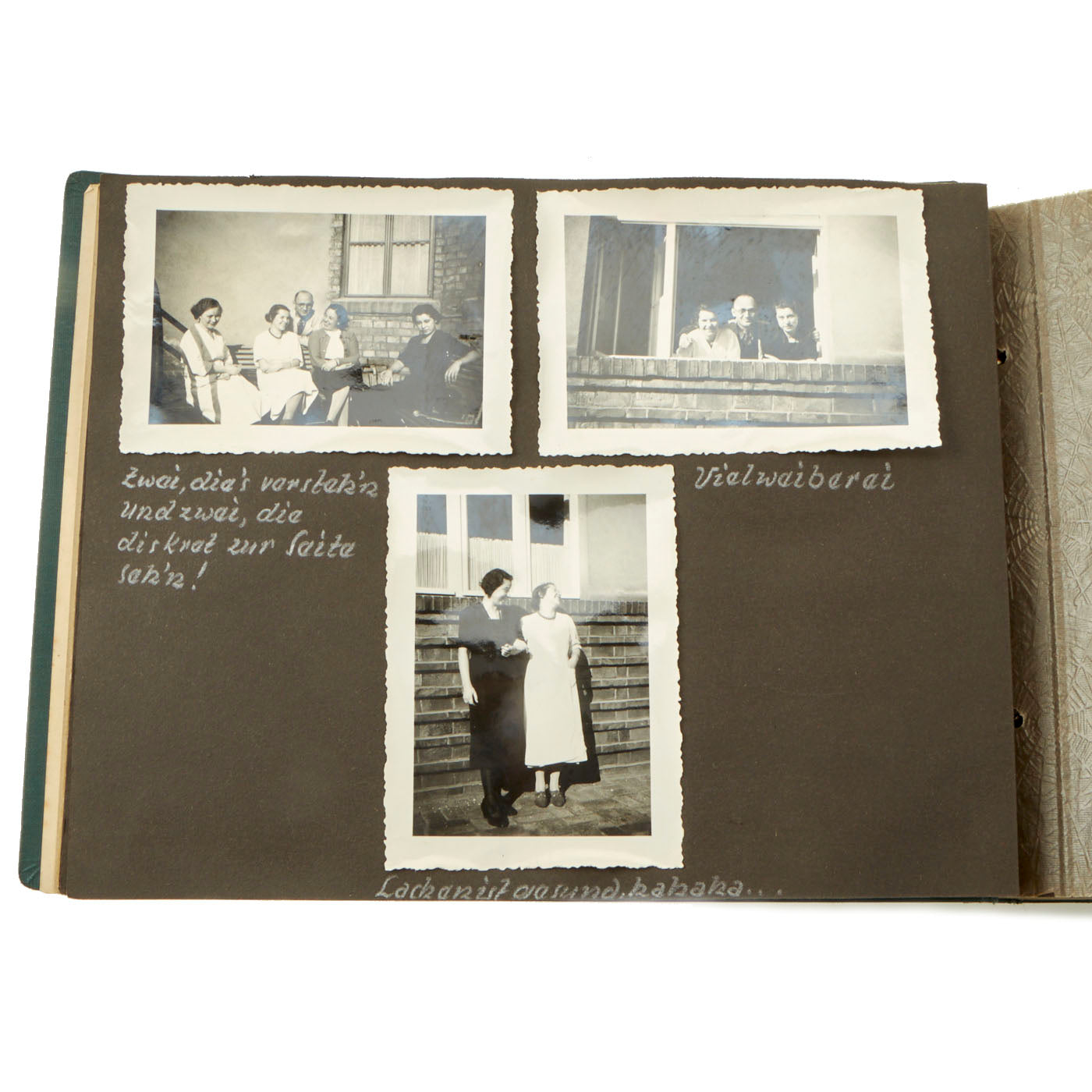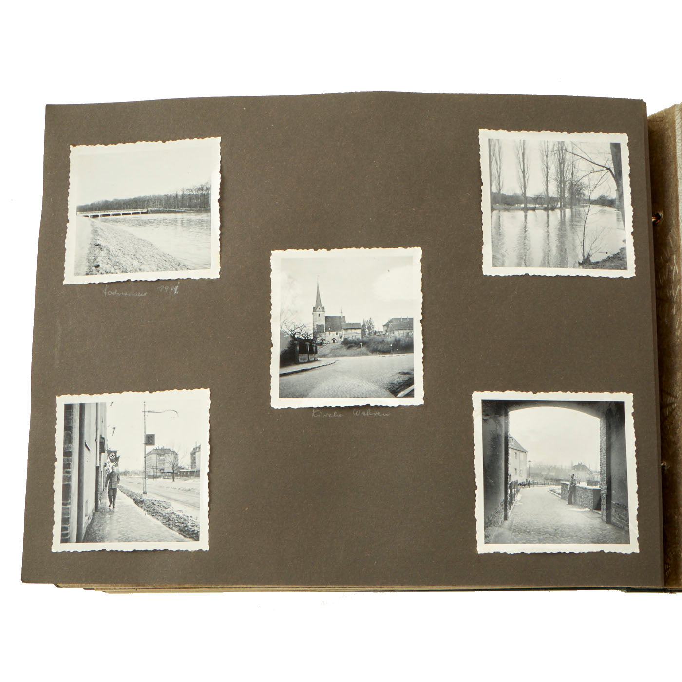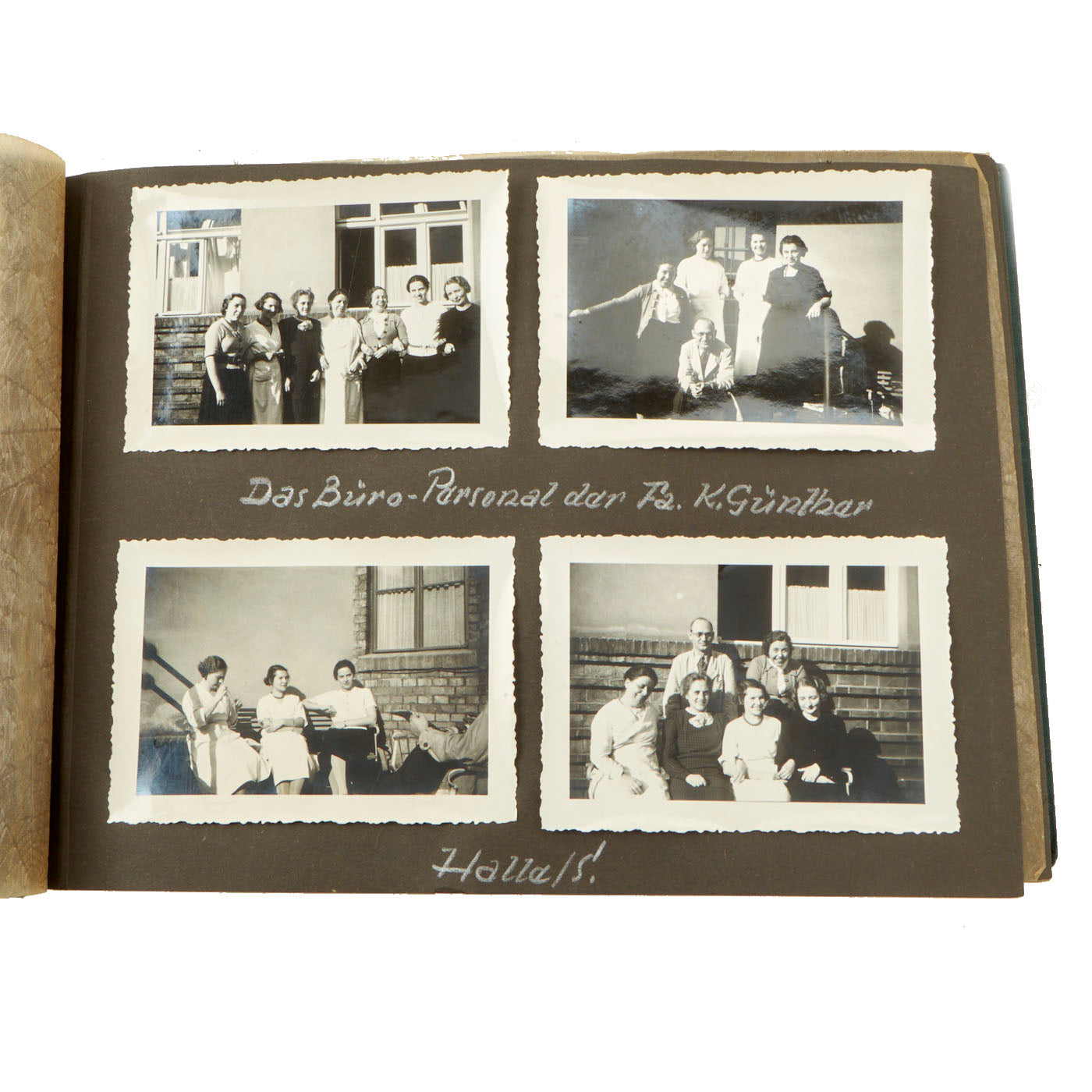 The first page appears to have the pictures of German high command removed and overall there are 30 pages in total, with "onion skin" separators to keep the pages from sticking together. There are over 170 personal photographs of various sizes, showing all manner of scenes and locations. Most of the pictures appear to be from a wedding and a honeymoon/vacation. There are various military pictures dating from 1937-1942 but mostly show homefront life and leave. Most photos seem to be held in by the original adhesive, though it is possible that they were reattached over the years.