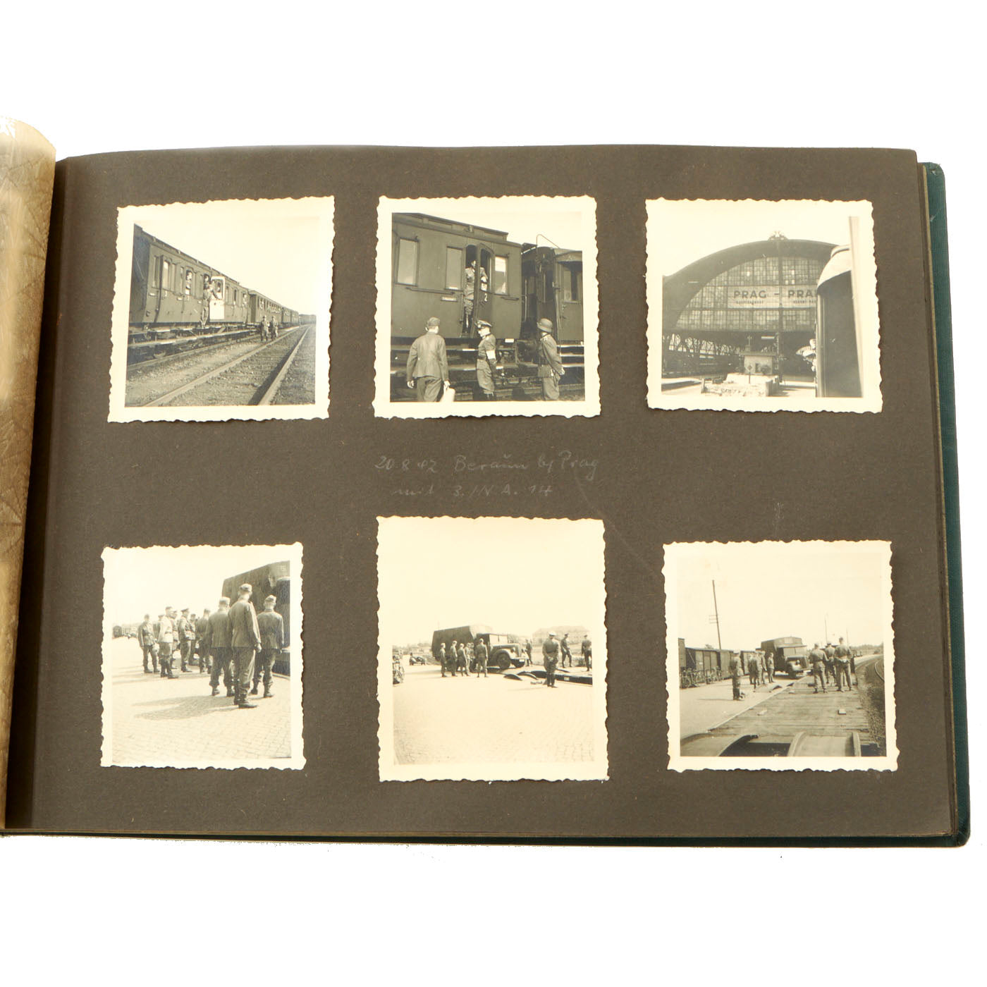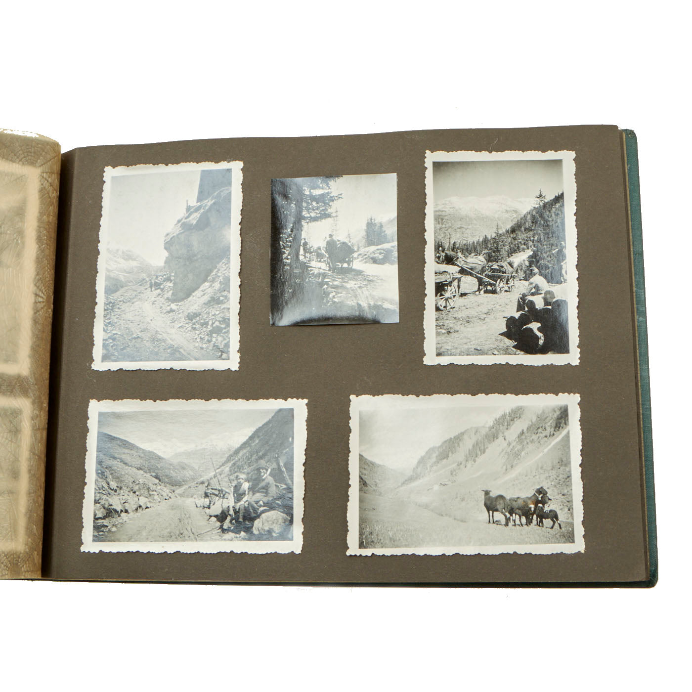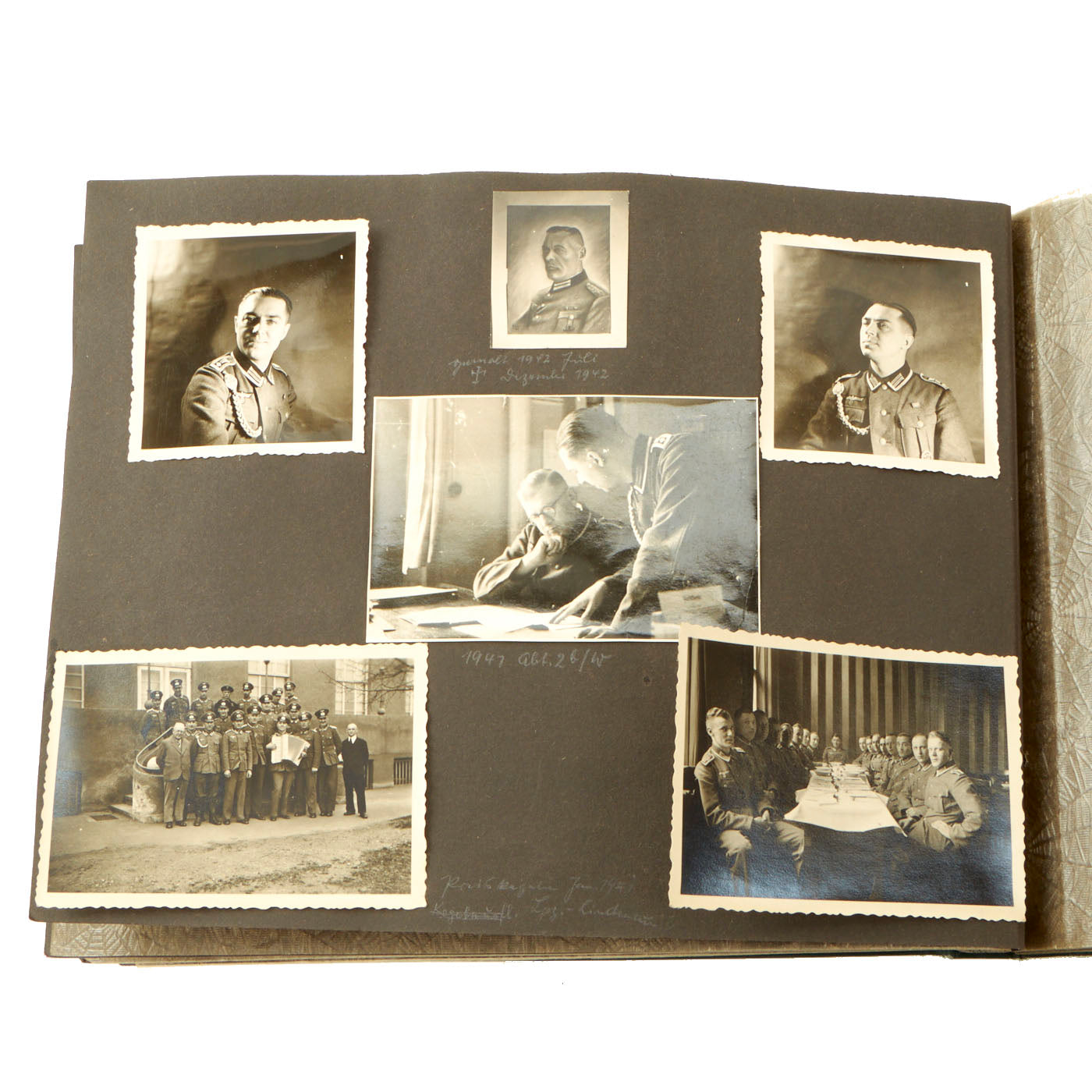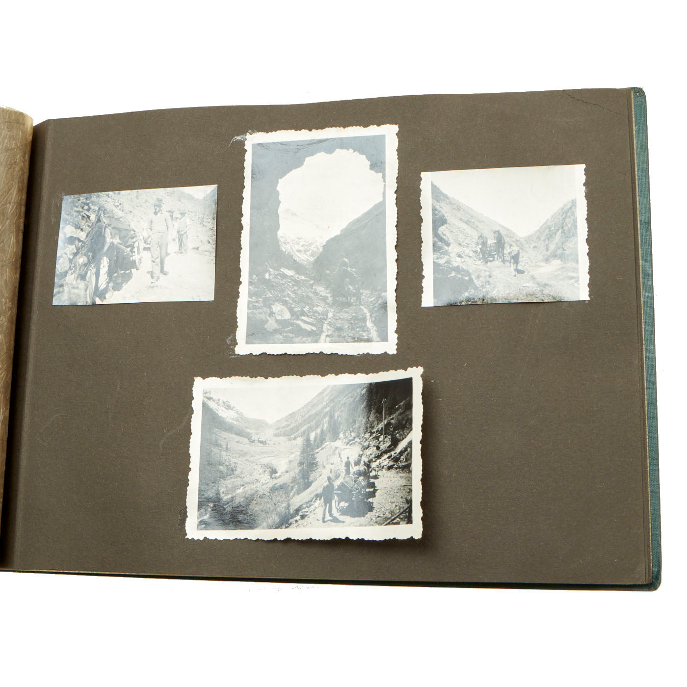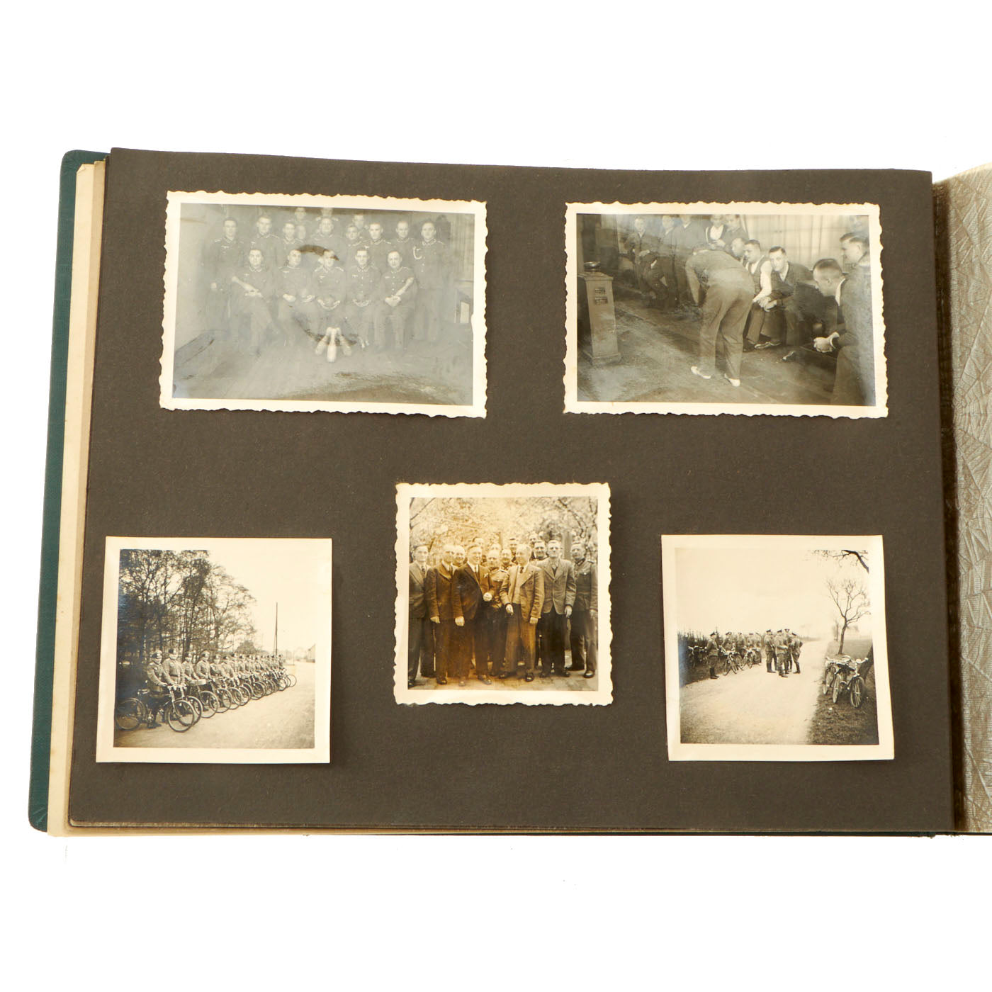 The first page appears to have the pictures of German high command removed and overall there are 30 pages in total, with "onion skin" separators to keep the pages from sticking together. There are over 170 personal photographs of various sizes, showing all manner of scenes and locations. Most of the pictures appear to be from a wedding and a honeymoon/vacation. There are various military pictures dating from 1937-1942 but mostly show homefront life and leave. Most photos seem to be held in by the original adhesive, though it is possible that they were reattached over the years.