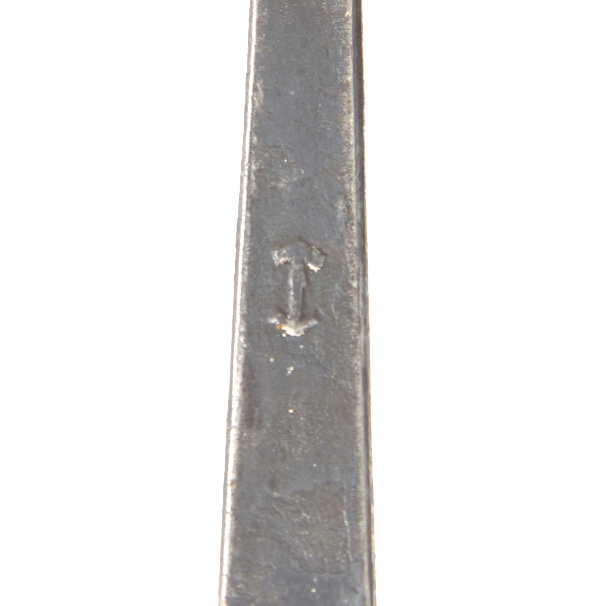 Per customer requests, we always check the inside of the guard on these daggers, and the cross guard is marked with a large letter H and a mold marking on the other side. The pommel guard is marked with F and B on opposite sides of the central hole. We assume that this dagger was made during the transitional period, or had some parts replaced when it was upgraded to an officer dagger. We also noticed that there is a symbol on the "rat tail" tang of the blade, which we do not recognize.