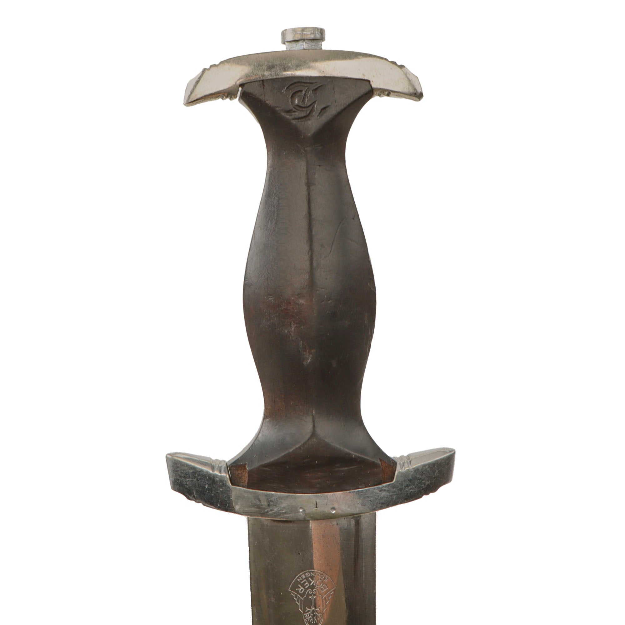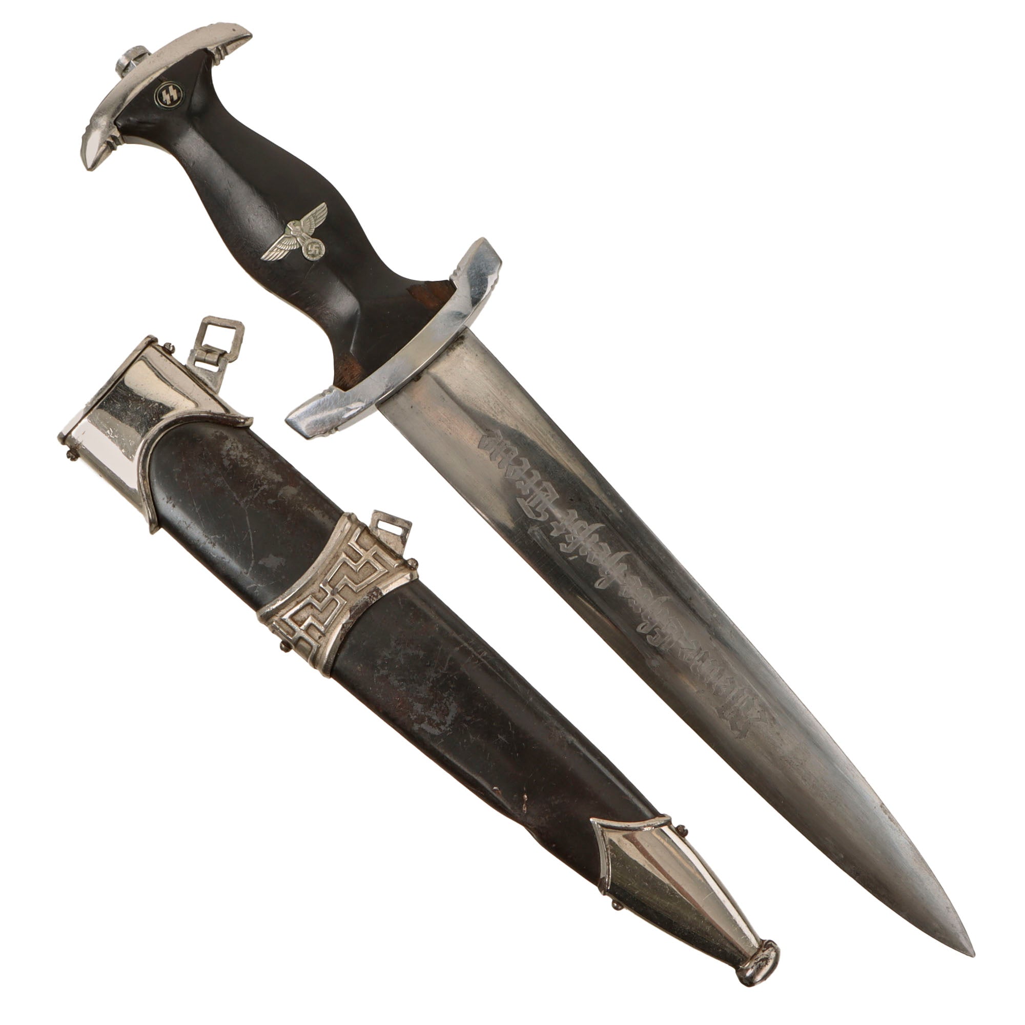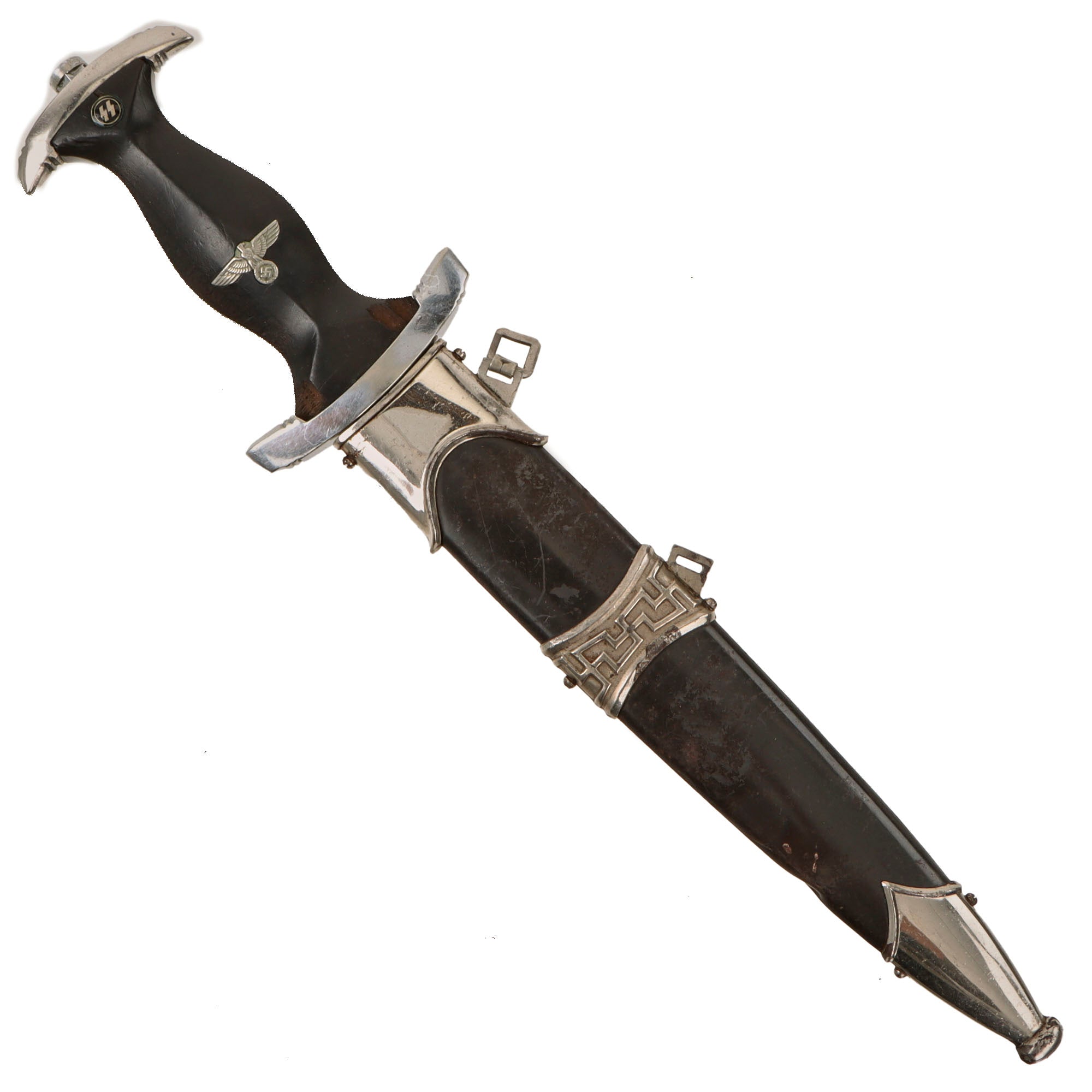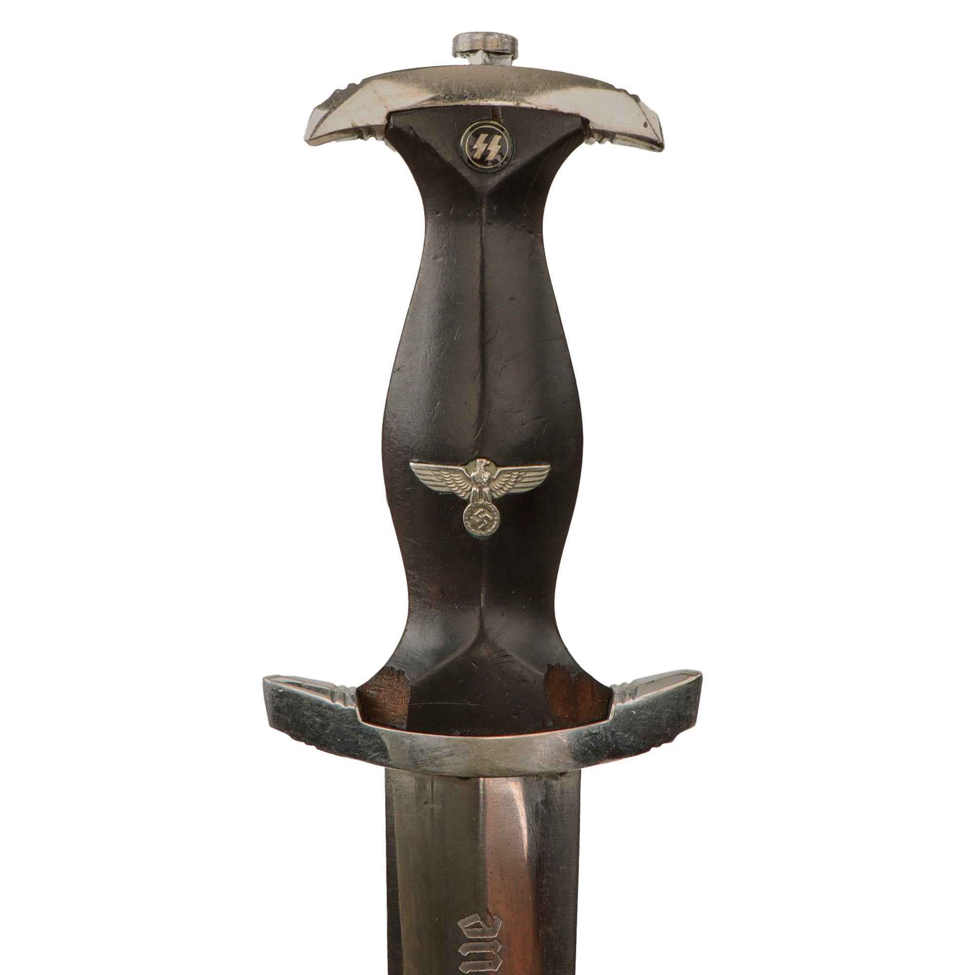 The SS Dienstdolch (service dagger), also called the SS Ehrendolch (honor dagger), was introduced in 1933. Early on, members of the SS were awarded their daggers during a ceremony at the Feldherrnhalle Memorial in Munich. The annual ritual, charged with mysticism and meant to evoke the traditions of medieval Teutonic knights, was held on 9 November, the date of the unsuccessful Munich Putsch of 1923. Both officers and enlisted men wore the identical dagger until 1936. After this time, only enlisted men wore the M1933 dagger. After this time, only enlisted men wore the M1933 dagger, while officers and NCOs who had served 1933 and prior would receive the "Chained" version that we have here. These are quite a bit more rare and desirable than the Enlisted version.