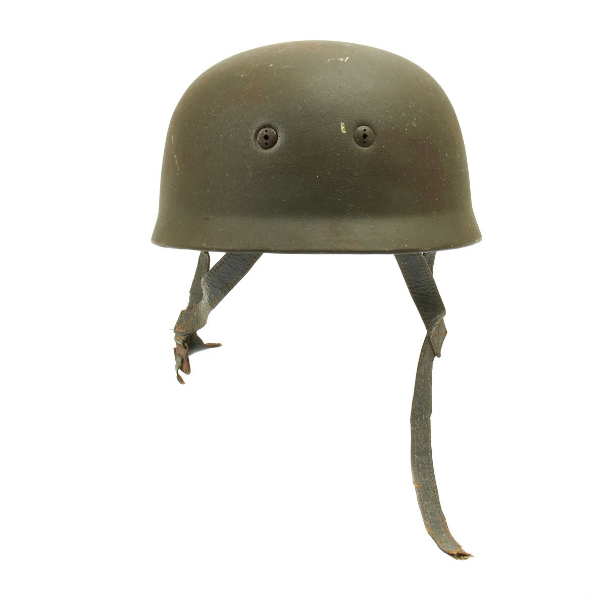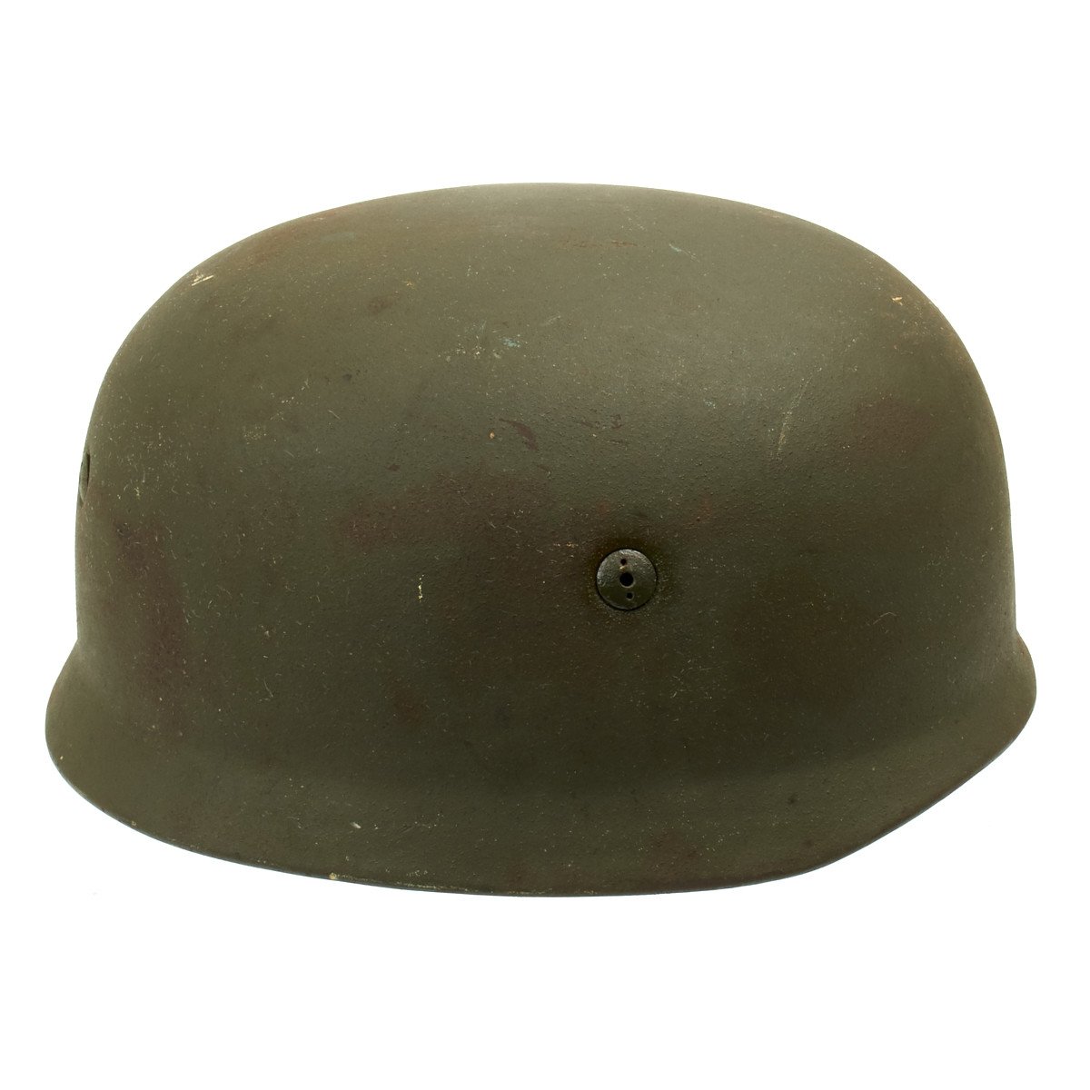 Original Item: Only One Available. This wonderful Fallschirmjäger helmet retains 95% of its originally applied, dark green, rough texture combat finish. It is in near excellent condition with no rust, damage or dents. This example has a decal that is excellent, remaining 95% intact.