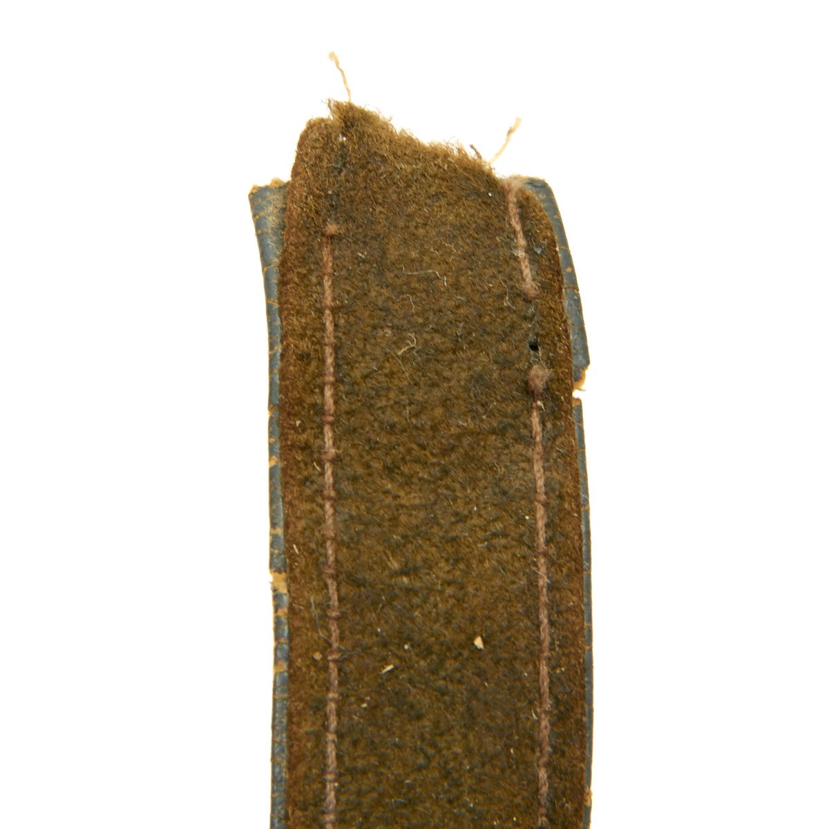The harness shows some wear and minor discoloration from age and one strap has been broken at the very end. The buckle is the wartime example (some moderate surface rust).