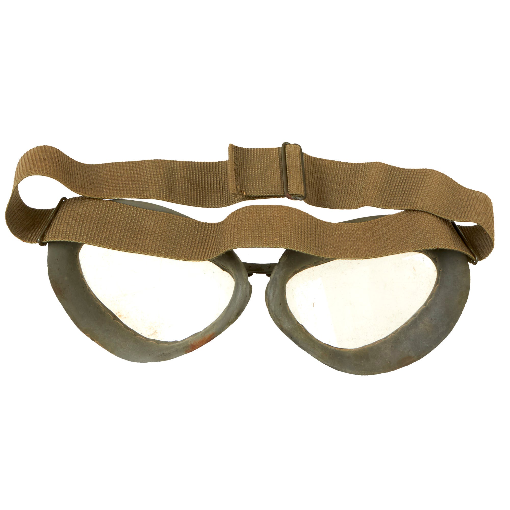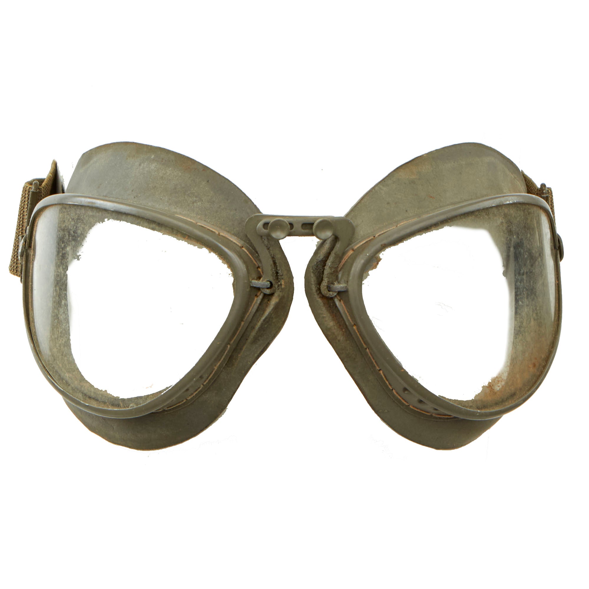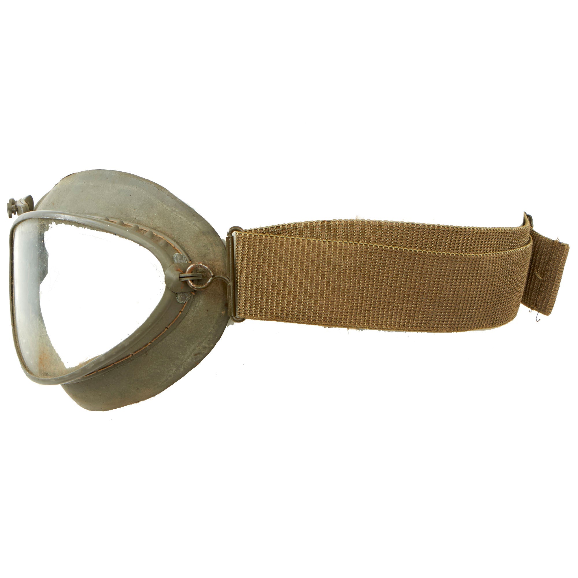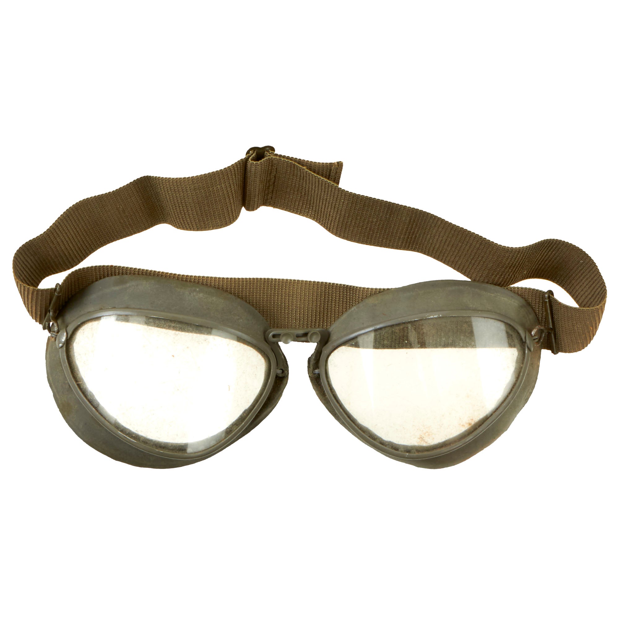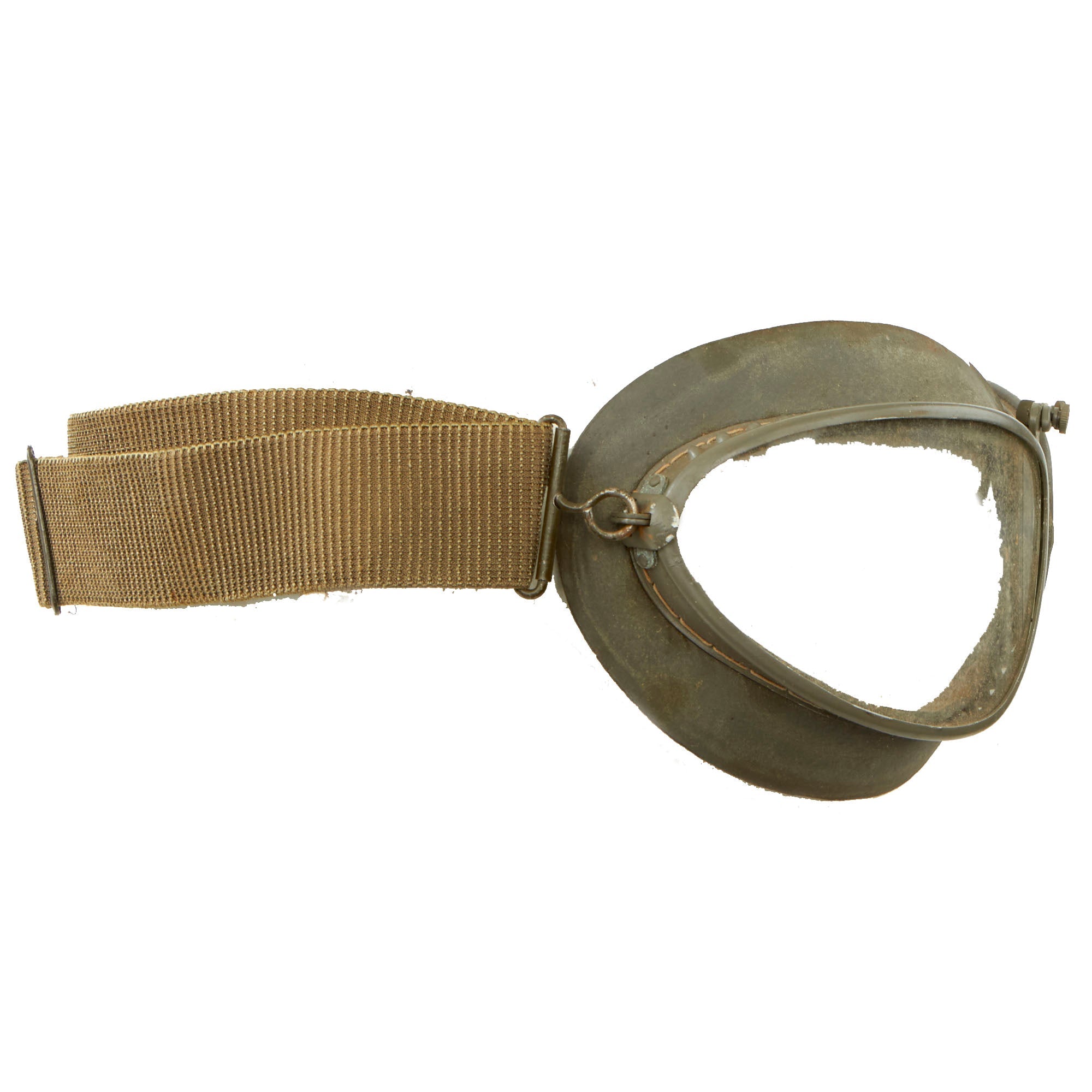Original Item: Only One Available. With the advent of military aircraft in WWI most of the early pilots soon discovered that appropriate protective flight goggles were a necessity due to the cold, sun glare and the all too frequent occurrence of oil leaking into the slipstream and covering the pilot. Originally the German military was caught unprepared and no specific protective goggles for pilots were available which resulted in the pilots utilizing commercially produced or captured enemy protective goggles. Early in the war the Carl Zeiss optics firm of Jena developed specific protective flight goggles that became the standard pattern for other manufacturers. Further improvements and refinements of assorted protective flight goggles continued in the inter-war years and by the start of WWII there were no fewer then nine types of protective flight goggles available and nine main manufacturers including, Carl Zeiss, Ernst Leitz, Phillip Winter, O.W. Wagner, Nitsche & Günther, Knothe, Cellowaro, Bauer, Uvex and Auer.