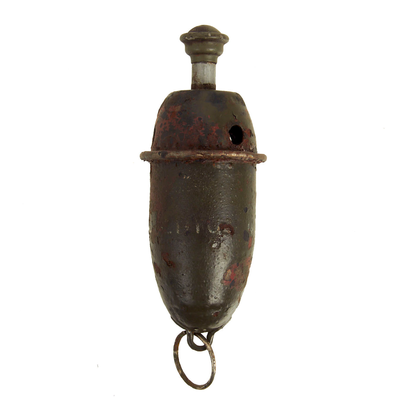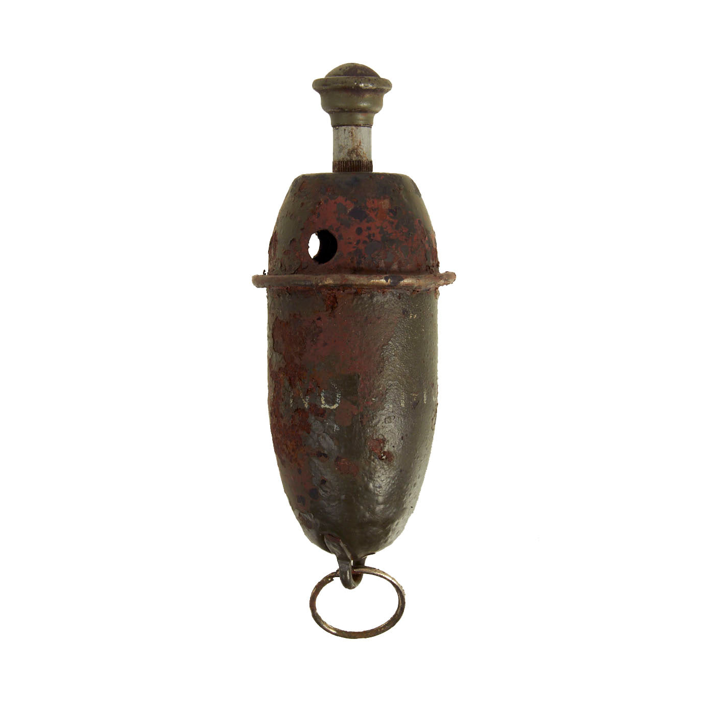 This example offered in very good condition is correct in all aspects but does look to have been repainted and does have paint chipping and oxidation present. It still has the original hanging ring on the bottom.