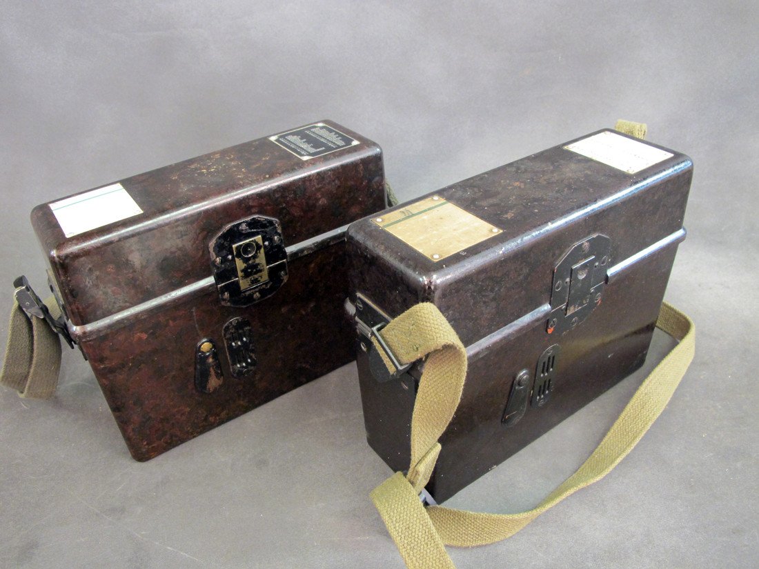 Original Item: First introduced as the Model 1933 these field communication telephones were produced virtually unchanged up until the late 1960s. Each phone comes in it's own bakelite case and operates with the use of two 1.5 volt Batteries (D-cell) and a fold out crank handle to initiate a ring on the receiving end.