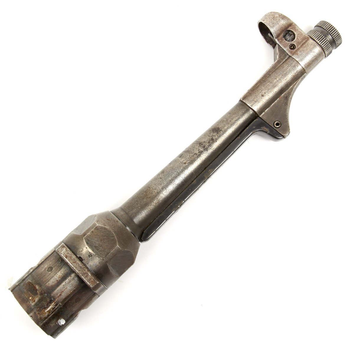Offered in very good condition. All internal parts such as a the bolt and recoil assembly are included along with a live (not-demilled) barrel. IMA has been very fortunate in finding this highly sought after genuine WW2 German MP 40 parts set offered with totally original bakelite stock and functional extending butt stock, this is the real thing that will only appreciate in value as time passes. As you may know, live barrels are banned from importation to the USA so these have become as rare as hens teeth. Original markings maintained making this a keystone item for any serious WW2 collection.