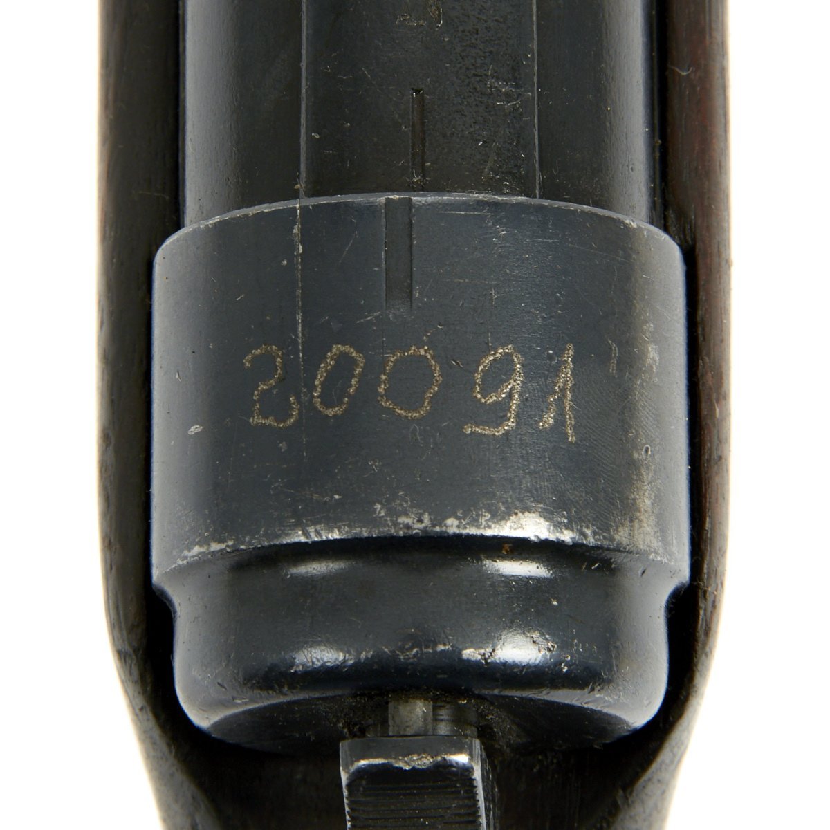The top of the original receiver portion still bears the original markings: