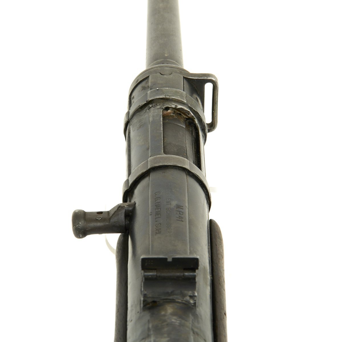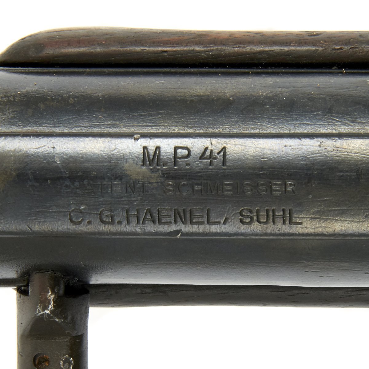 The MP-41 (M.P. 41, MP 41) submachine gun was developed by Hugo Schmeisser, son of the Louis Schmeisser who developed the first practical machine gun, the MP-18. At the time of development of that MP-41, in 1941, the company C.G.Haenel, at which Schmeisser was chief designer, manufactured MP-40 submachine guns for the German army. It is possible that Schmeisser decided to develop a sub machine gun which was better suited for infantry use than the MP-40. For this reason, he combined the receiver, action and magazine of MP-40 with the wooden stock and selective-fire mechanism of MP-28. Haenel company produced more than few MP-41 submachine guns, which were mostly purchased by SS troops, which had their own supply chains. However, late in 1941, the Erma company filed a patent infringement lawsuit against Haenel, and as a result, Haenel company was forced to cease production of the MP-41. Only 26,700 MP-41 pattern guns were ever made, and nearly all were issued to SS, SD and police troops.
