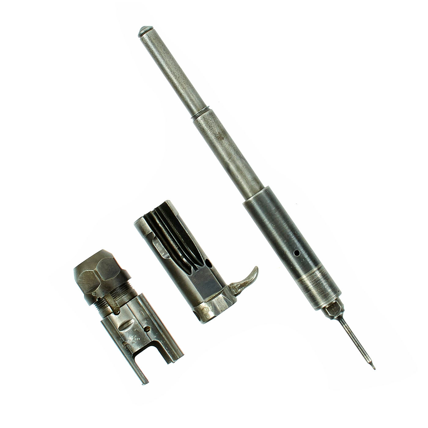 Original Item: Only One Available. Taken from an MP 38 Parts Set that was built into a Display Gun and sold separately. This example comes complete with its extractor and hook cocking handle, as well as the telescoping recoil assembly topped with the firing pin. Condition is very good, with a bit of light rust in areas, and the usual finish wear from use. There is also a serial number lightly engraved into the bolt.