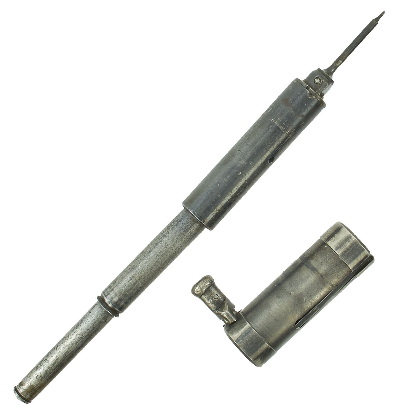 Original Item: Only One Available. Taken from an MP 40 Parts Set that was built into a Display Gun and sold separately. This example comes complete with its extractor and push/pull cocking handle, as well as the telescoping recoil assembly topped with the firing pin. Condition is very good, with a bit of light rust in areas. The Push-Pull safety handle is fully functional and firmly attached to the bolt. The bolt, firing pin, and recoil assembly all bear Waffenamt proofs.