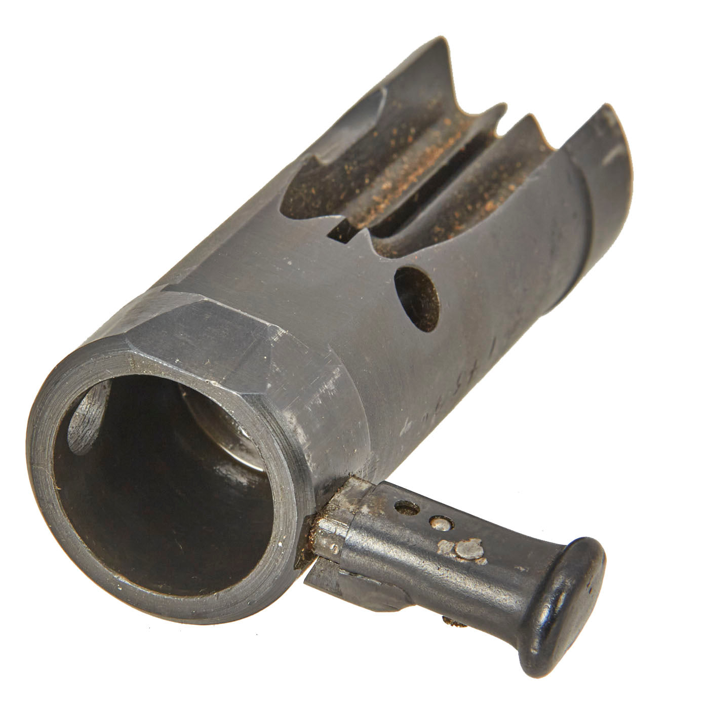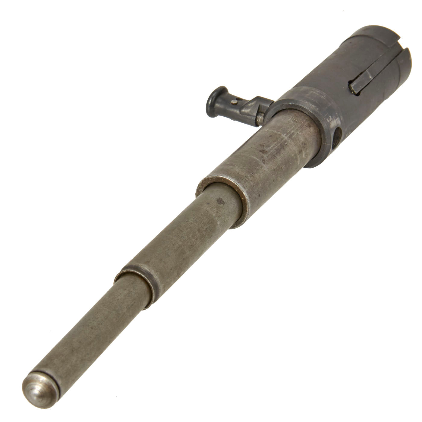 Original Item: Only One Available. Taken from an MP 40 Parts Set that was built into a Display Gun and sold separately. This example comes complete with its extractor and push/pull cocking handle, as well as the telescoping recoil assembly topped with the firing pin. Condition is very good, and it has just some small areas of oxidation and finish loss on the bolt, and a lovely worn patina on the recoil assembly. The main body of the bolt is marked with serial number 1439 c. The bolt body, firing pin holder, and firing pin all bear Waffenamt proofs and other markings, making for an excellent research opportunity.