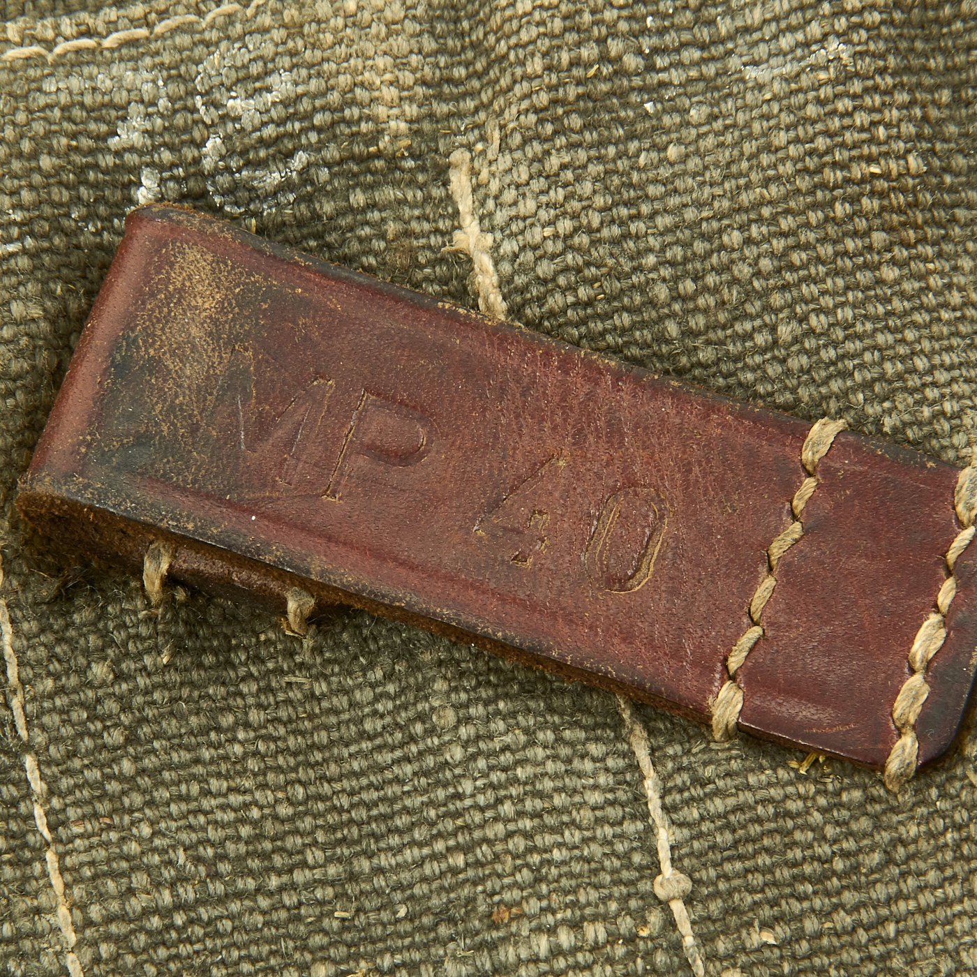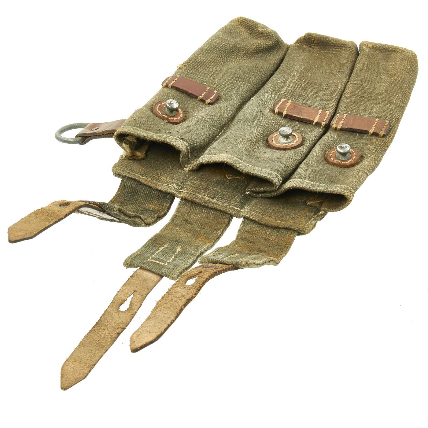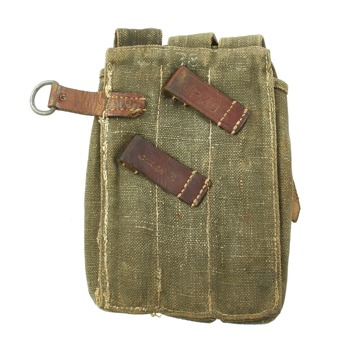 Original Item: Only One Available. Nice early MP38/40 pouch in web construction. Constructed from green blended webbing material as seen on other period German WW2 fieldgear. For this maker the rectangular stitching is a known feature. Stitching is clean and solid. The back of the pouch is nicely ink stamped across the top MP. 40 along with maker code cox and 1944 date stamp. Overall very good to excellent condition, with no defects.