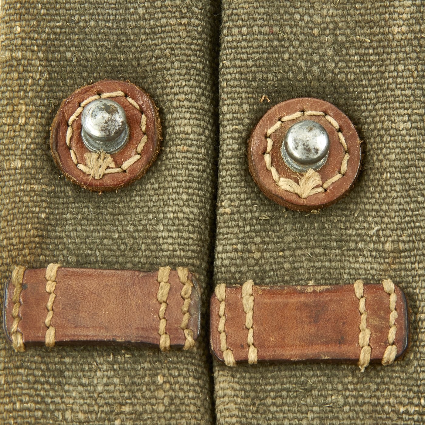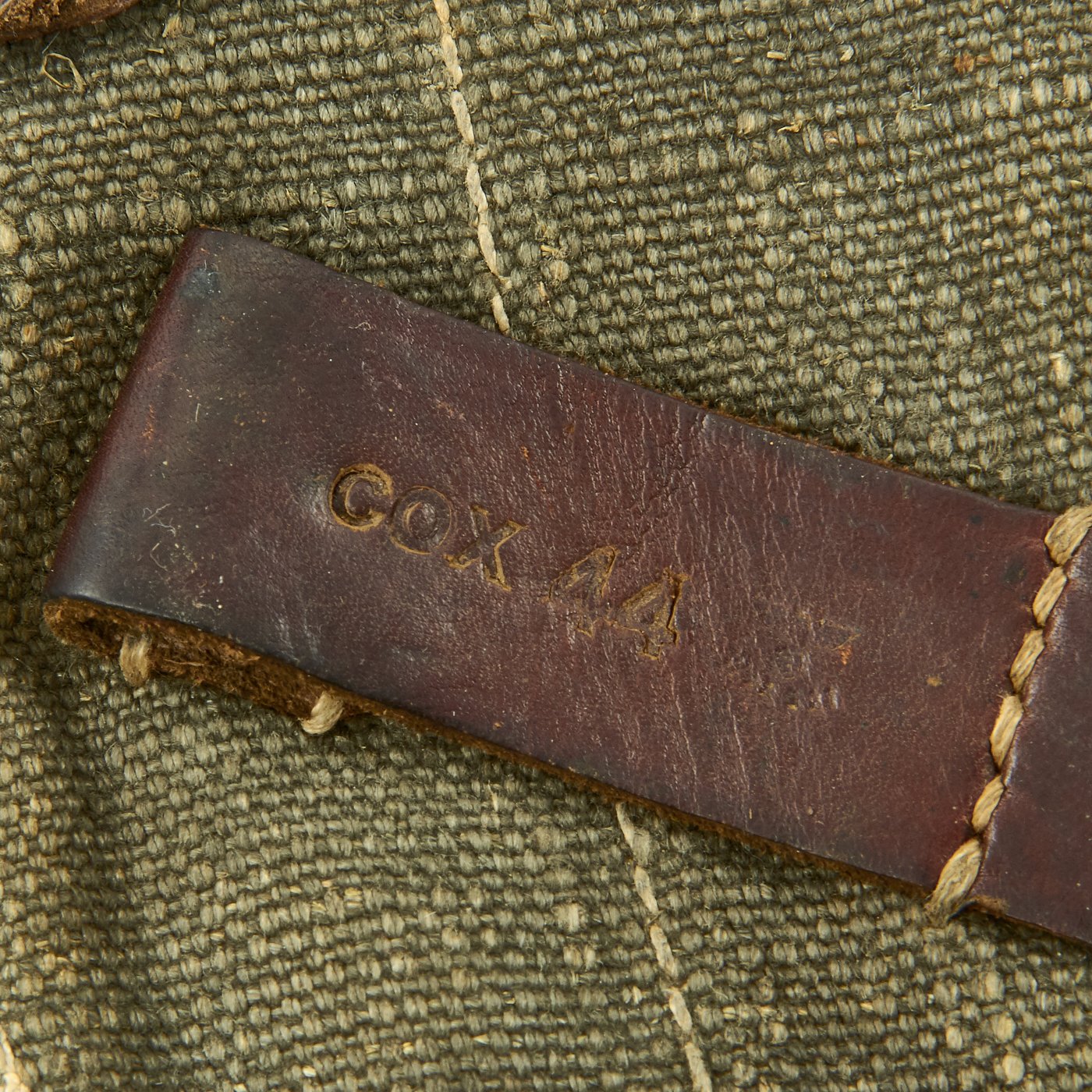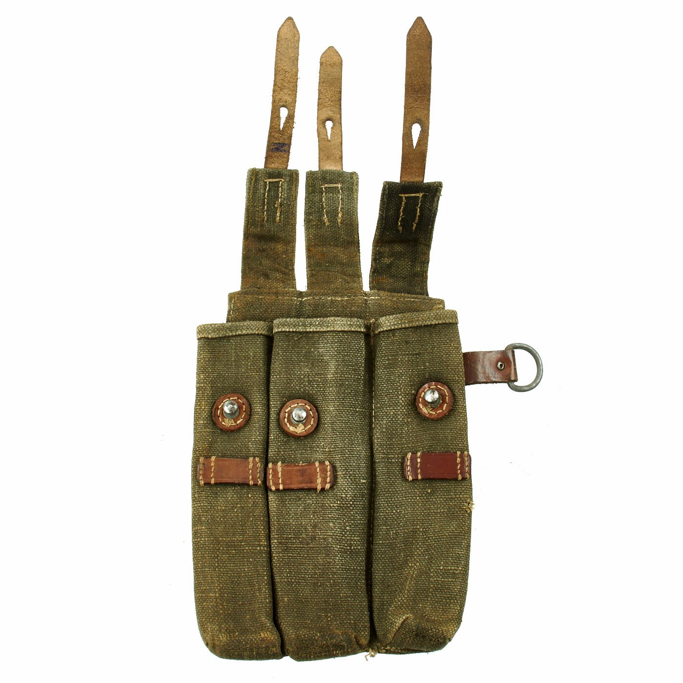 Original Item: Only One Available. Nice early MP38/40 pouch in web construction. Constructed from green blended webbing material as seen on other period German WW2 fieldgear. For this maker the rectangular stitching is a known feature. Stitching is clean and solid. The back of the pouch is nicely ink stamped across the top MP. 40 along with maker code cox and 1944 date stamp. Overall very good to excellent condition, with no defects.