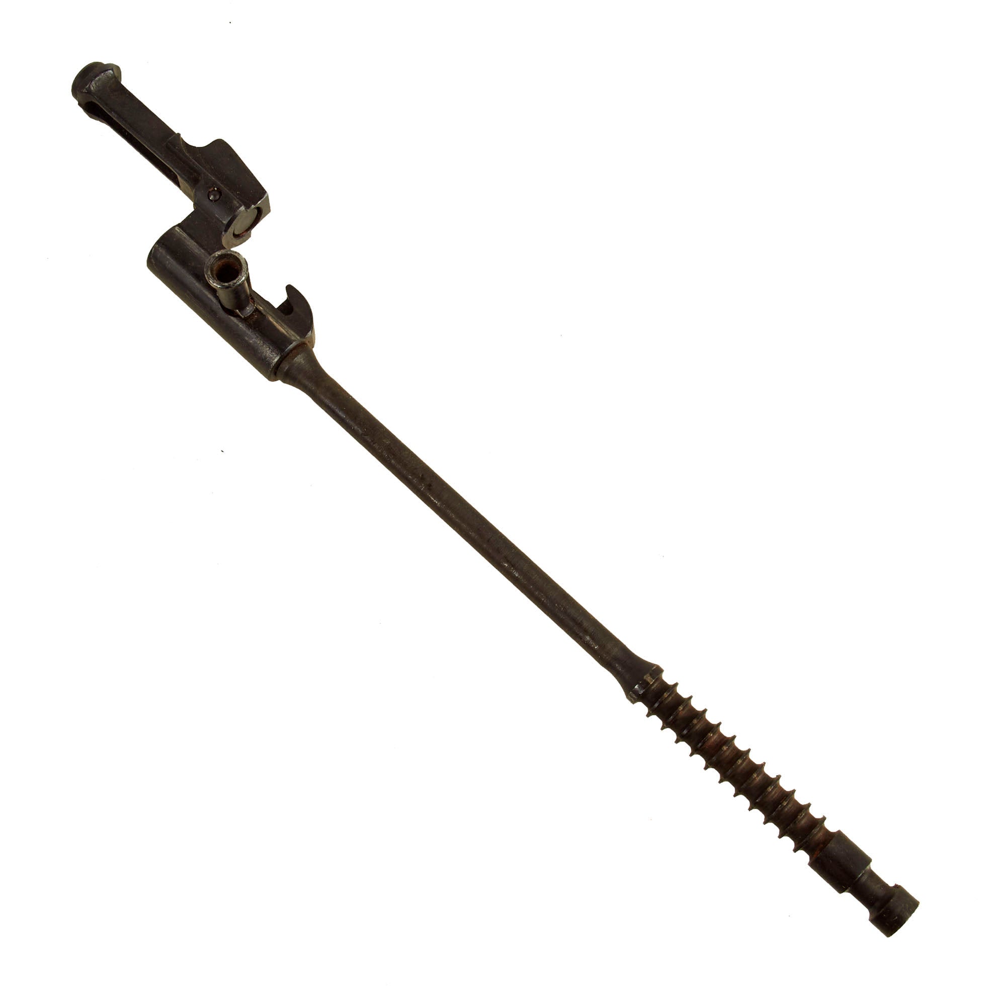 The underside of the barrel bushing is marked with German three letter maker code cos, for Merz-Werke Gebr. Merz, in Frankfurt am Main, Rheinland. This maker manufactured many small arms components during the war, as well as complete guns. The bas regulator assembly is marked ce, for the famous J.P. Sauer und Sohn, Waffenfabrik, located in Suhl, Thuringia. It has the correct Eagle / 37 inspection stamp on it. The stock cup is marked with serial number 332 al, along with WaA135 and maker code byf for manufacture by the legendary Mauser Werke AG factory in Oberndorf am Neckar. This is the correct inspector mark for this maker code as well.