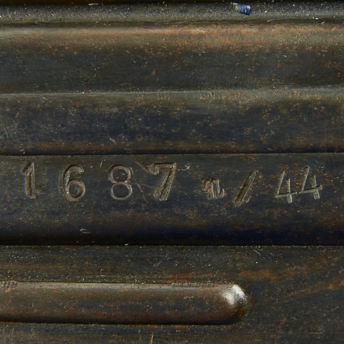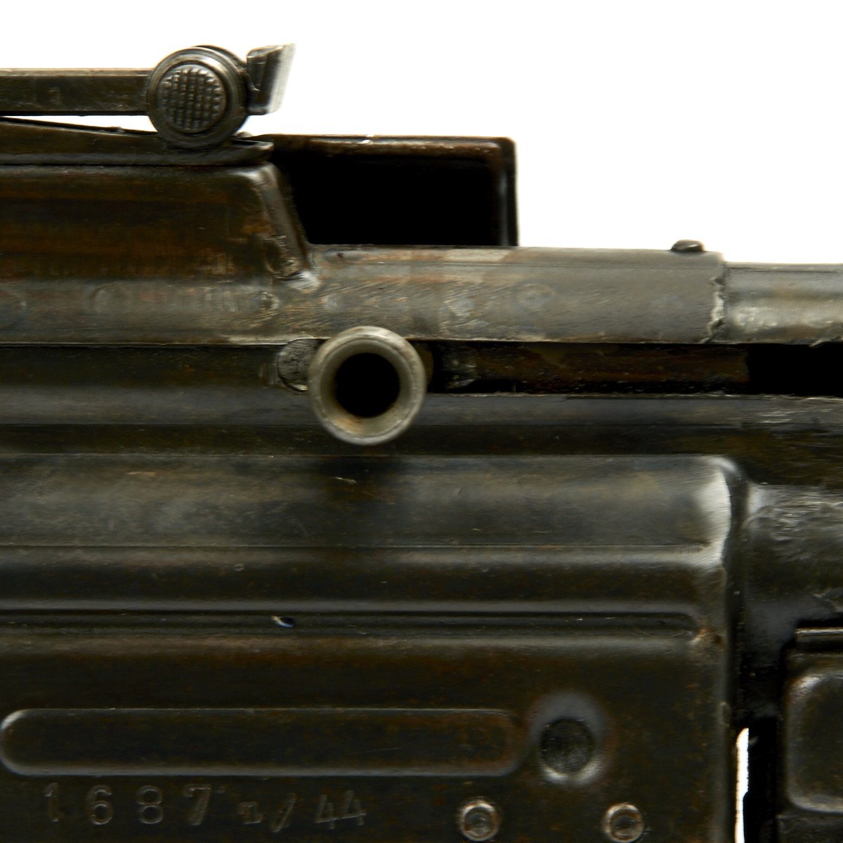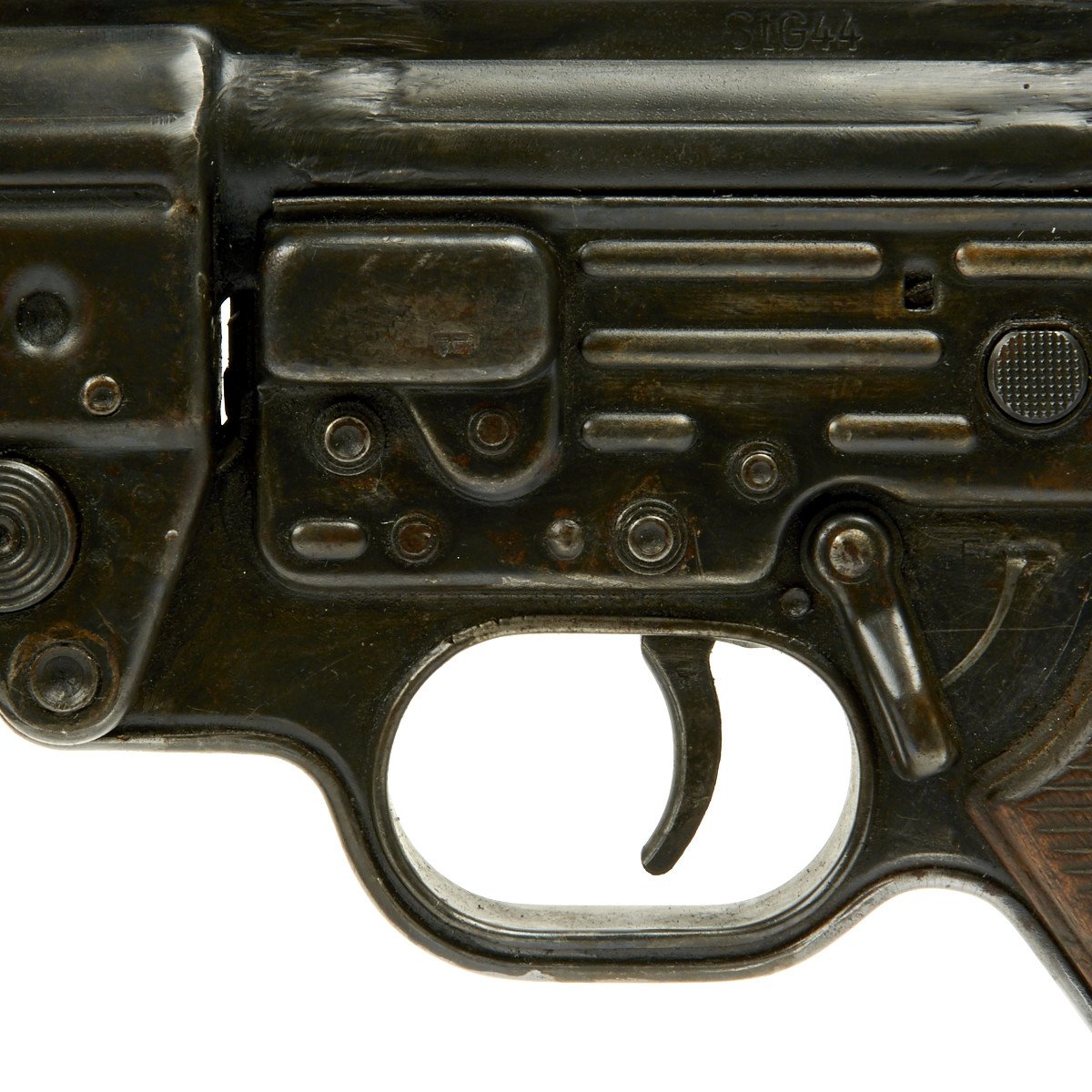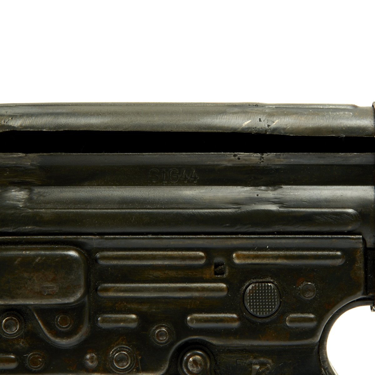 This sample is in excellent condition bearing original serial number 1687, multiple Waffenamt Codes and is dated 1944! Both the receiver and trigger group have inspection stamps. Constructed by a precision-minded master-craftsman exclusively for IMA this display gun was built from an IMA all original WW2 era parts set that includes an original demilitarized receiver, and a non-functional reproduction metal MP44 magazine.