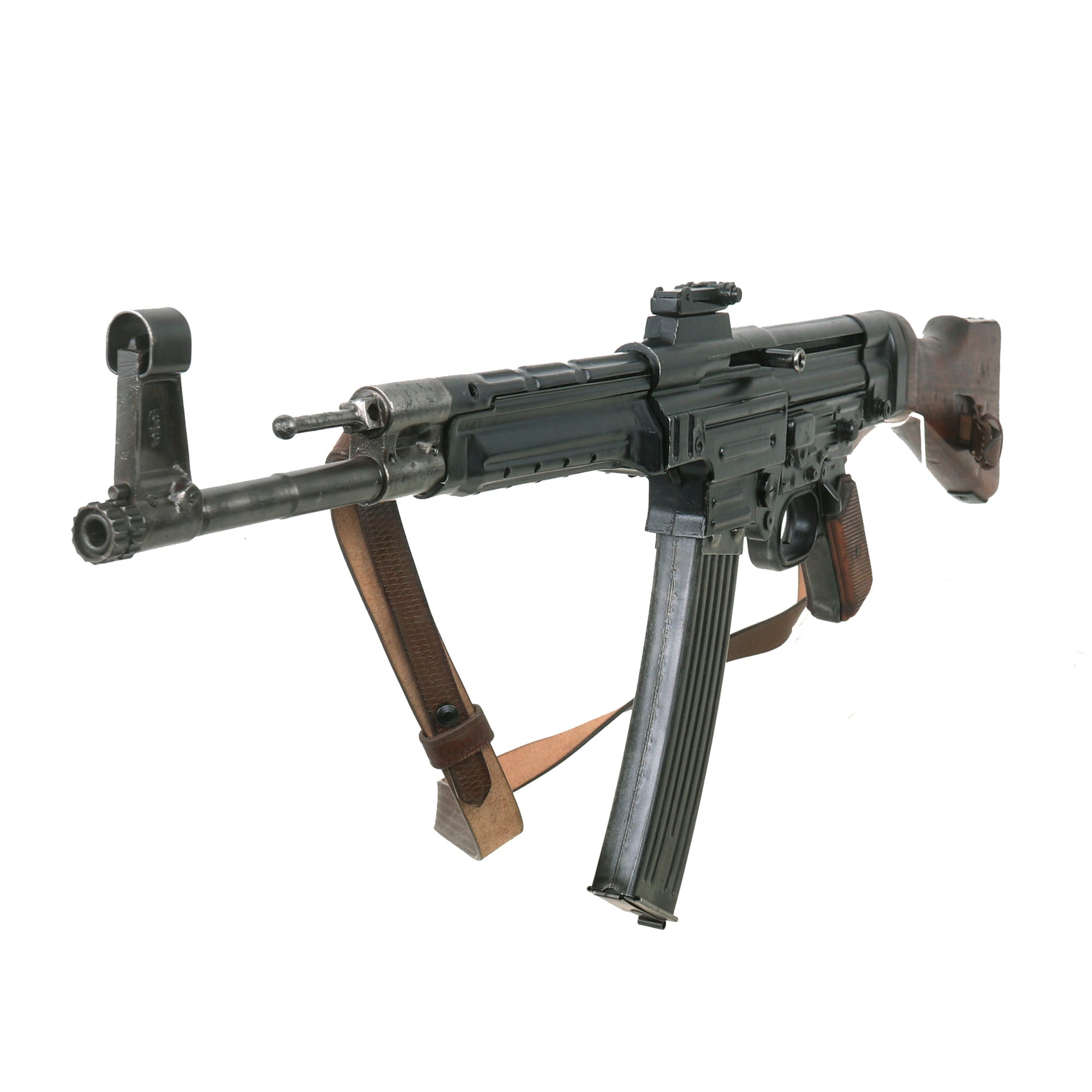 The live barrel, gas tube assembly, rear sight, trigger group, ejection port cover, and butt stock are completely original, and were secured to the display receiver & stock cup to make a BATF compliant non-firing inert display gun! Called the Sturmgewehr (Storm / Assault Rifle) 44, it was considered by many to be the original pattern for the modern assault rifle. The MP44 was developed to give German troops fighting in Russia a means of delivering large volumes of fire at the seemingly endless supply of Soviet troops.