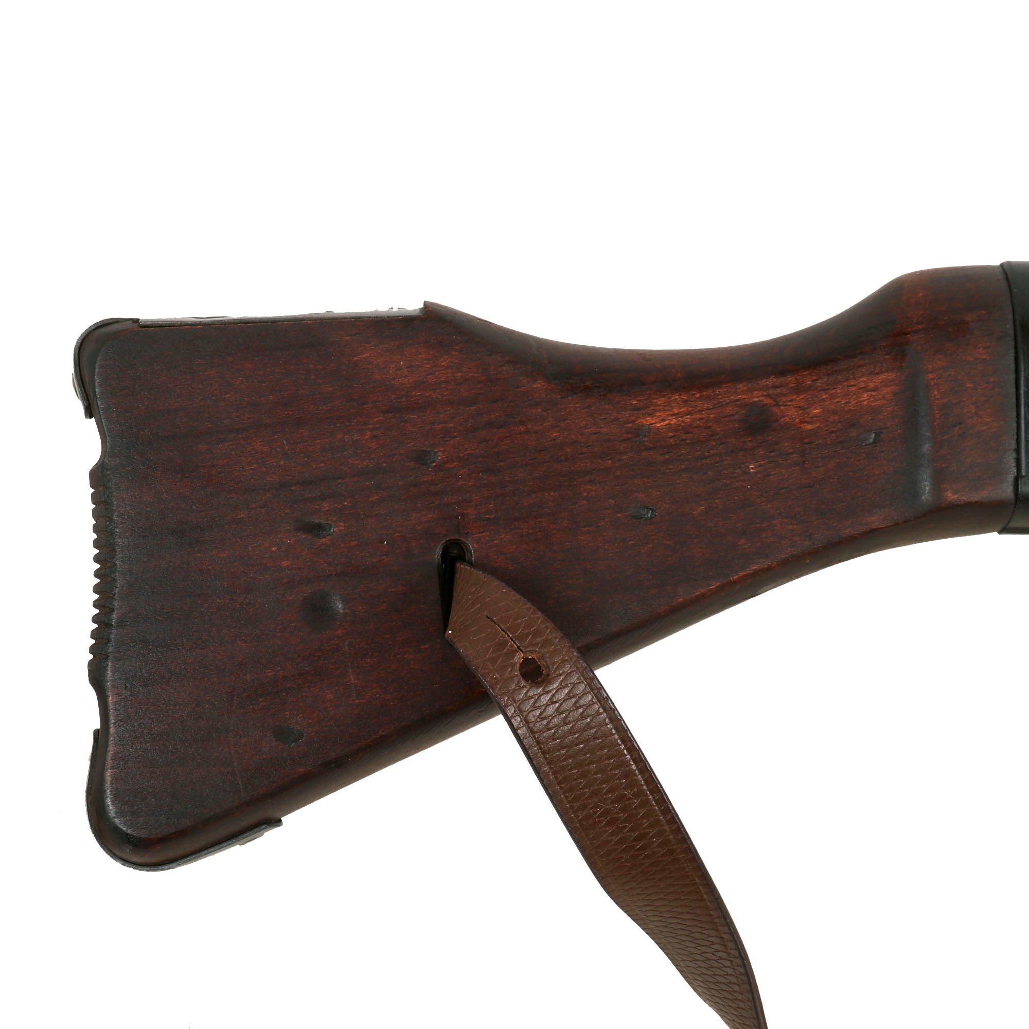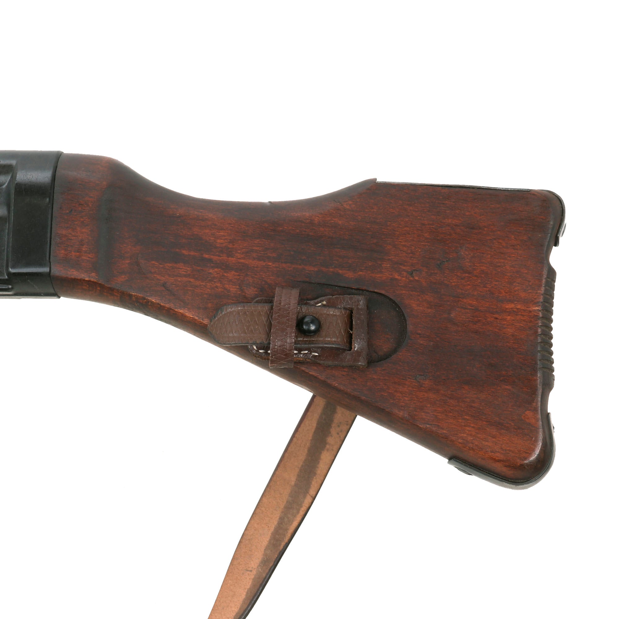 This sample is in excellent condition, bearing German maker codes and proof marks on many components. The trigger group of this example is not maker marked, but does have serial number 6823 marked on the rear under the butt stock cup. The left front side of the trigger group is also marked with Waffenamt WaA21, which is a known inspection stamp seen on MP44 / STG44 trigger groups, but has not been identified. The safety and fire selectors are still intact and movable, as is the trigger. The butt stock is an early solid wood version, not laminated, and has very nice hardware, with the finish well retained.