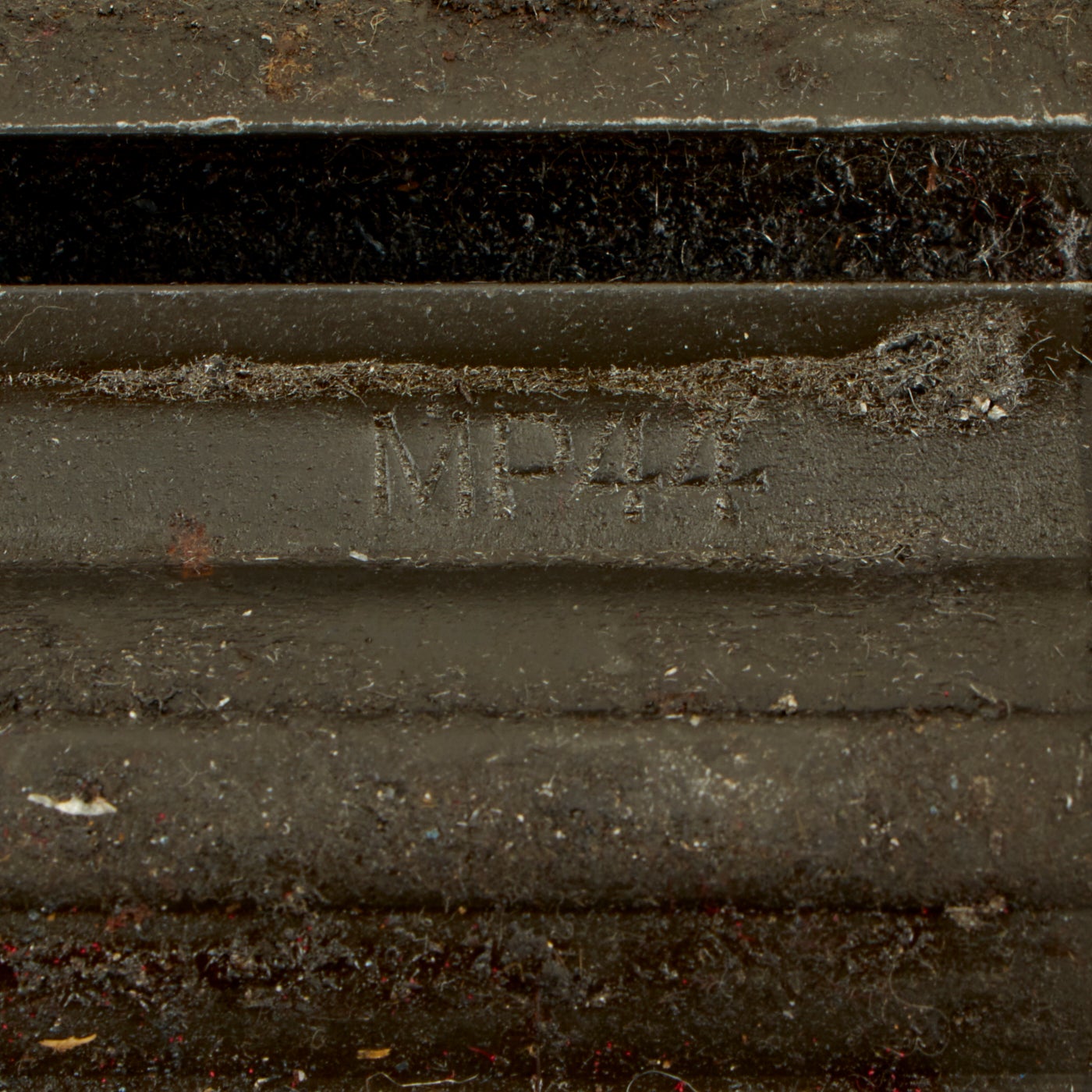 The third piece is about 2 3/4 inches long, and bears the correct MP44 marking, meaning it is from the second of three versions of the STG. It is from the portion of the receiver behind the magazine well, and is cut on both ends.