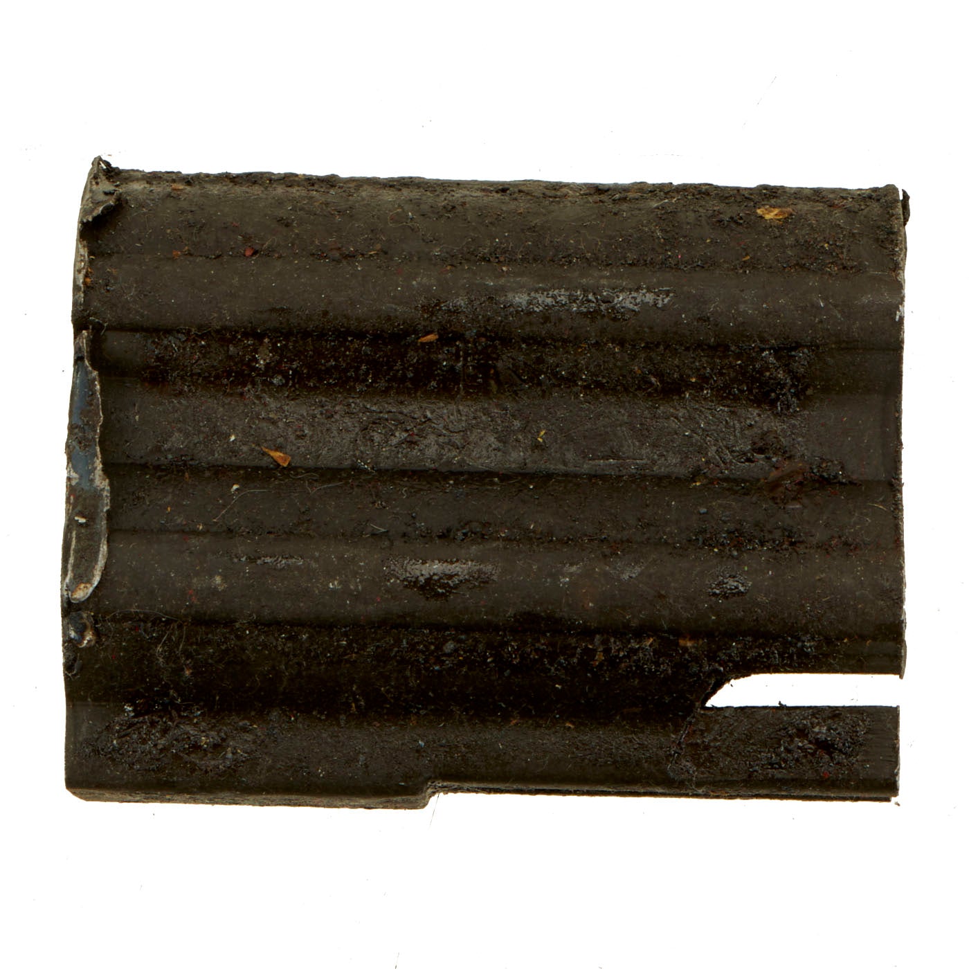 The first piece is from the muzzle end of the receiver, measuring about 1 1/2" long. It is marked with Waffenamt proofs on the bottom, as well as maker code swj, a code attributed to Steyr-Daimler-Puch AG, Werk Steyr, the legendary Austrian arms company. This famous maker manufactured all manner of Small Arms during the war, and used code "bnz" earlier in the war.