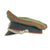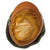 It is decorated with a well detailed aluminum eagle insignia on the peak and and an open cast zinc oak leaf and acorn wreath surrounding an metal tri-color cockade on the band. The silver wash on the eagle and cockade are well retained, while the wreath has faded to an oxidized patina. The red felt insert inside the cockade is present and vibrant. The chin strap is attached with the standard pebbled buttons on either side of the cap. The vulcanfibre visor has a smooth black leather-look upper, exhibiting minimal wear along the edge and is beige on the underside. The tan leather sweatband is in good supple condition and is unmarked on the inside, showing only light wear with some staining.