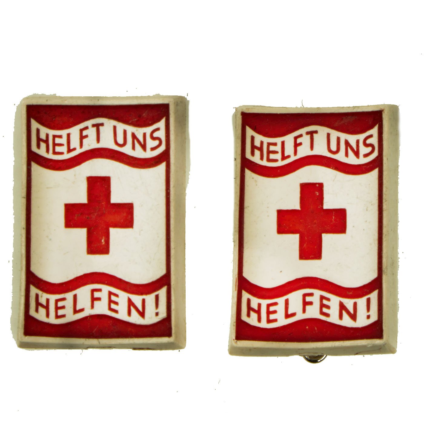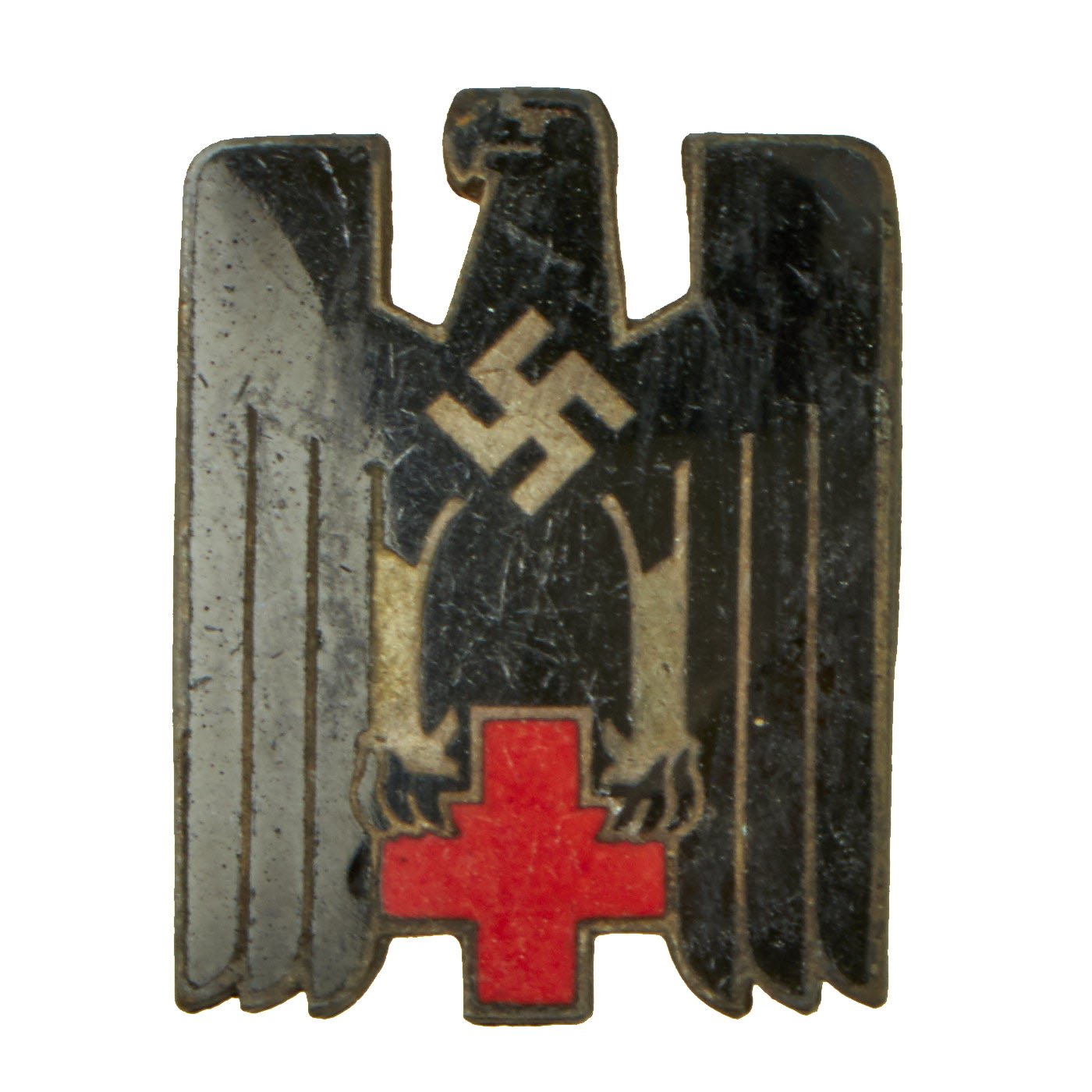 - One very good condition German DRK Red Cross Brooch. It is marked with Deutsches Rotes Kreuz Schwesternschaft ("German Red Cross Nurses League)" around the outside.