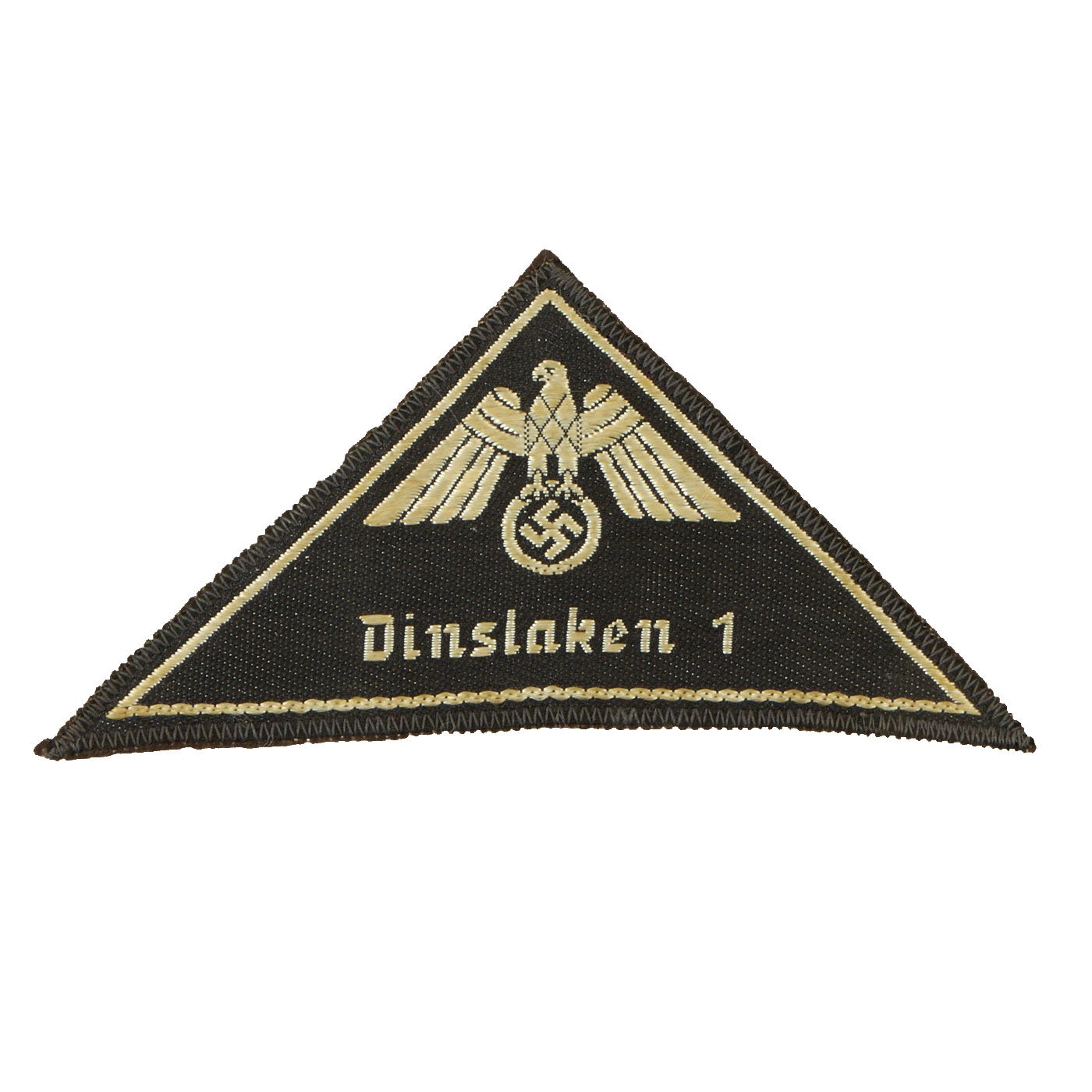 - One Triangular patch marked Dinslaken 1, most likely for a field hospital or station in the German town of Dinslaken.