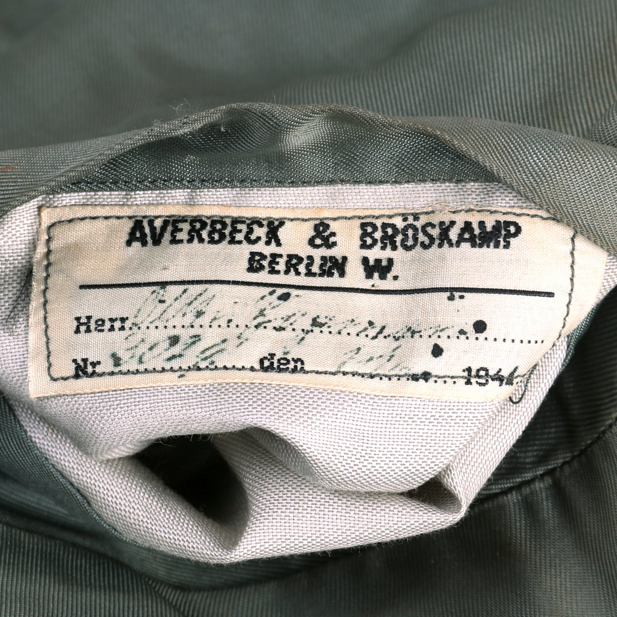 Original Items: Only One Set Available. This is a very nice early pattern German WWII Heer Army Infantry Hauptmann Officer's M-36 Tunic, complete with the correct trousers as well as some great awards. The set shows moderate wear from service and in very good display condition. Unlike many uniform sets that we see, this tunic still has an intact tailor label on the inside of the inner left chest pocket! It was made by AVERBECK & BRÖSKAMP BERLIN W. in 1941. There is also a name and possibly rank written on the tag, but unfortunately it is a bit faded and in German script, so we were not able to read it accurately, Someone more familiar with reading WWII era German script would probably be able to work it out, so we leave this is an excellent research opportunity.