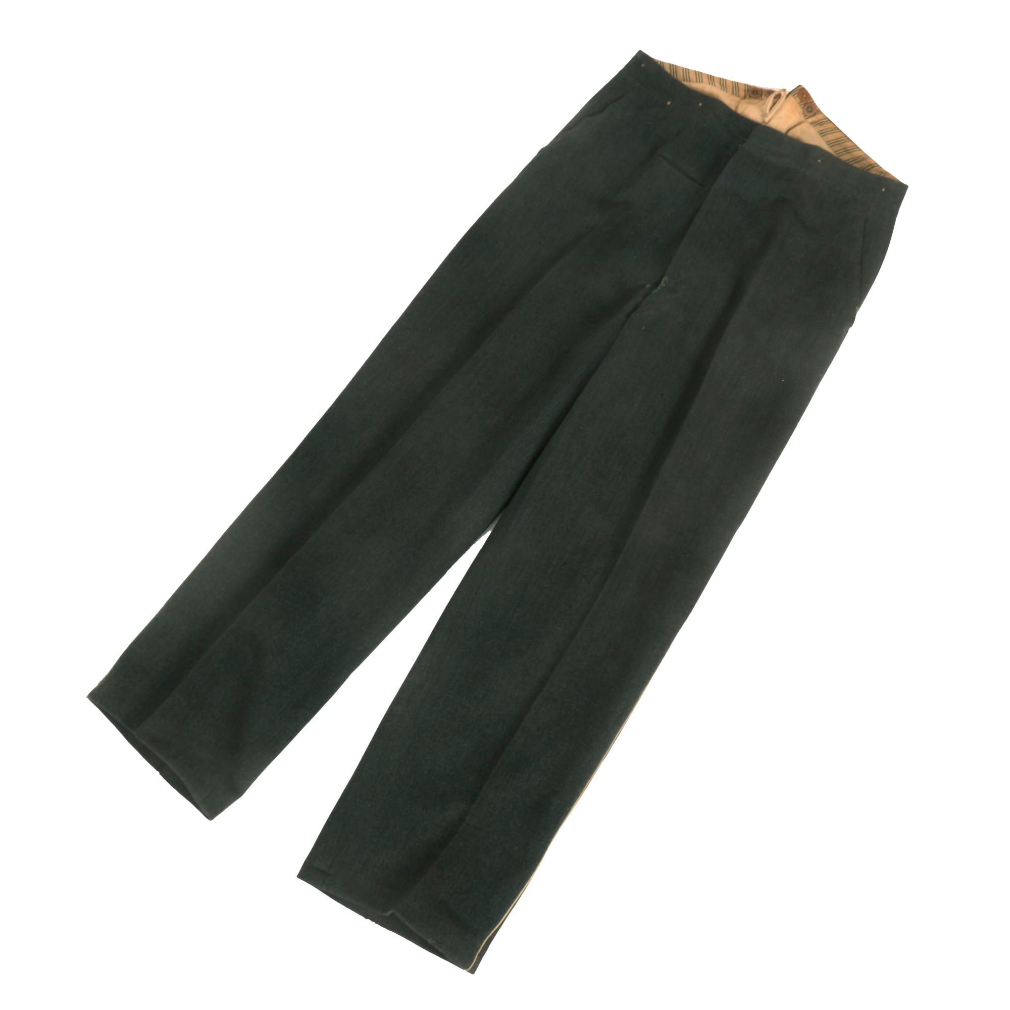 Along with the tunic and there is a lovely pair of officers trousers in the correct stone gray (steingrau) color, with white stripes on the side for infantry issue. They show moderate wear from service, matching the condition of the tunic. We can see some repairs in areas, and they have a great "been there" look to them.