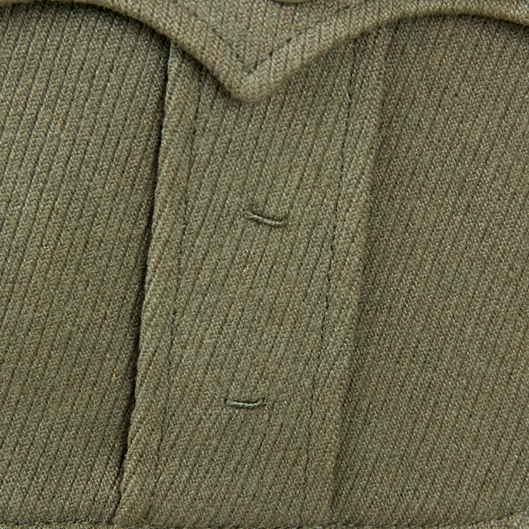 The buttons are sewn directly to the fabric, which does make them a bit more prone to tearing off, however these all look to be original. There are also two hook and loop collar securing fasteners, which are fully functional. The collar stiffener/protector is still intact and in place, and appears to be original to the uniform.