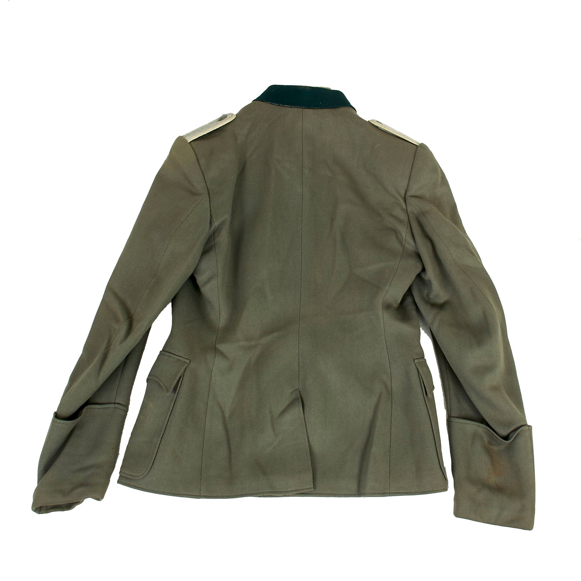 Overall condition is very good, showing wear and staining consistent with moderate service. We cannot see any major mothing or other issues with the uniform, just a few nips around the collar insignia and some scattered small holes and tears to the exterior. The litzen and shoulder boards also show some light wear. This is a uniform tunic that that saw moderate service during the war, and overall it displays very nicely.