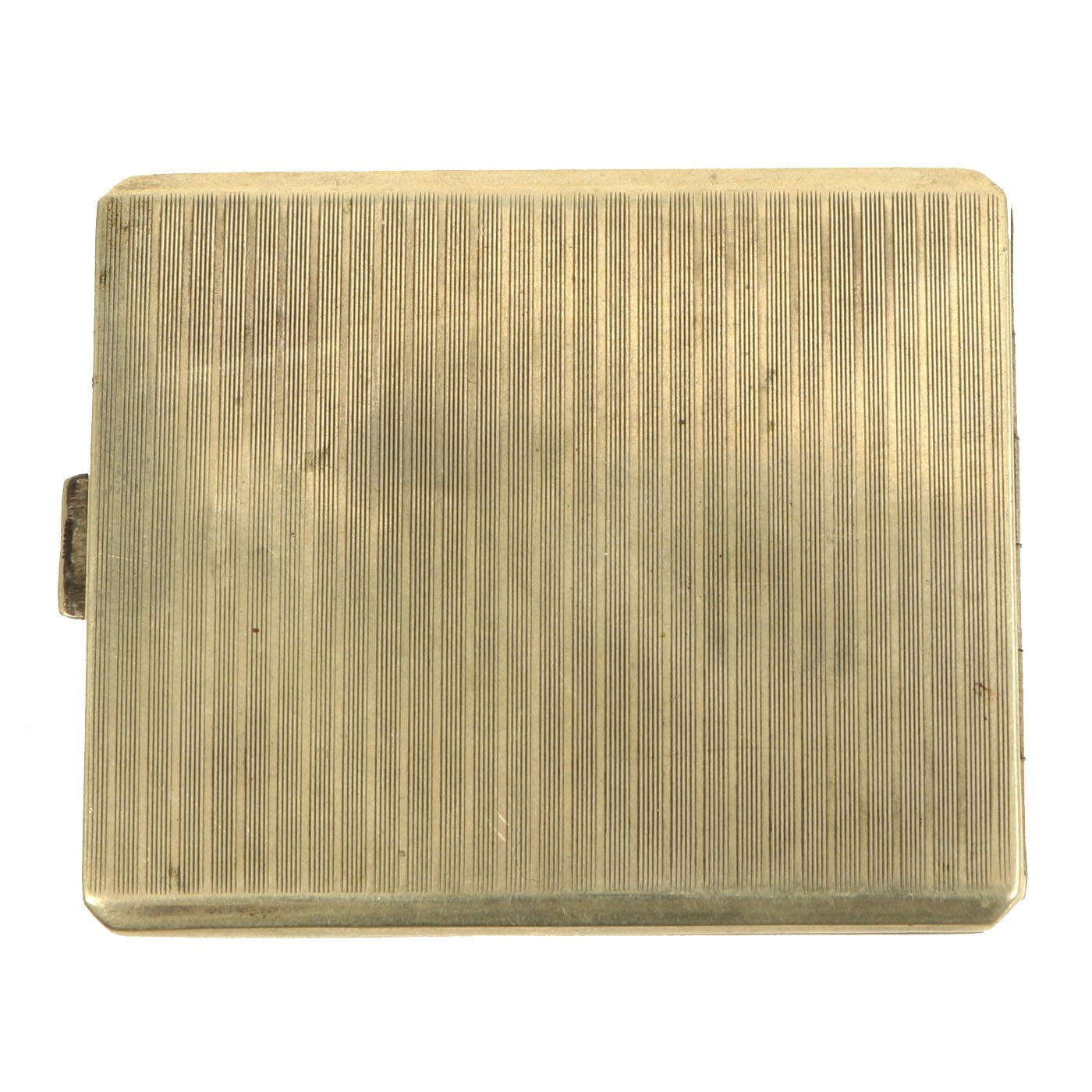 The case itself measures approximately 3 3/4" x 3" x 1/2", and the latch and hinge are fully functional. One of the cigarette retaining straps is still present, and in good condition, though it is not very elastic anymore. The interior of the case is marked with the German Reichsadler (State Eagle) over GES. GESCH., indicating that it was a trademarked design.