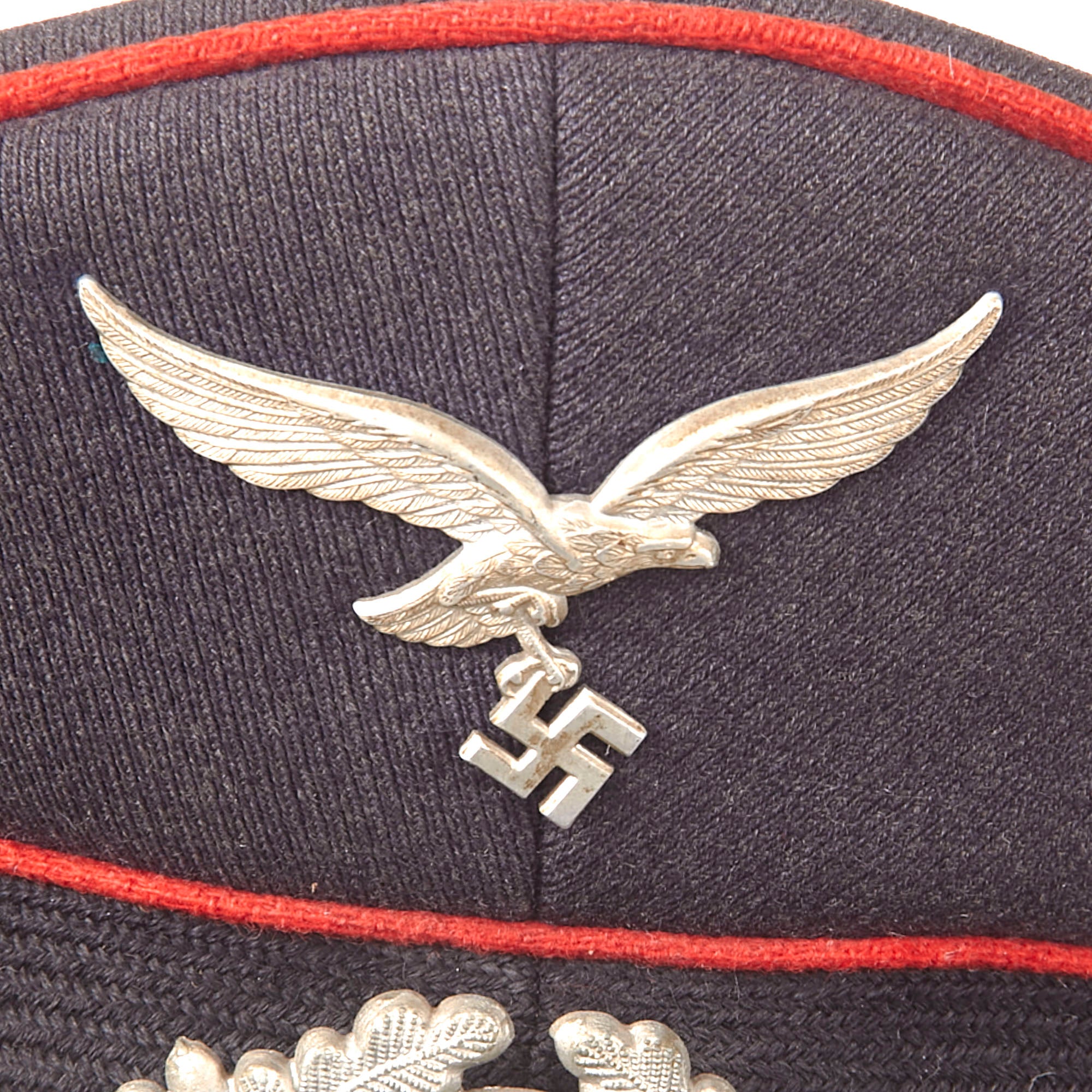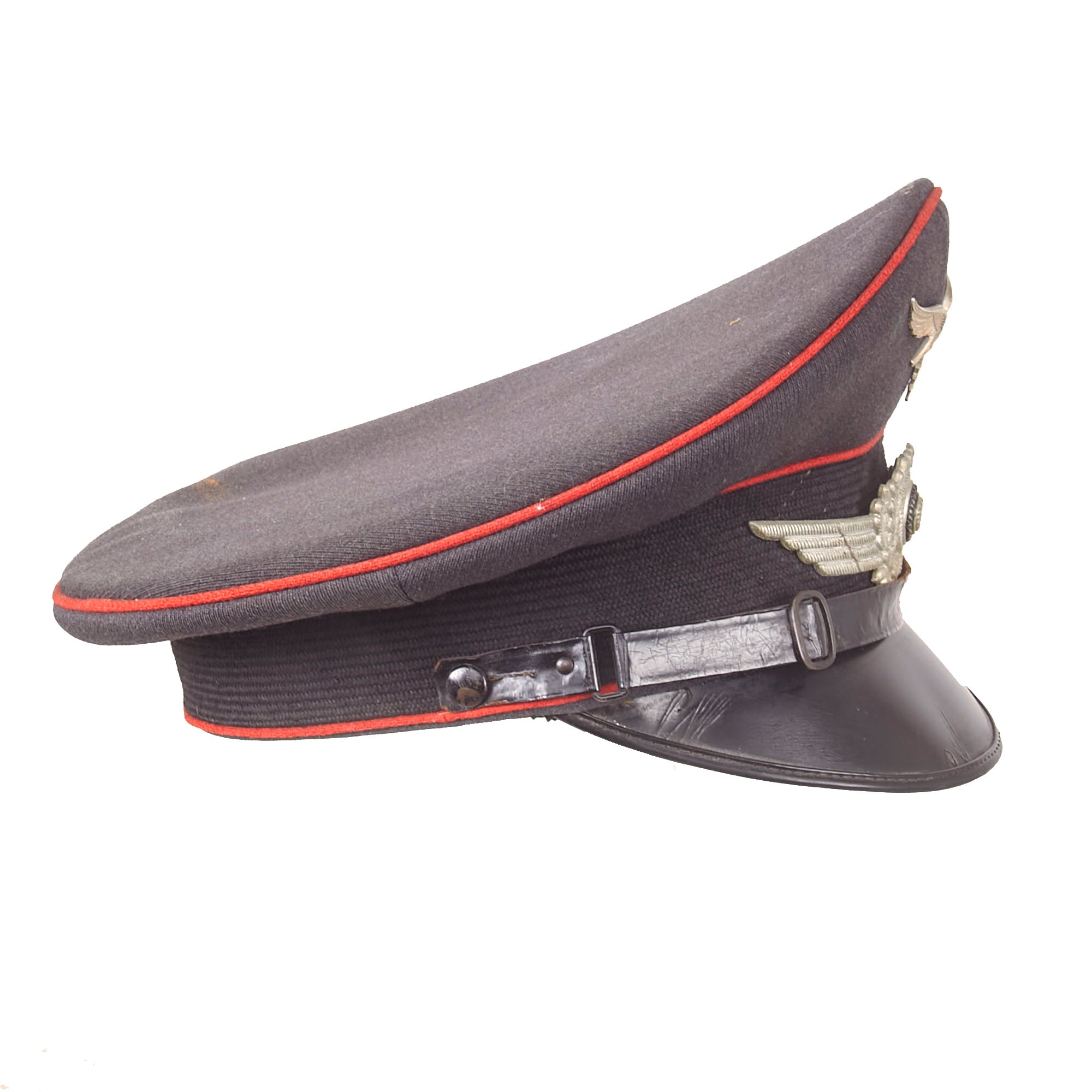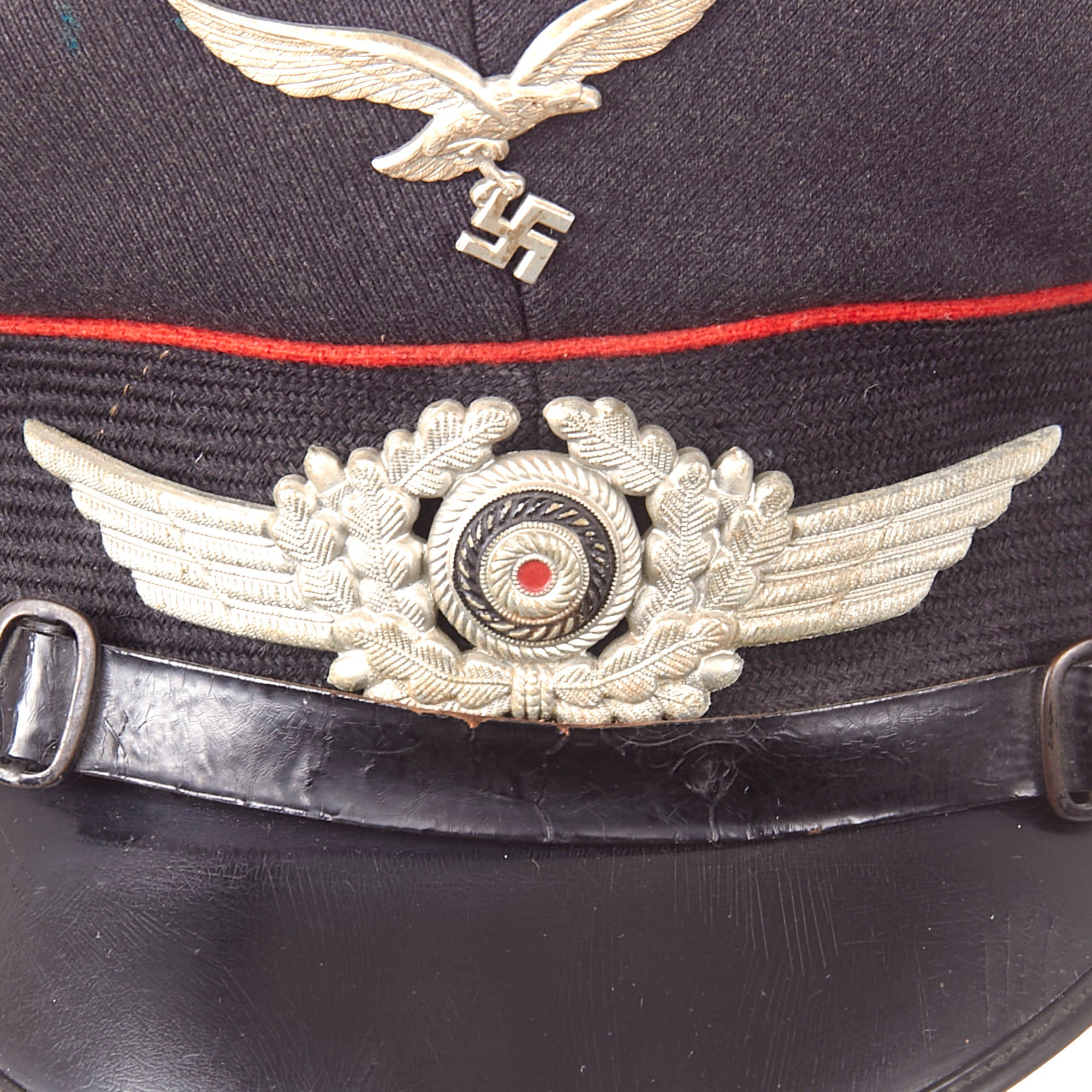 The visor cap (Schirmmütze) was an important part of the headgear worn by German uniformed military, civil, paramilitary and political organizations during the Third Reich. This was the standard cloth headgear worn as a part of the service uniform. Visor caps were worn outdoors as well as indoors, and were often required to be worn by all personnel on duty. Visor caps were made in versions specific to each organization and were often further differentiated through the use of insignia, colored piping, or style of chin cord, to indicate rank, role or branch. The insignia used on these caps ranged from simple stamped metal emblems, to elaborate hand embroidery. Visor caps were issued to enlisted soldiers and NCOs in the military and in some other organizations. Officers had to purchase their own hats, and lower ranks could choose to purchase caps that were of a higher quality than the rather basic, issue examples. The private purchase caps were generally made in very high quality, with fine materials. A wide variety of fabrics were used, from Trikot and doeskin, to heavy wool, or even lightweight white fabric for summer wear. In the military, issue of these caps was generally suspended shortly after the outbreak of the war, but they continued to be worn by some troops until the end of the war.